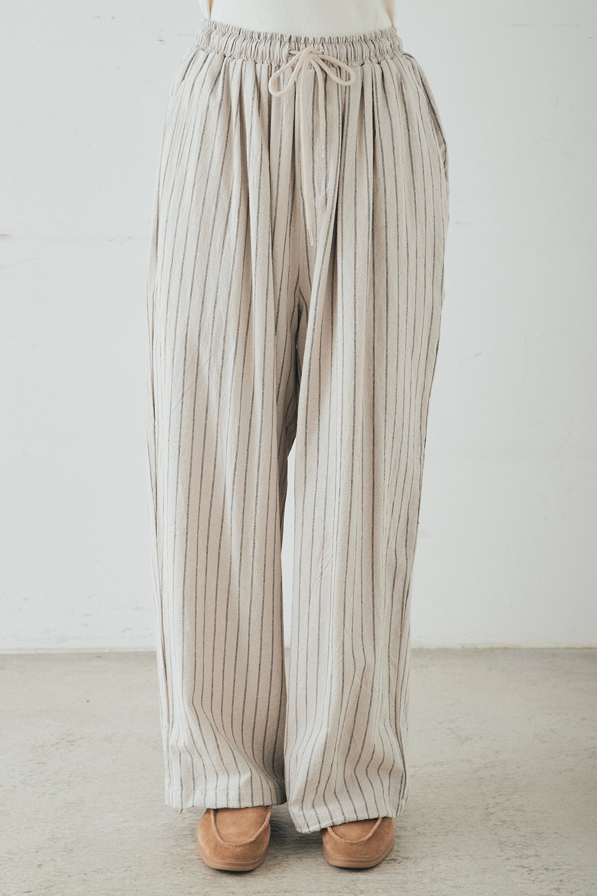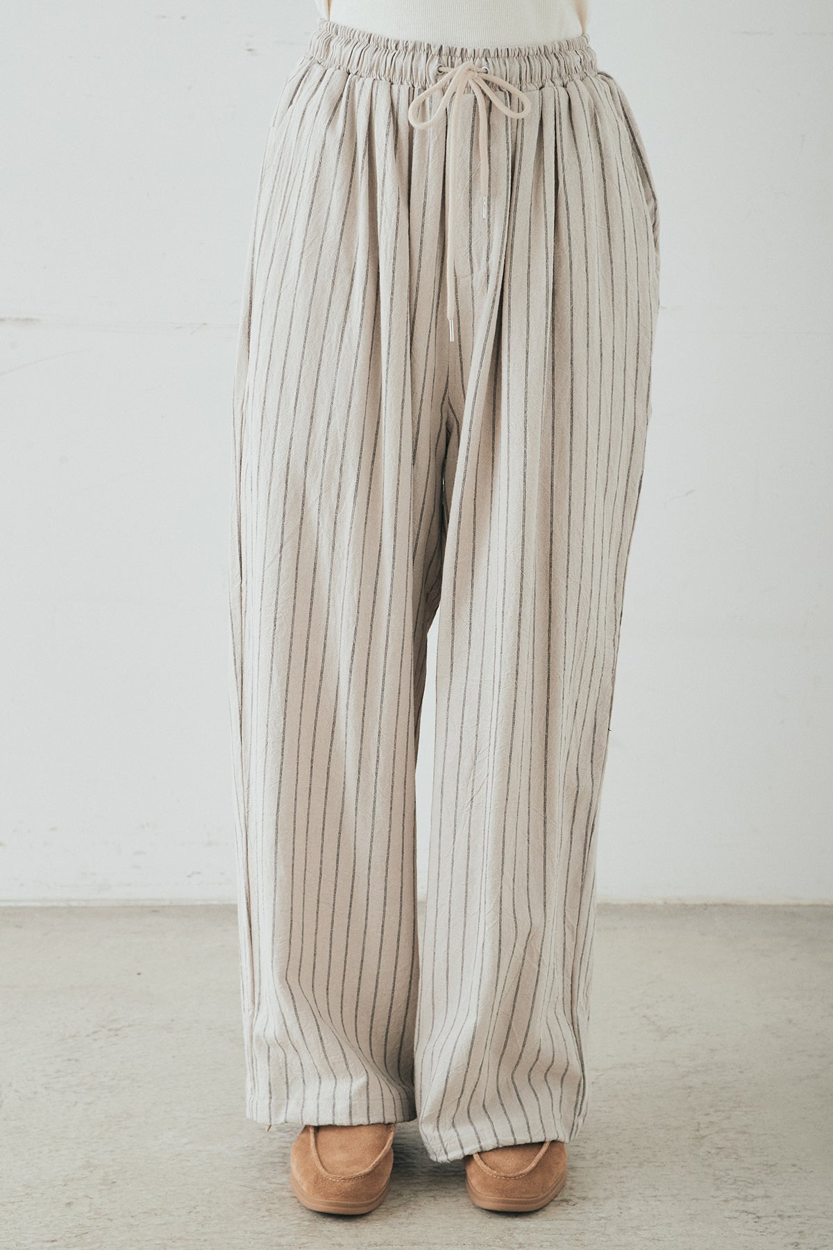 リネンライクストライプタックイージーパンツ