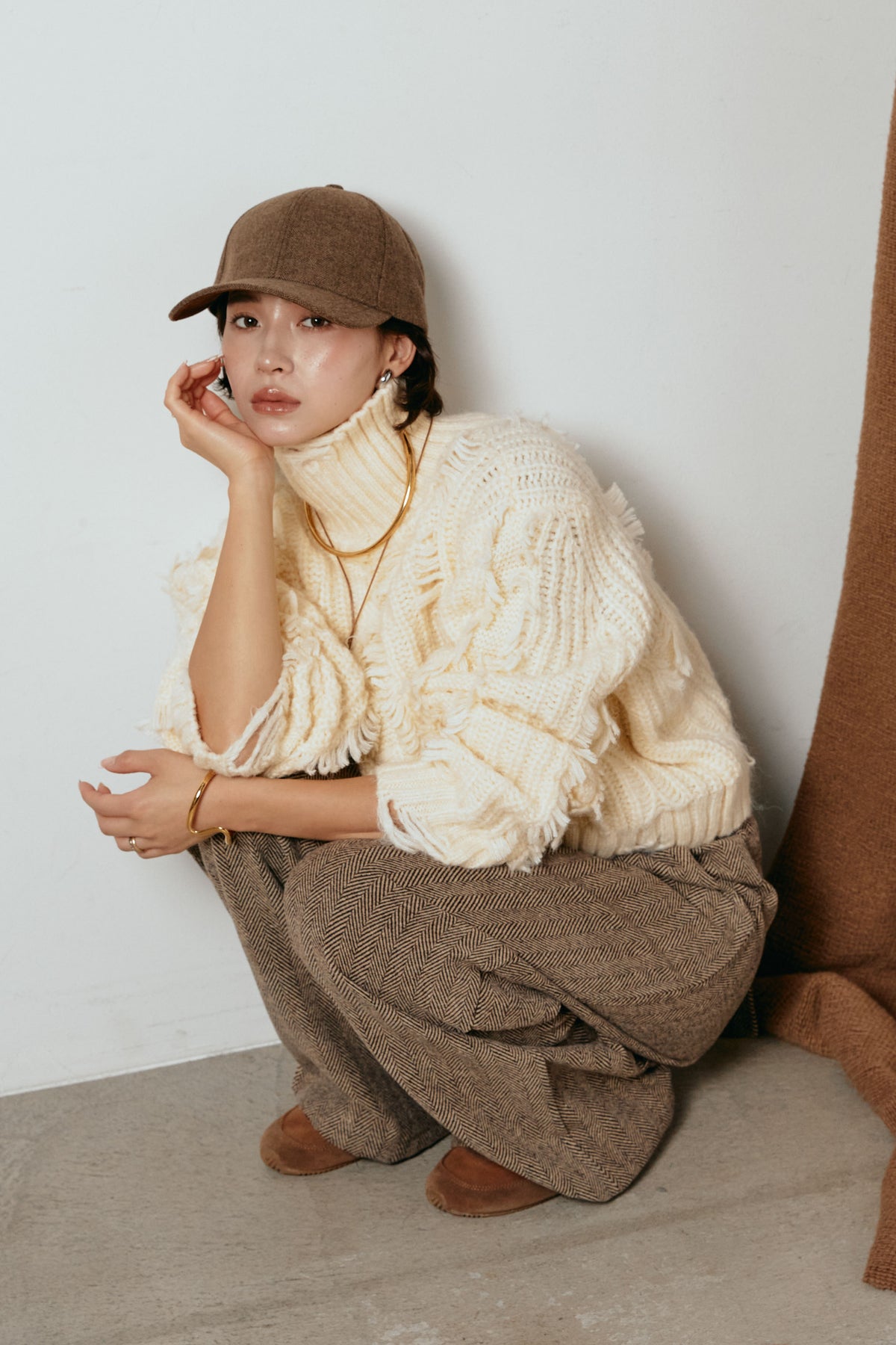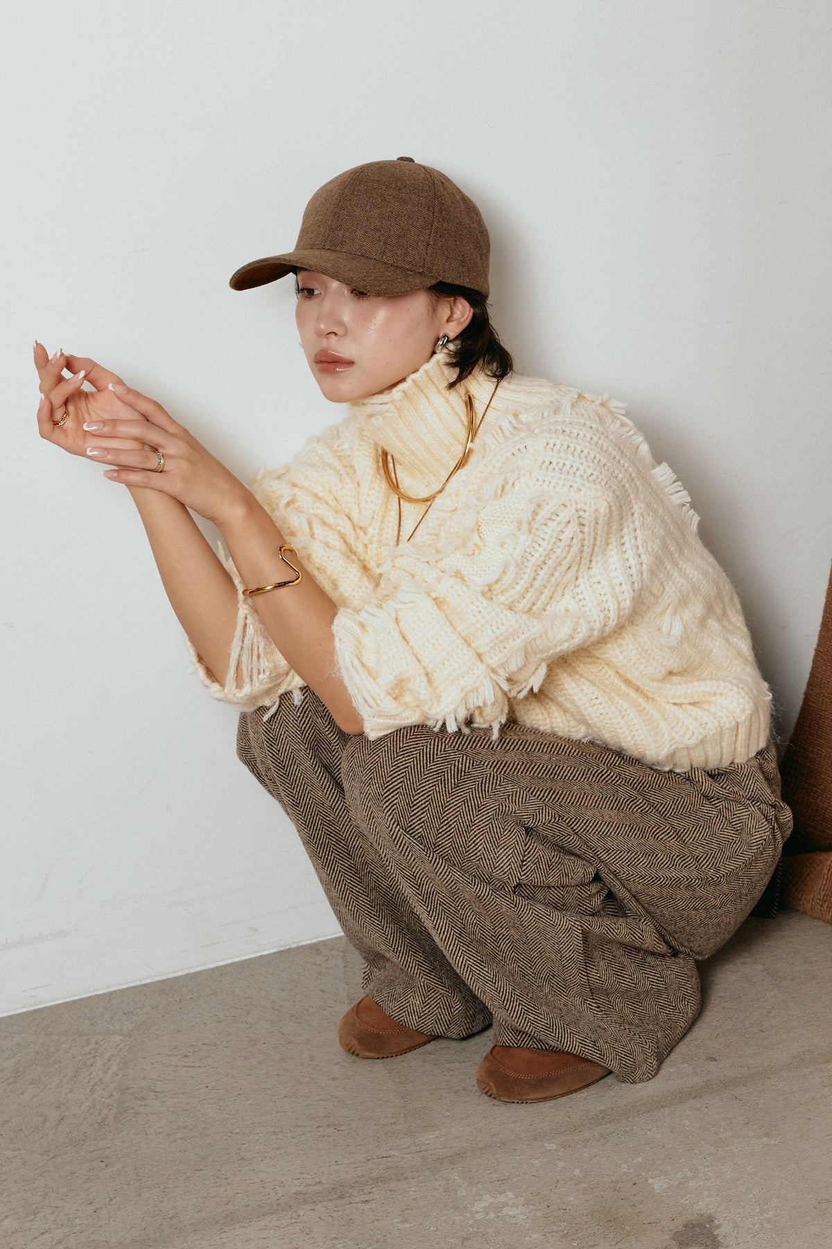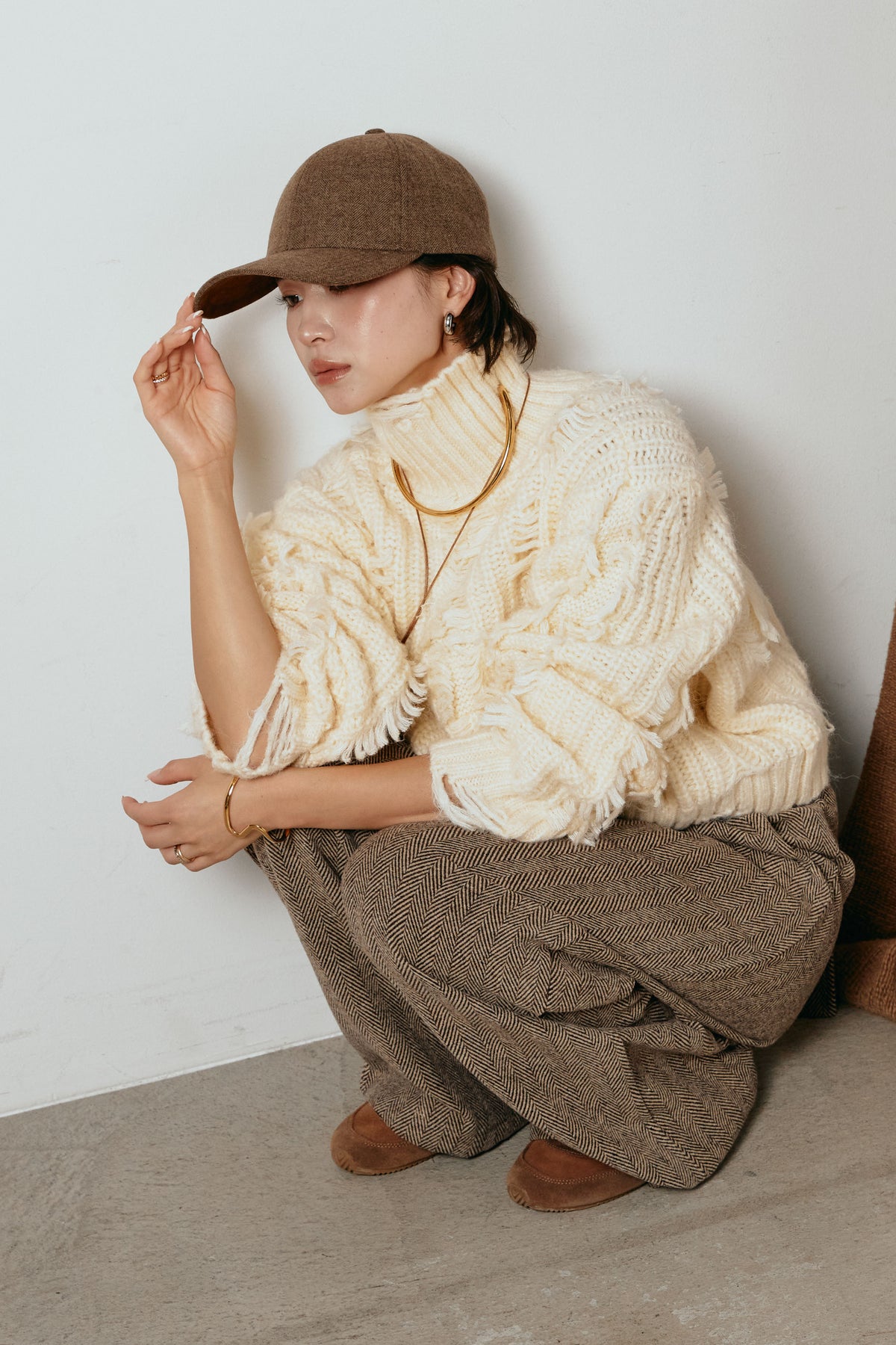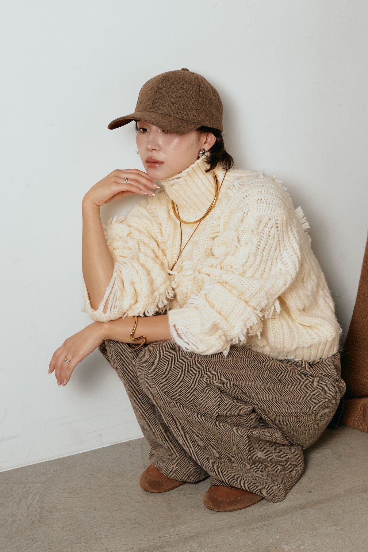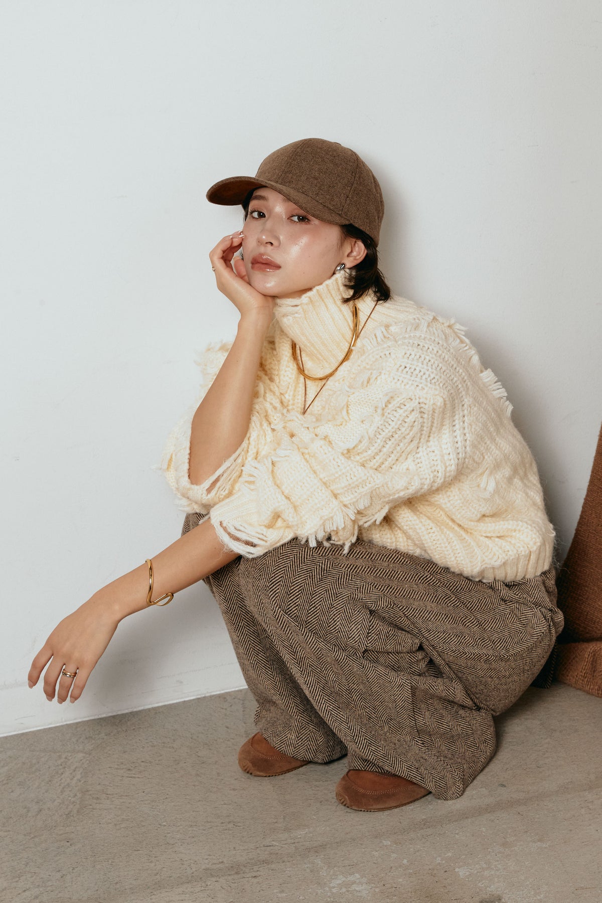 スエードライクな配色ツイードが映えるキャップ。 落ち着いた色味でどんなスタイルにも溶け込み、コーデ全体をバランスよく引き締めてくれます。 深めのシルエットでかぶりやすく、デイリーに使える万能アイテムです。