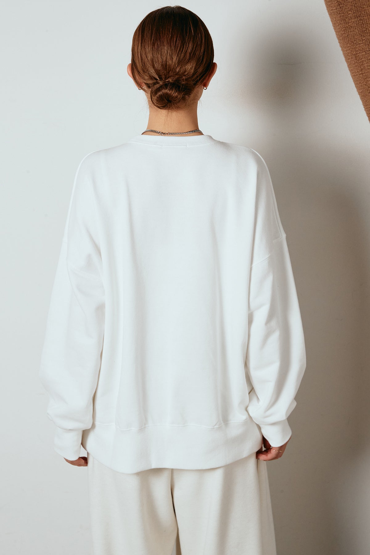 フロントに配置されたロゴが程よい存在感を添えるスウェットプルオーバー。ゆったりとしたシルエットで抜け感があり、ラフに着られるのに洗練したムードを漂わせます。ほどよい厚みの生地はデイリーに使いやすく、スカートにもパンツにも合わせやすい万能さが魅力。シンプルながらアクセントが効いた一枚で、カジュアルな装いにこなれた表情をプラスできます。
