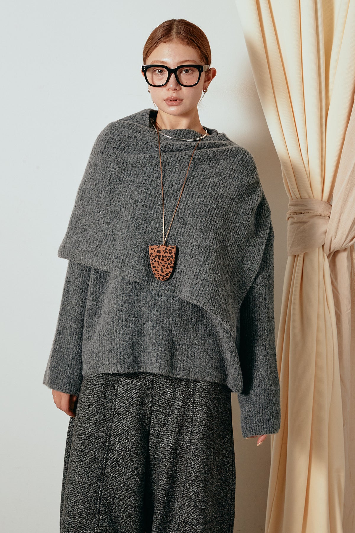 ケープデザインが目を惹くリブニットトップス。 肩を包み込むような立体的なシルエットが印象的で、着るだけでスタイルに奥行きをプラス。 程よくボリュームのあるスリーブと柔らかなリブ編みが、上品で洗練された雰囲気を演出します。 シンプルなボトムを合わせるだけでサマになる主役級ニットです。
