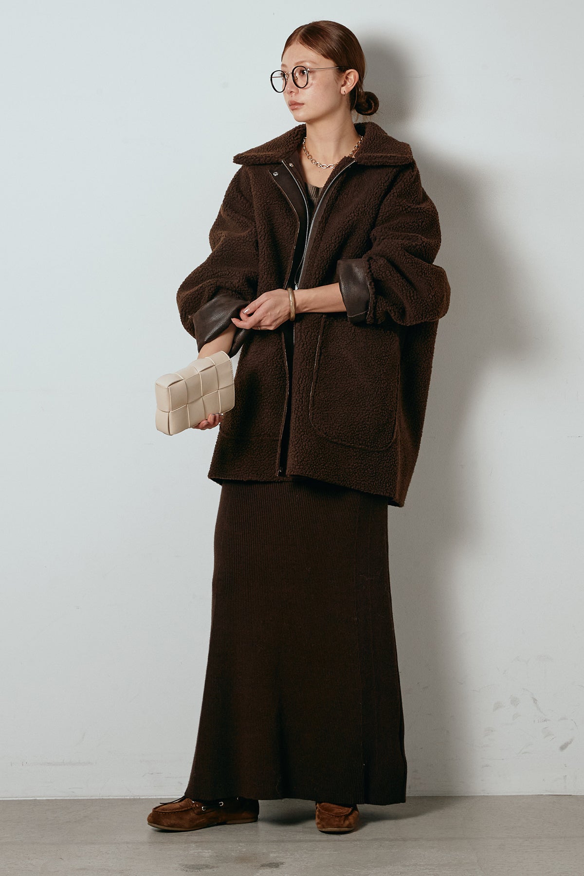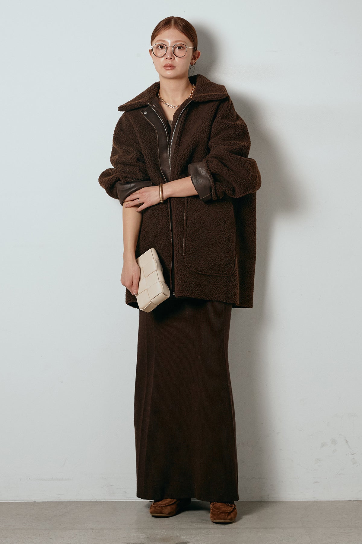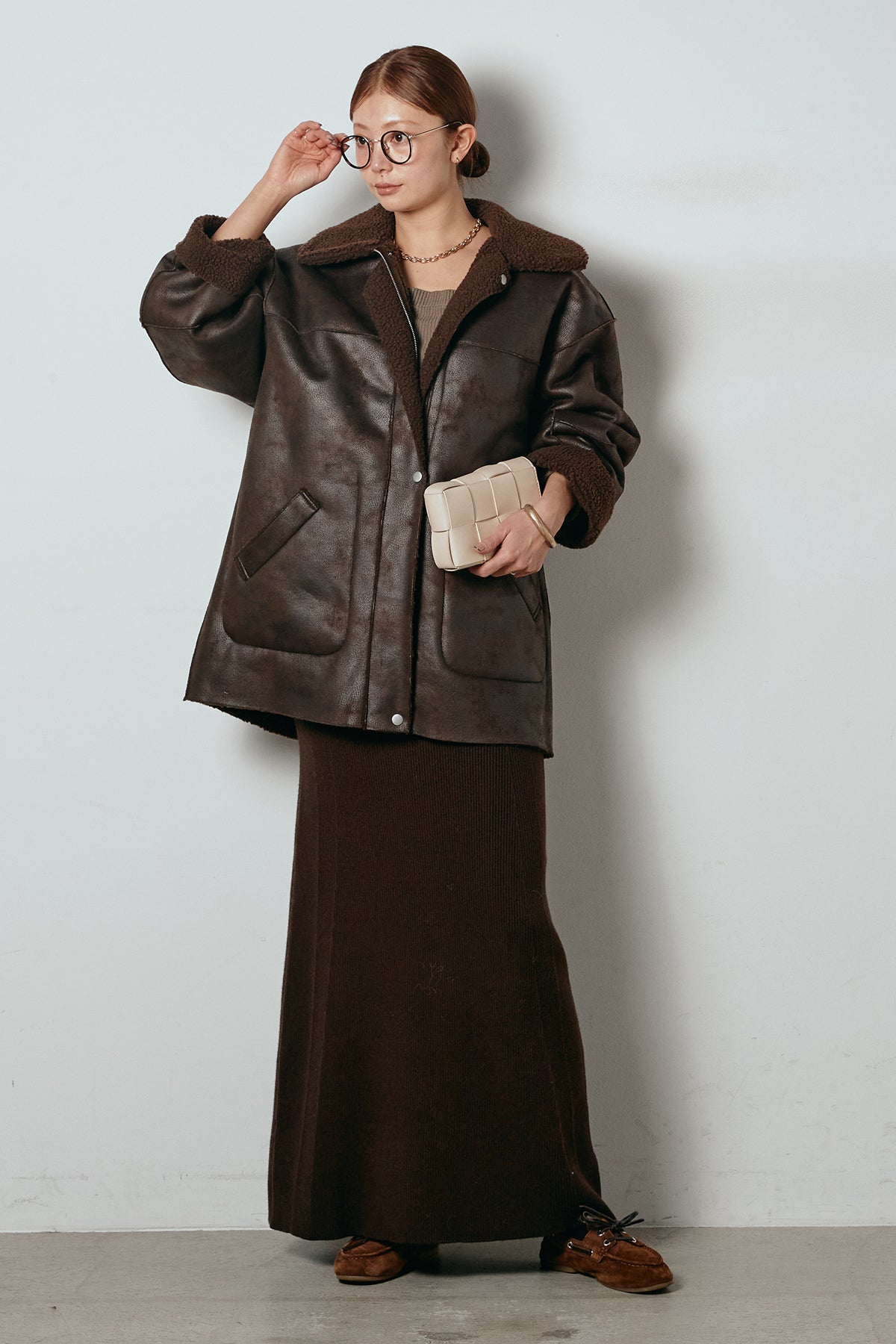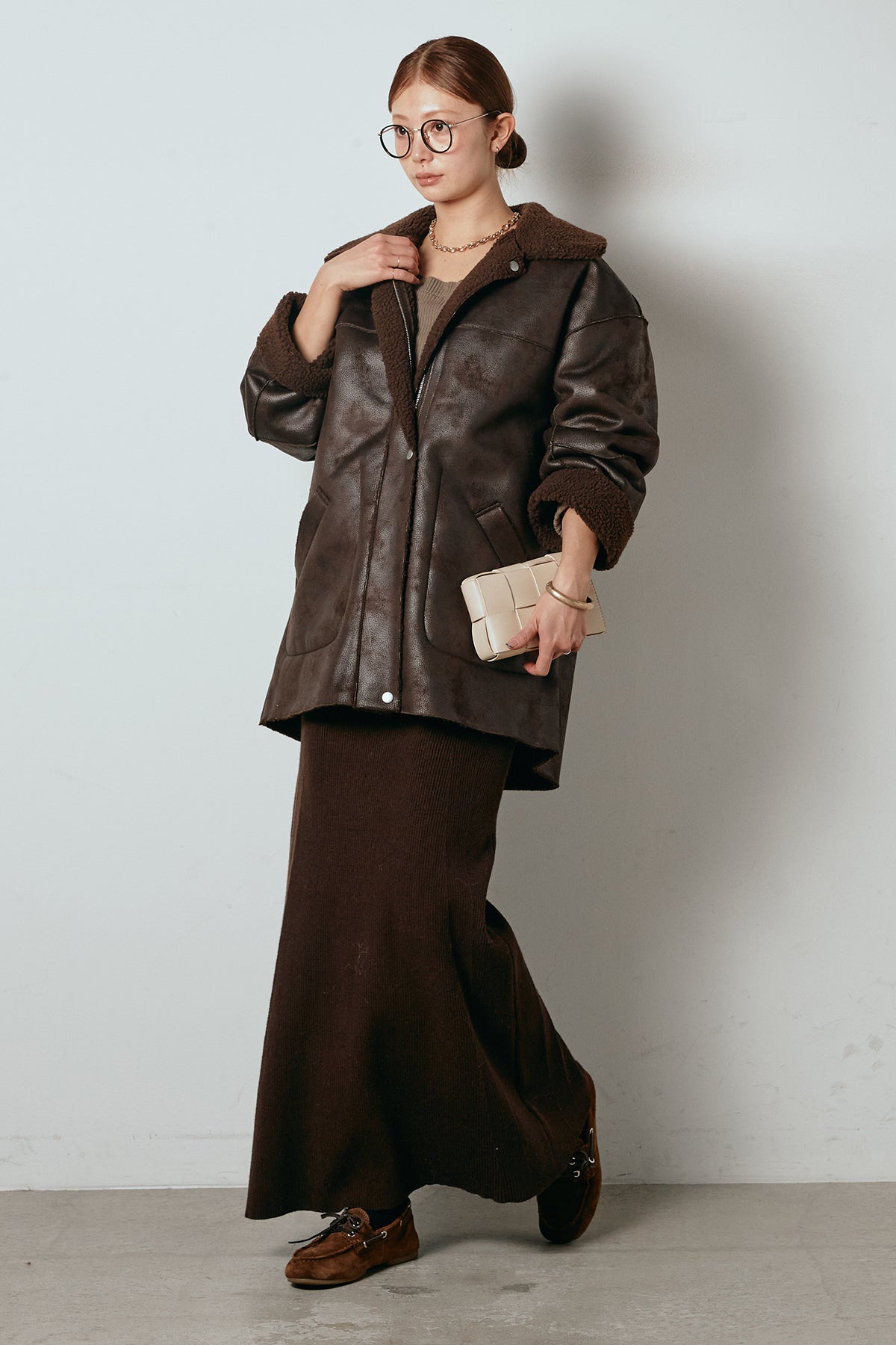 [SET]リバーシブルエコムートンコート+リブナローニットスカート(2set)