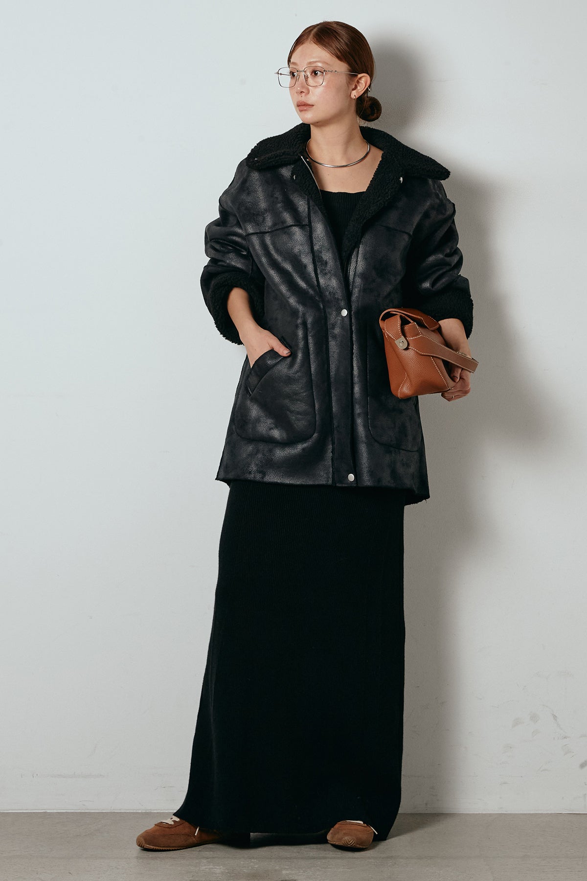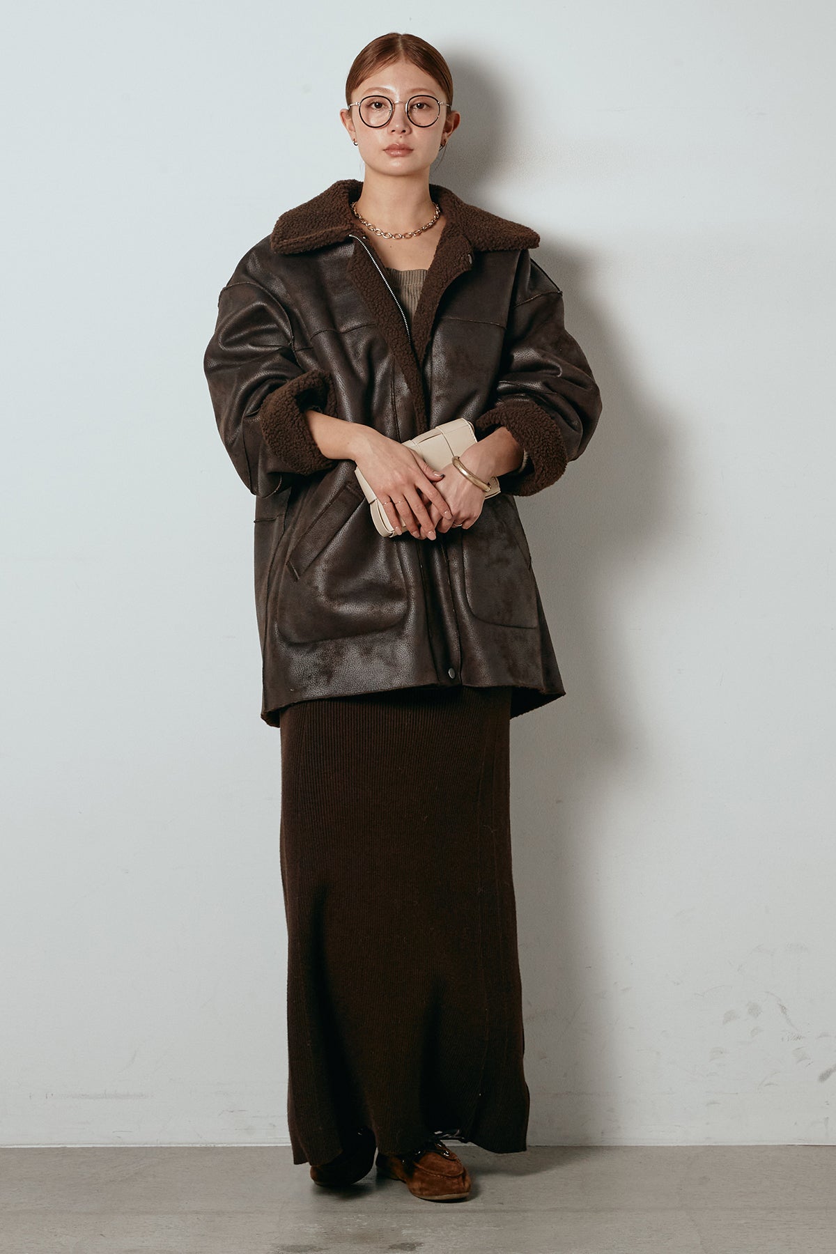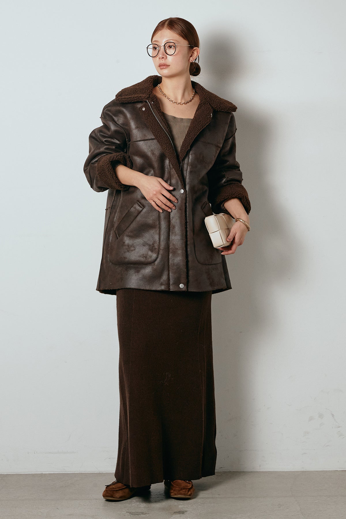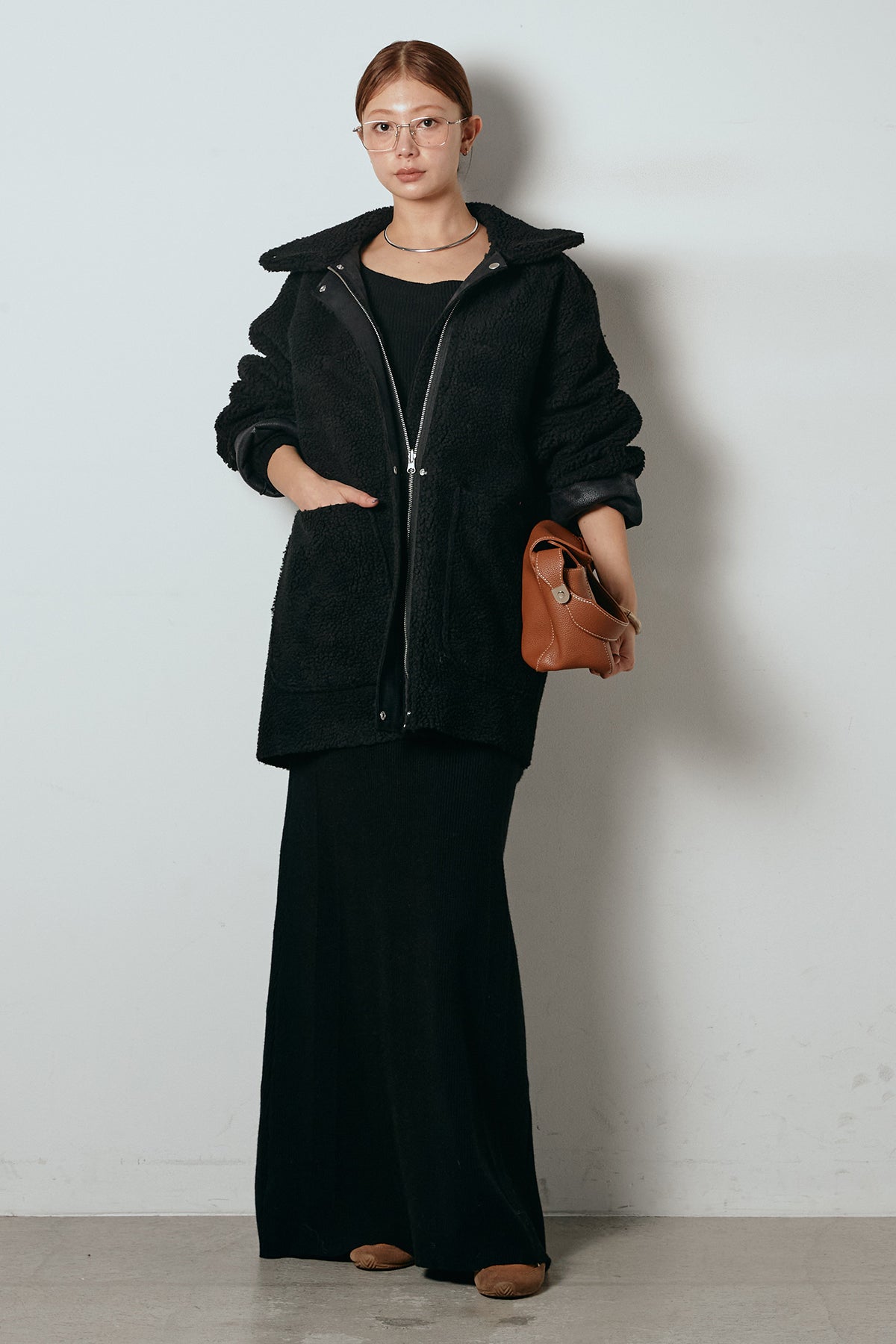 [SET]リバーシブルエコムートンコート+リブナローニットスカート(2set)