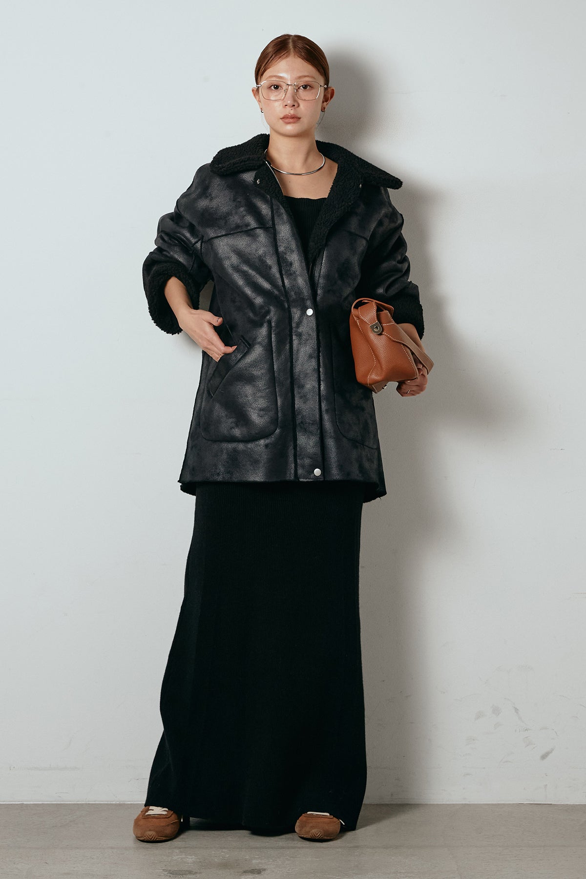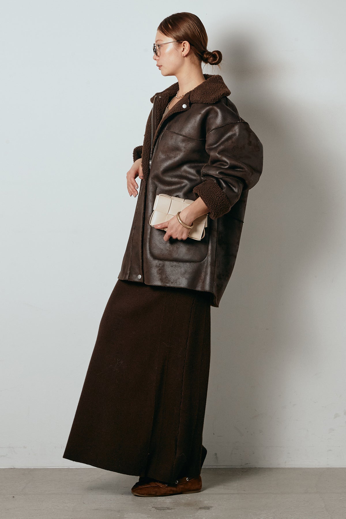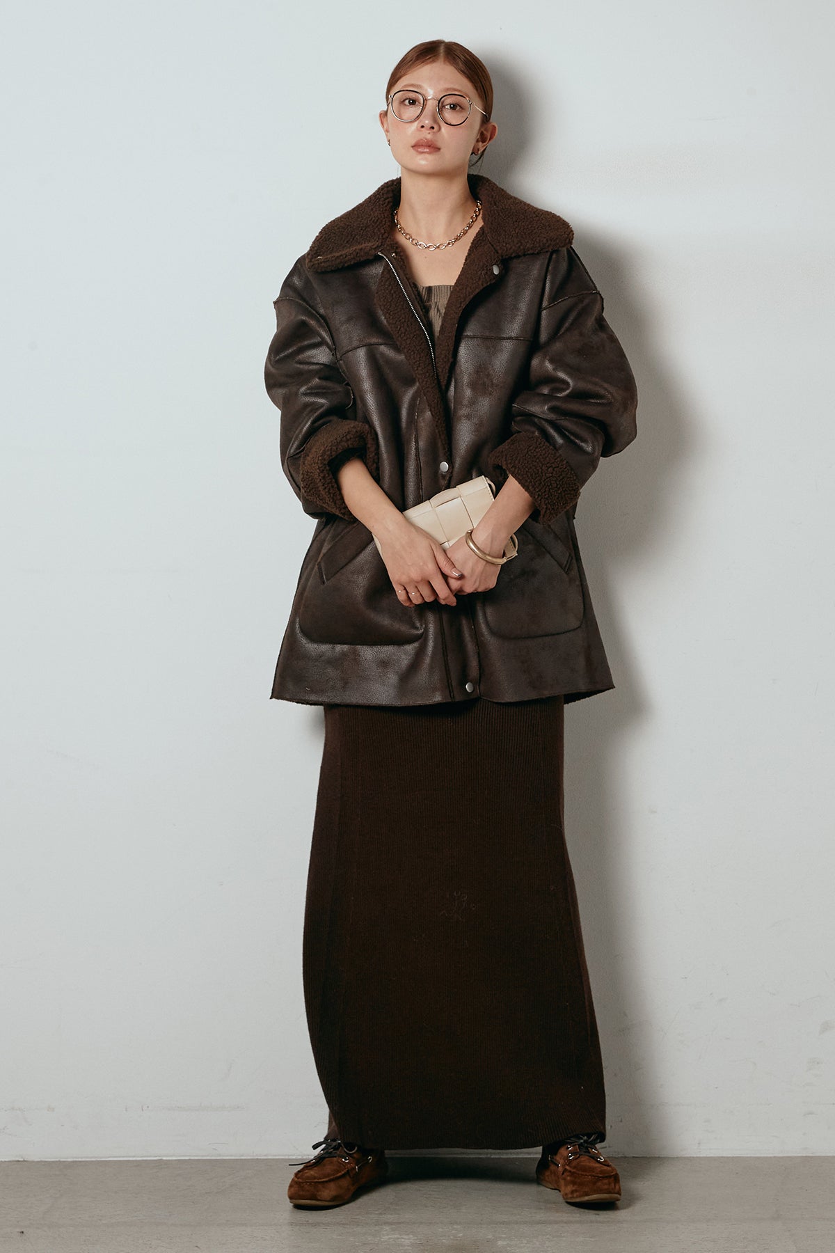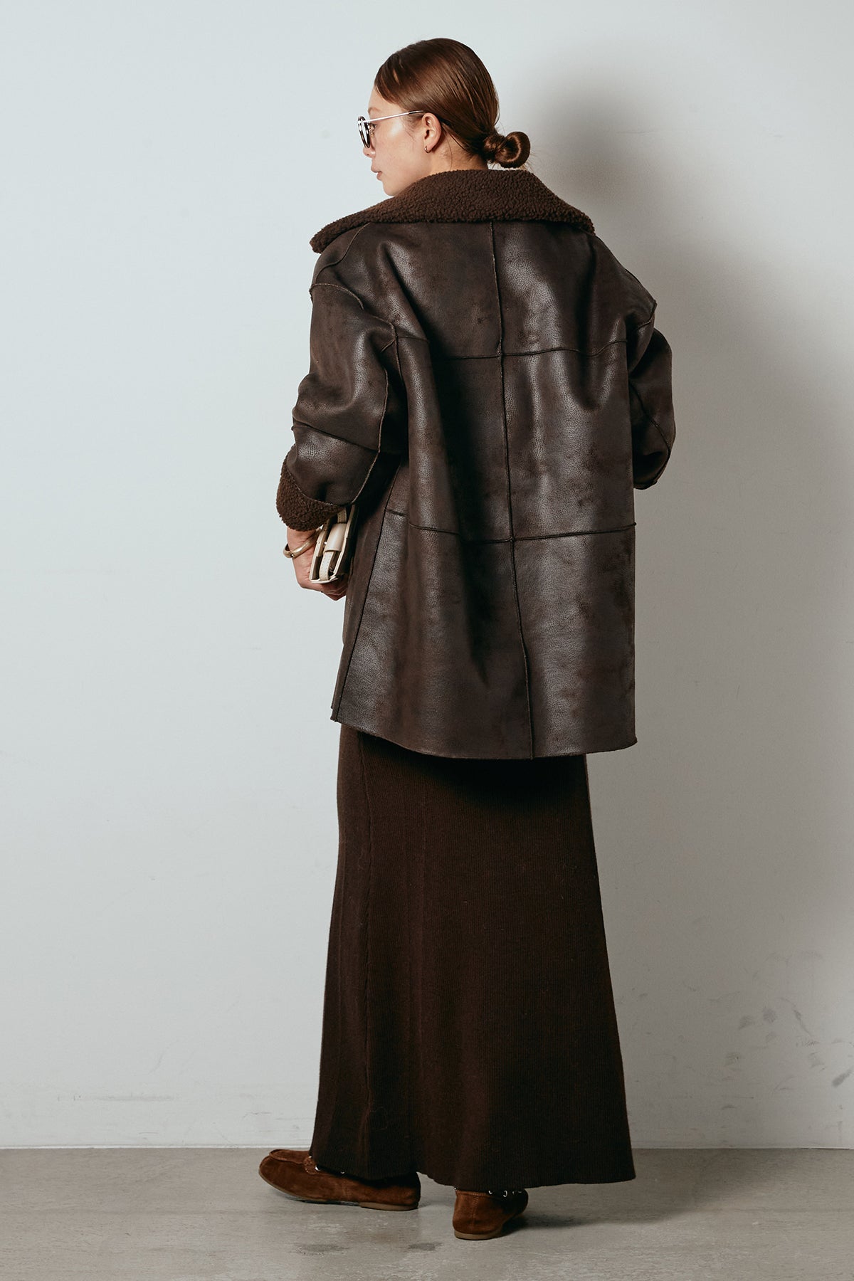 [SET]リバーシブルエコムートンコート+リブナローニットスカート(2set)