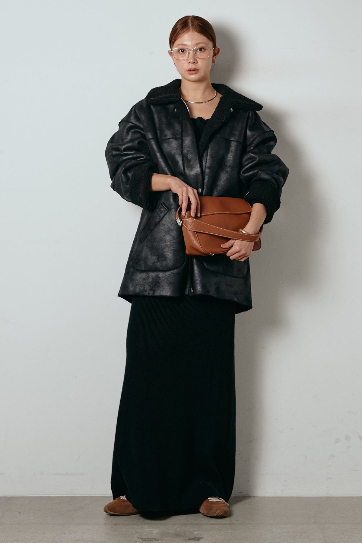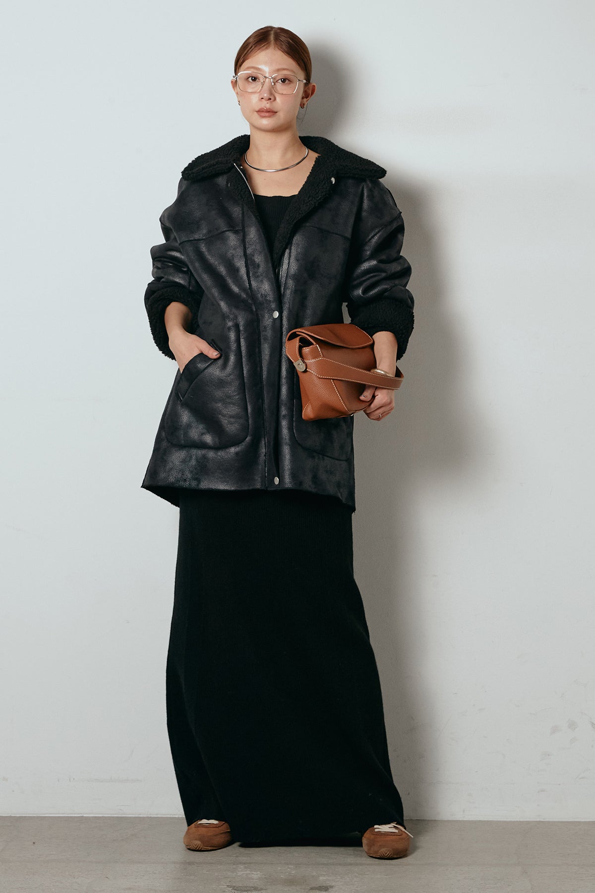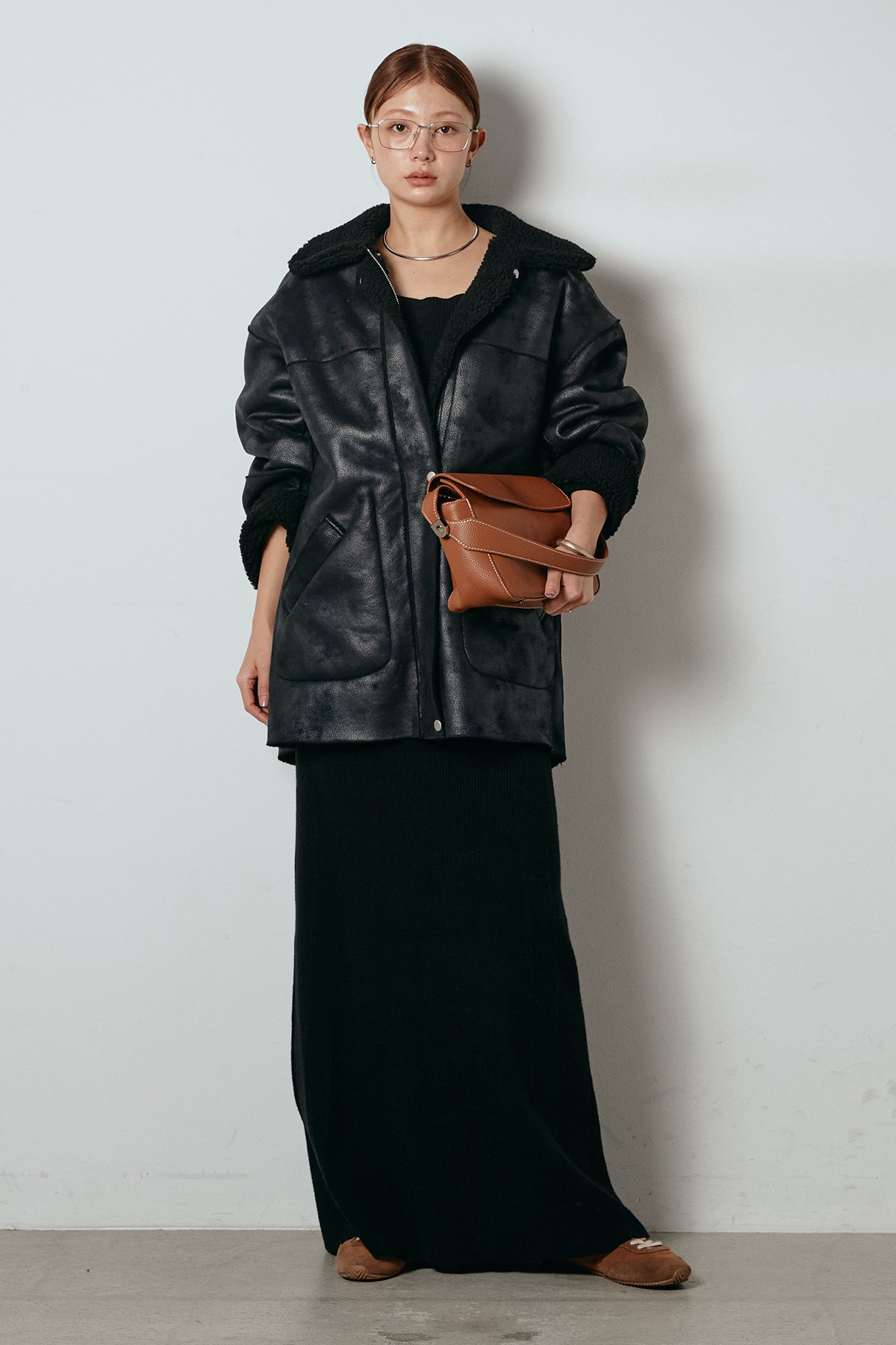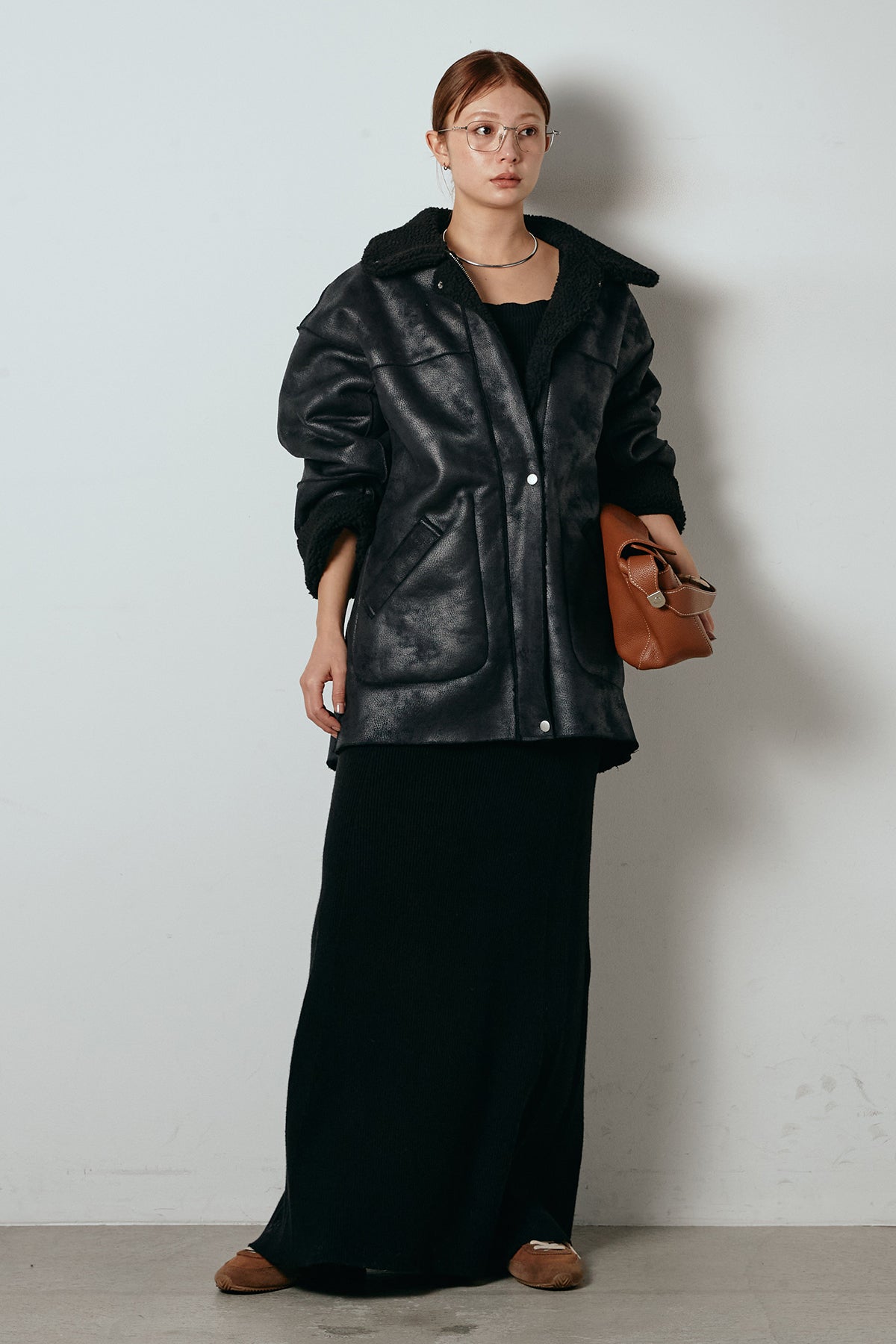 [SET]リバーシブルエコムートンコート+リブナローニットスカート(2set)