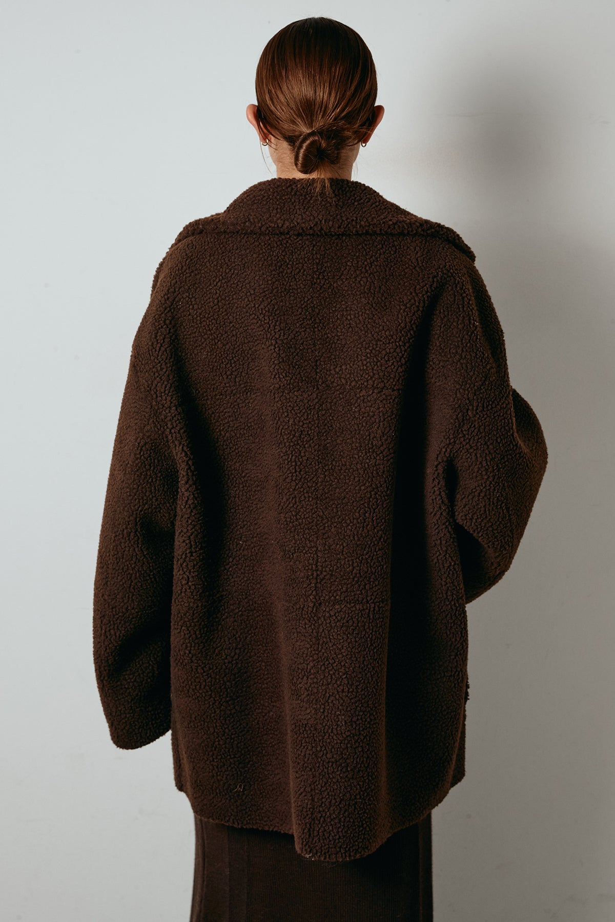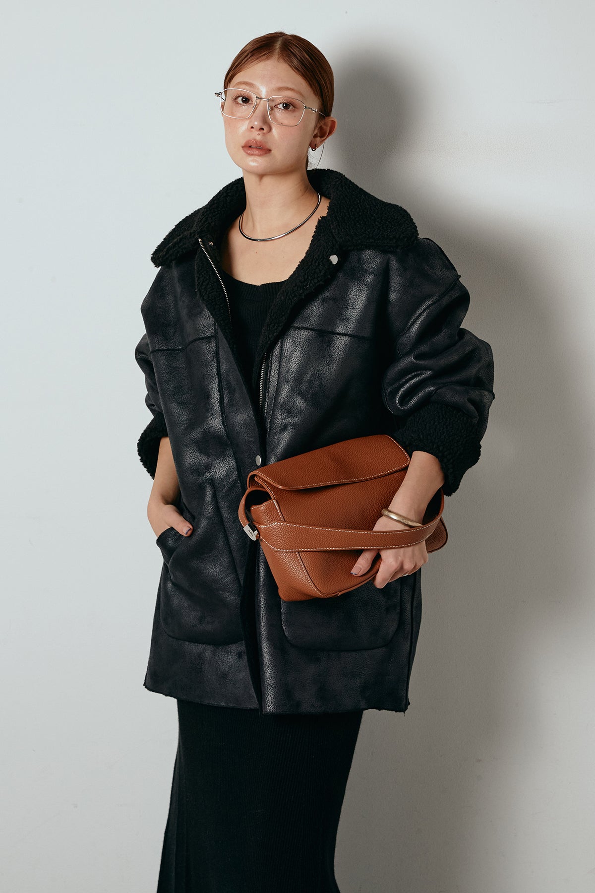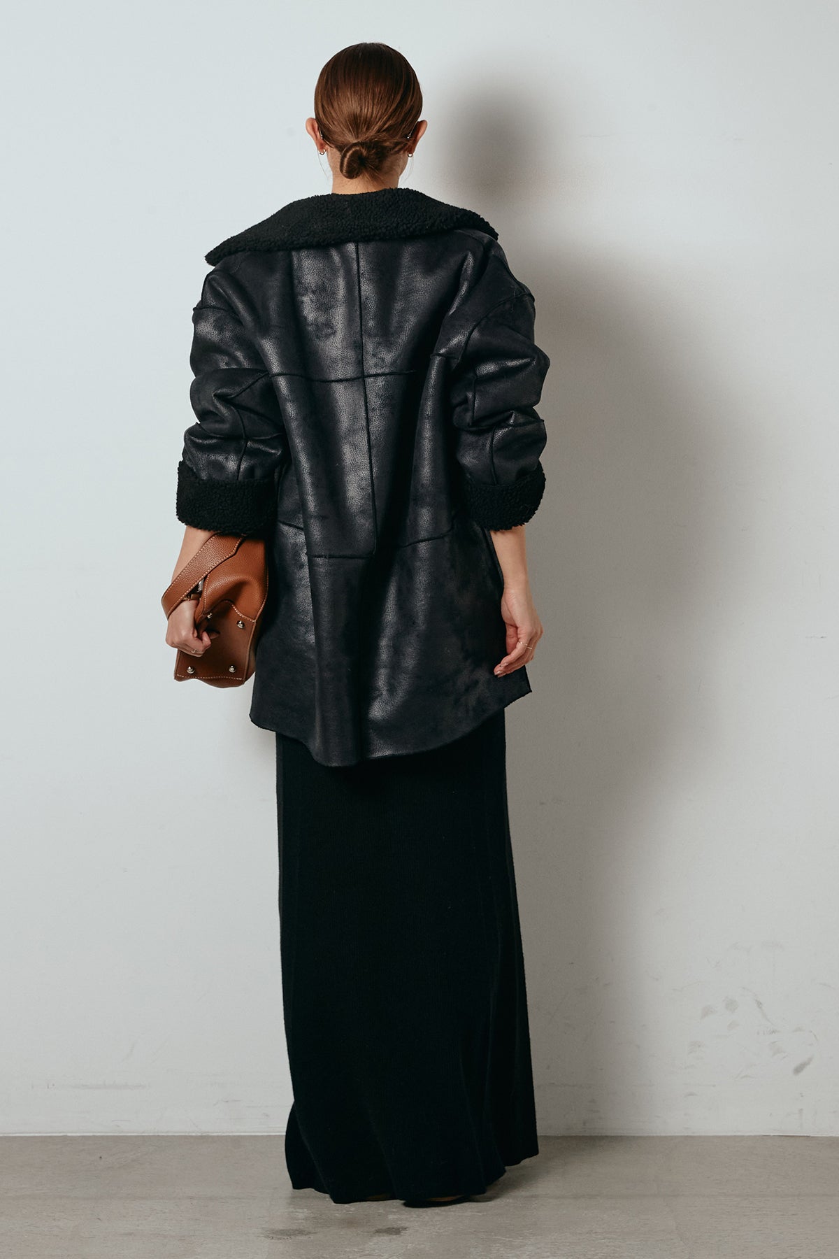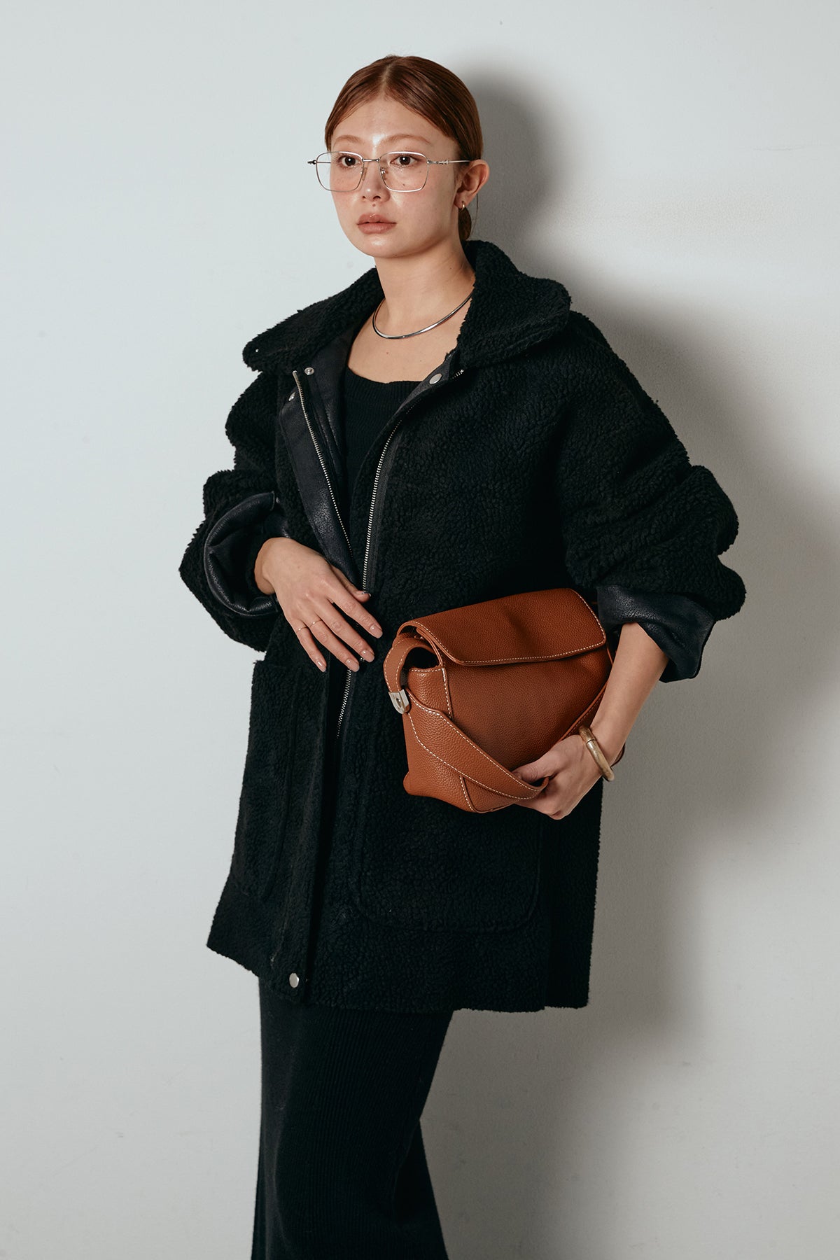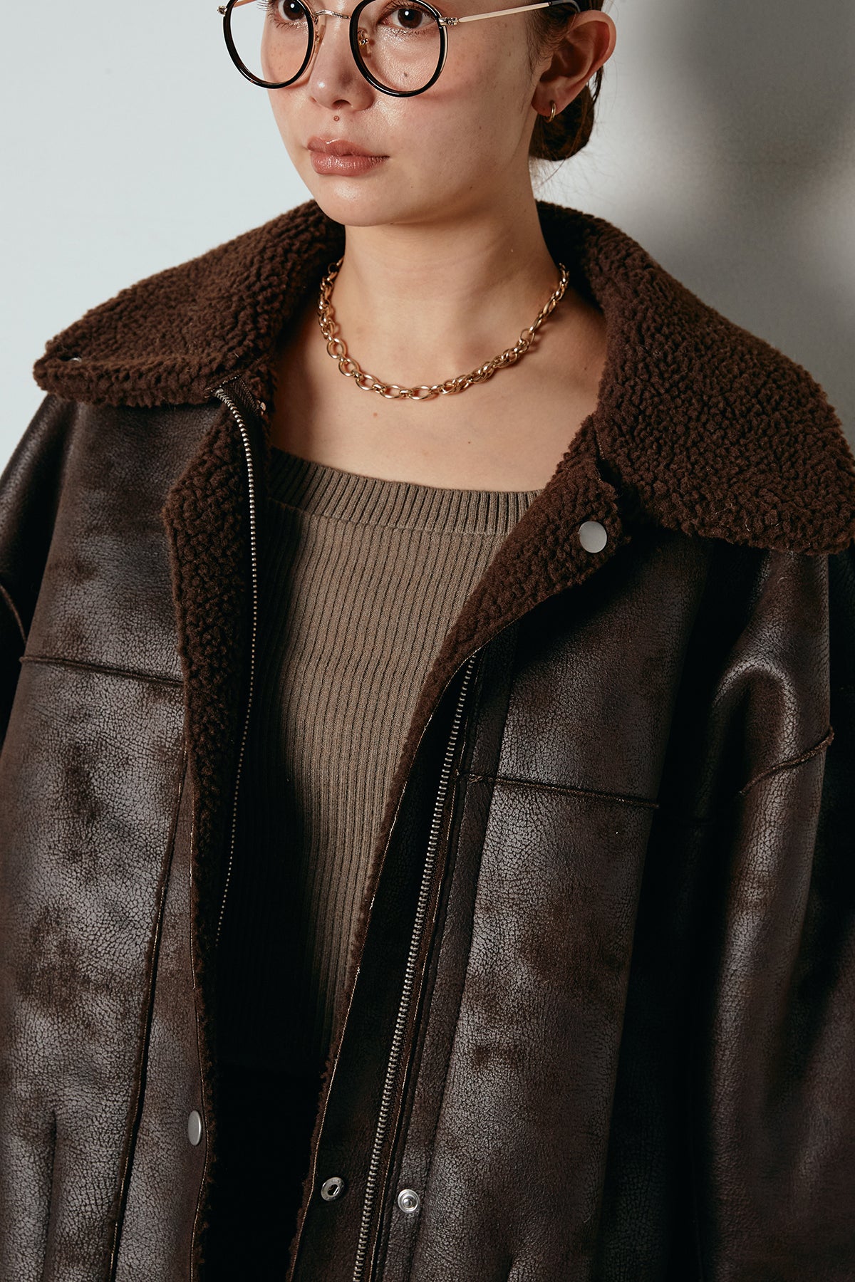 ふんわりと暖かなボア面と、滑らかな質感のエコムートン面を楽しめるリバーシブルコート。気分やスタイリングに合わせて印象を変えられ、1枚で幅広い着こなしに活躍します。ゆとりのあるシルエットが抜け感をつくりつつ、ジップとスナップで防寒性も確保。ヒップが隠れる着丈でバランスが取りやすく、パンツにもスカートにも合わせやすい万能アウターです。