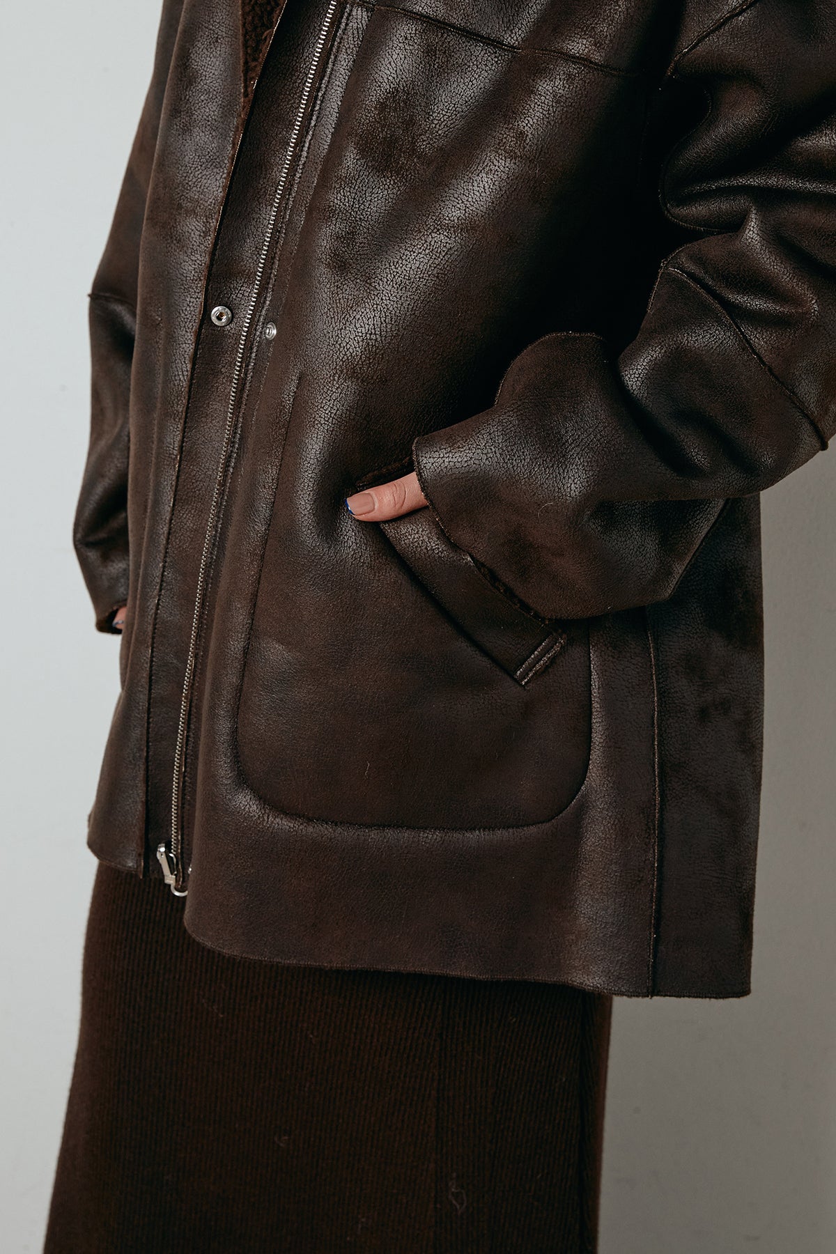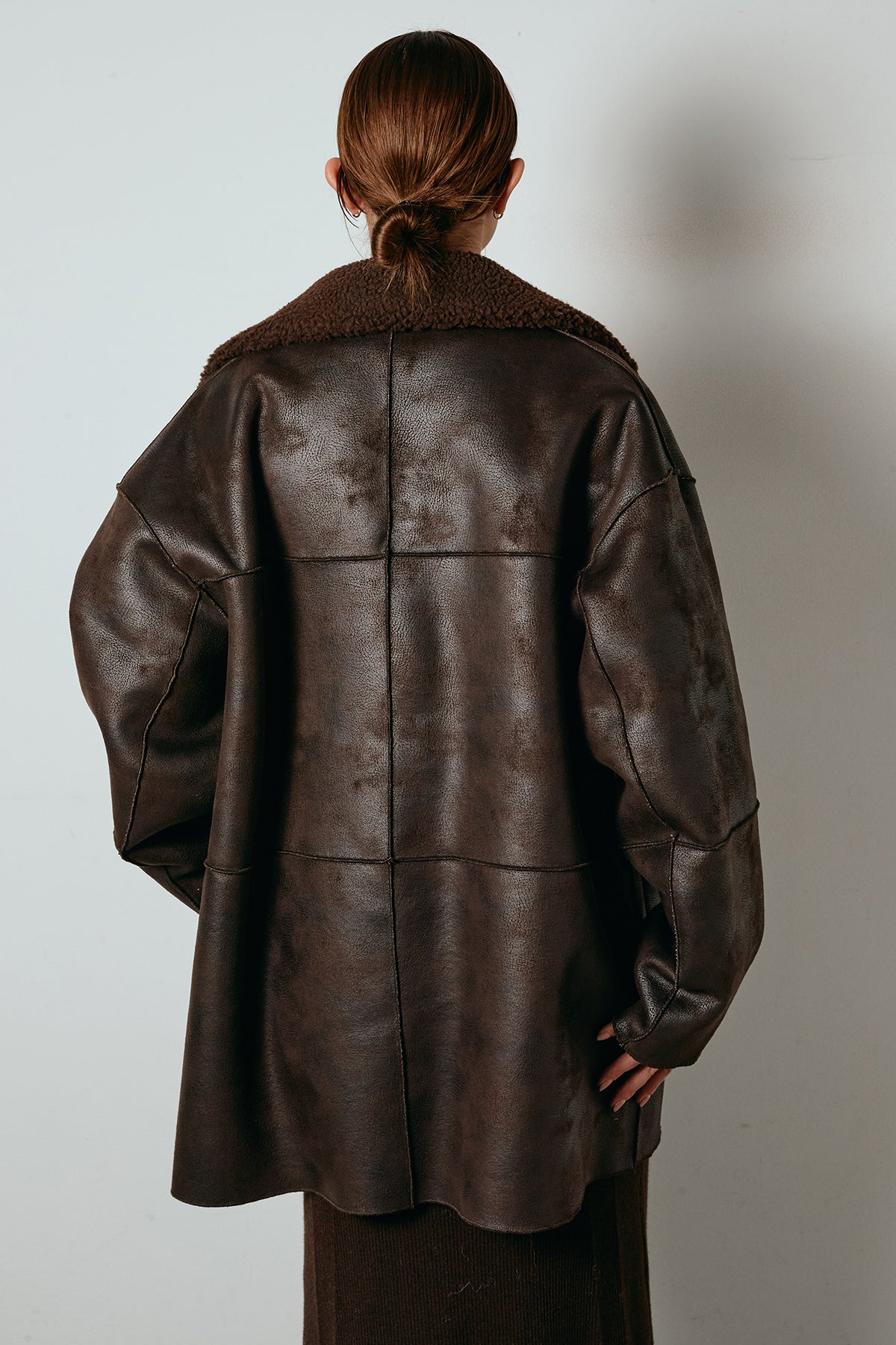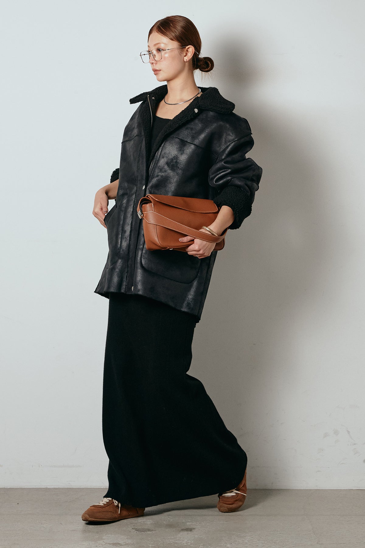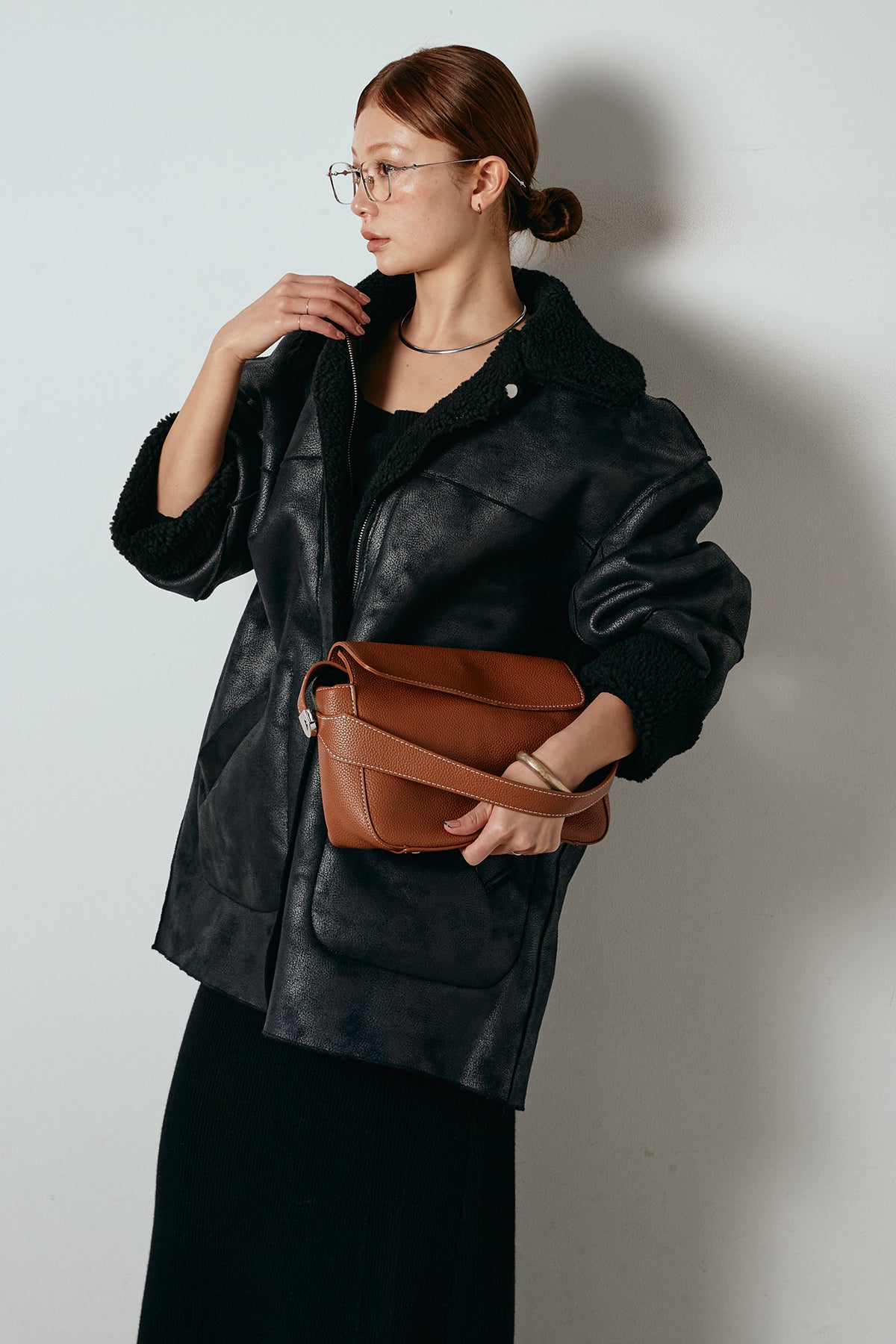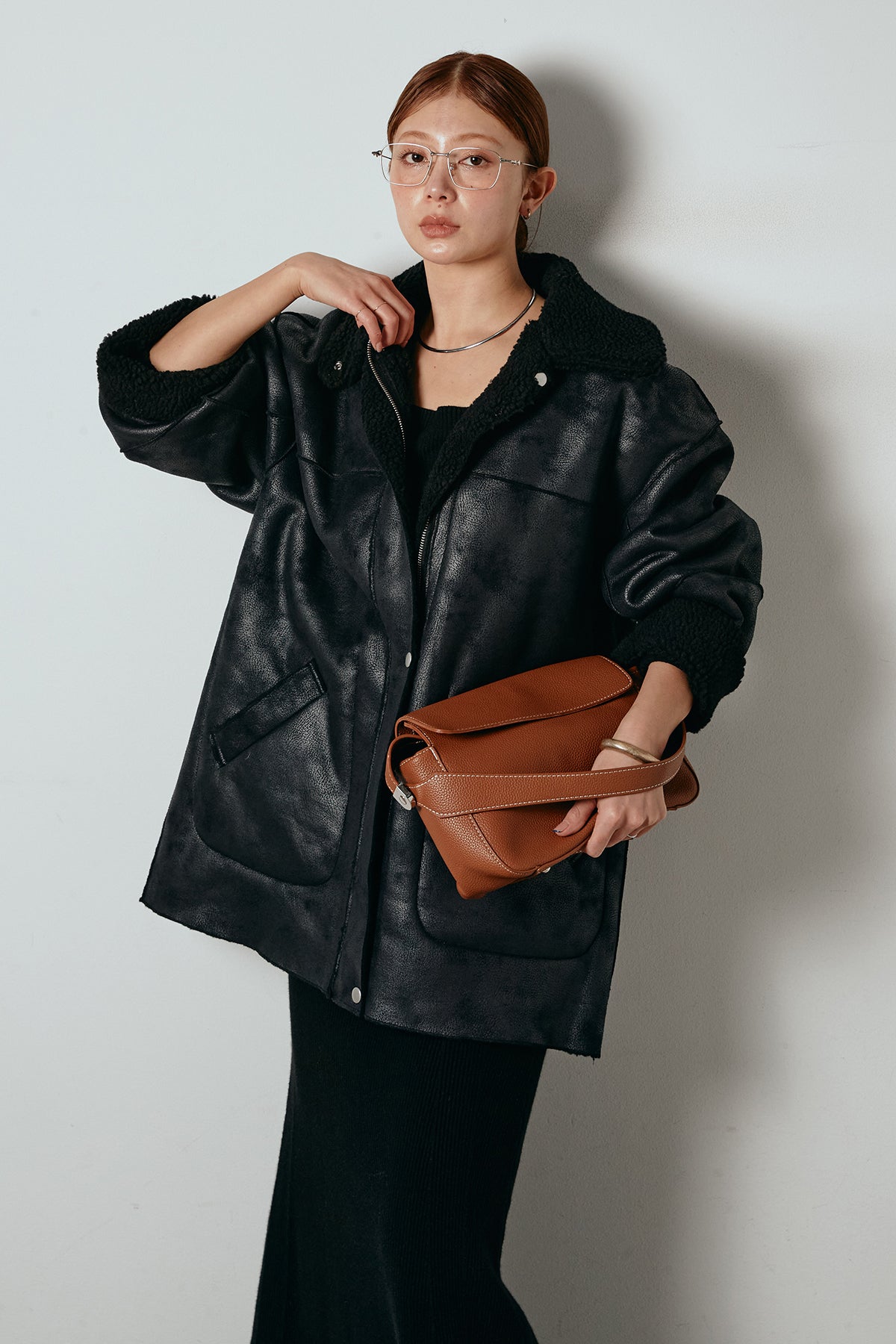 ふんわりと暖かなボア面と、滑らかな質感のエコムートン面を楽しめるリバーシブルコート。気分やスタイリングに合わせて印象を変えられ、1枚で幅広い着こなしに活躍します。ゆとりのあるシルエットが抜け感をつくりつつ、ジップとスナップで防寒性も確保。ヒップが隠れる着丈でバランスが取りやすく、パンツにもスカートにも合わせやすい万能アウターです。