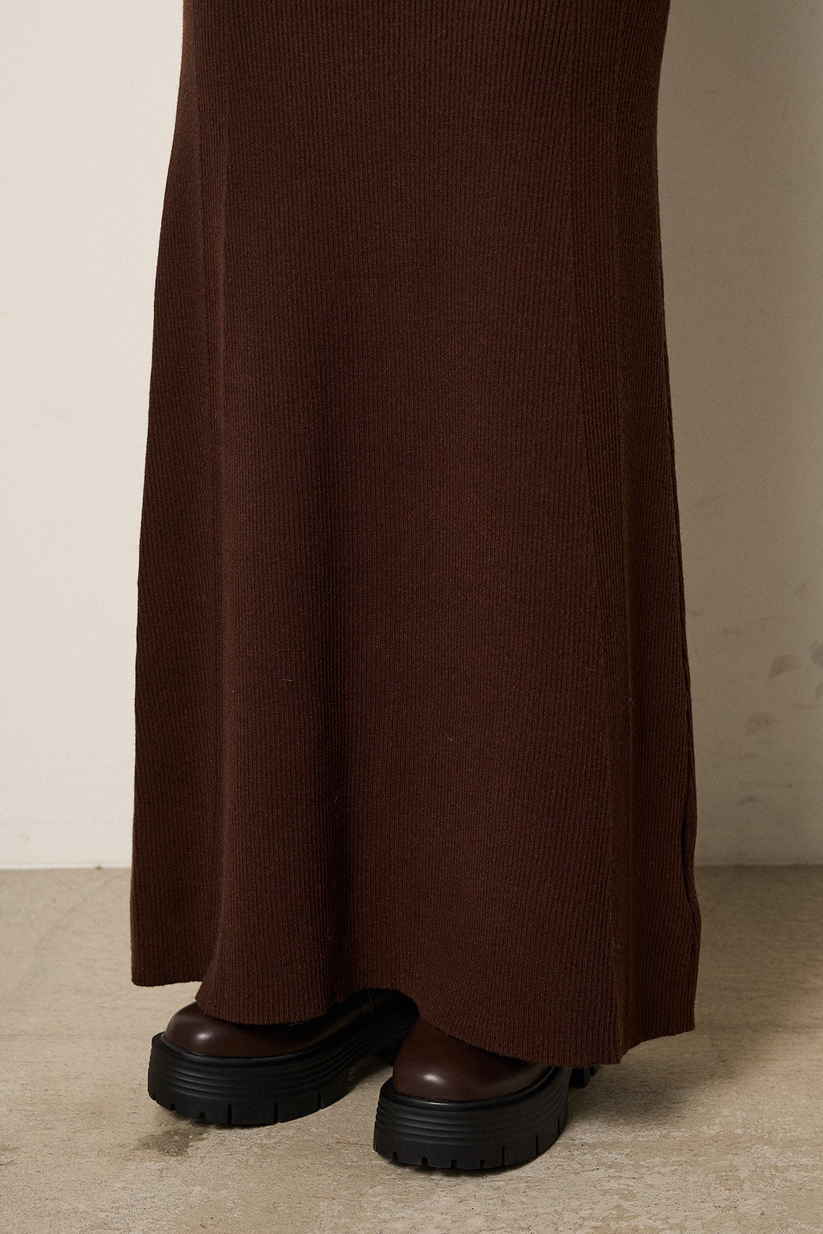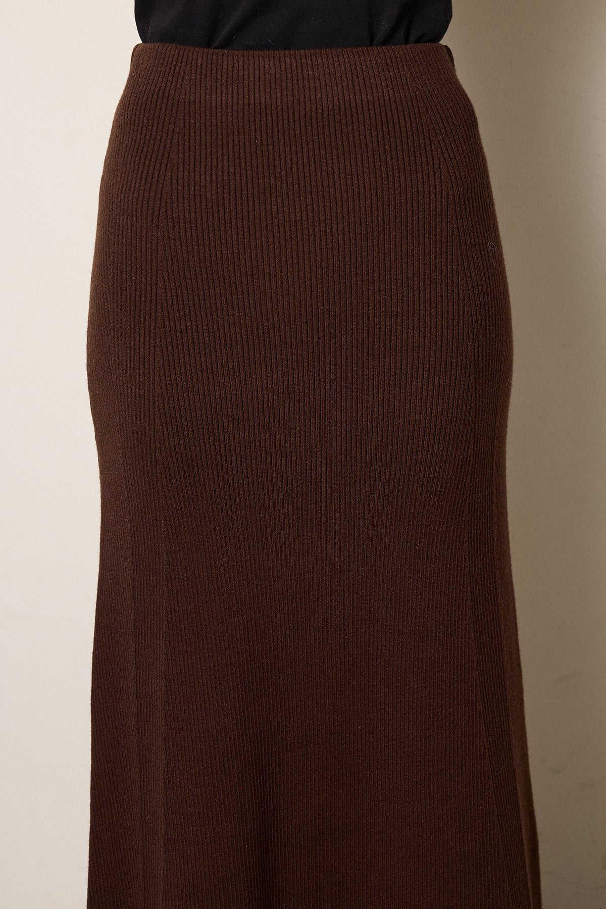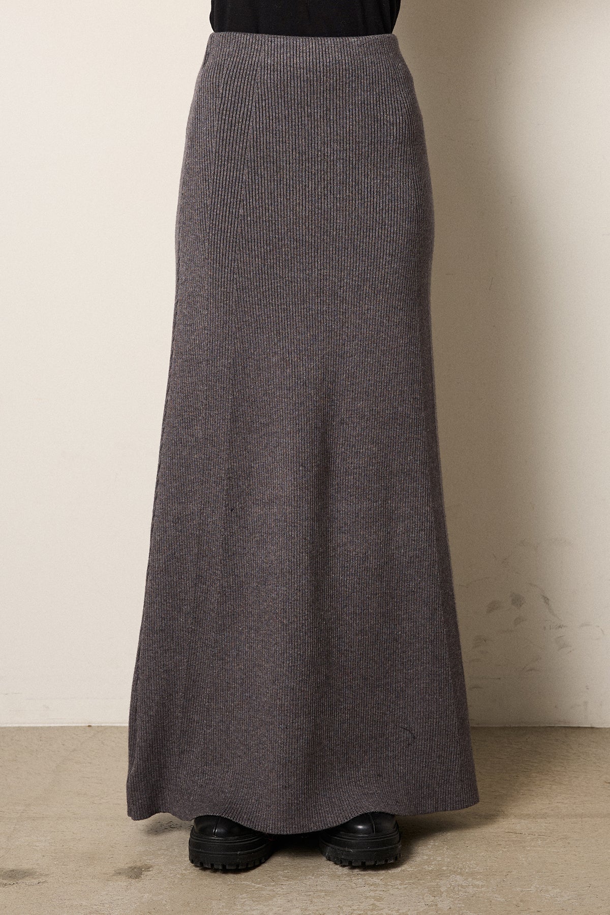 リブ編みの縦ラインがすっきりと見せるナロースカート。身体に沿いすぎない程よいフィット感で、動きやすさときれいなシルエットを両立。足元に向かって自然に落ちる柔らかな生地感が、重たくならず大人らしい抜け感をプラスします。スウェットやニットなど、トップスを選ばず合わせやすい万能アイテムです。