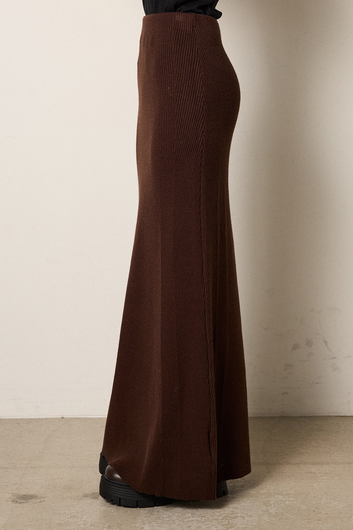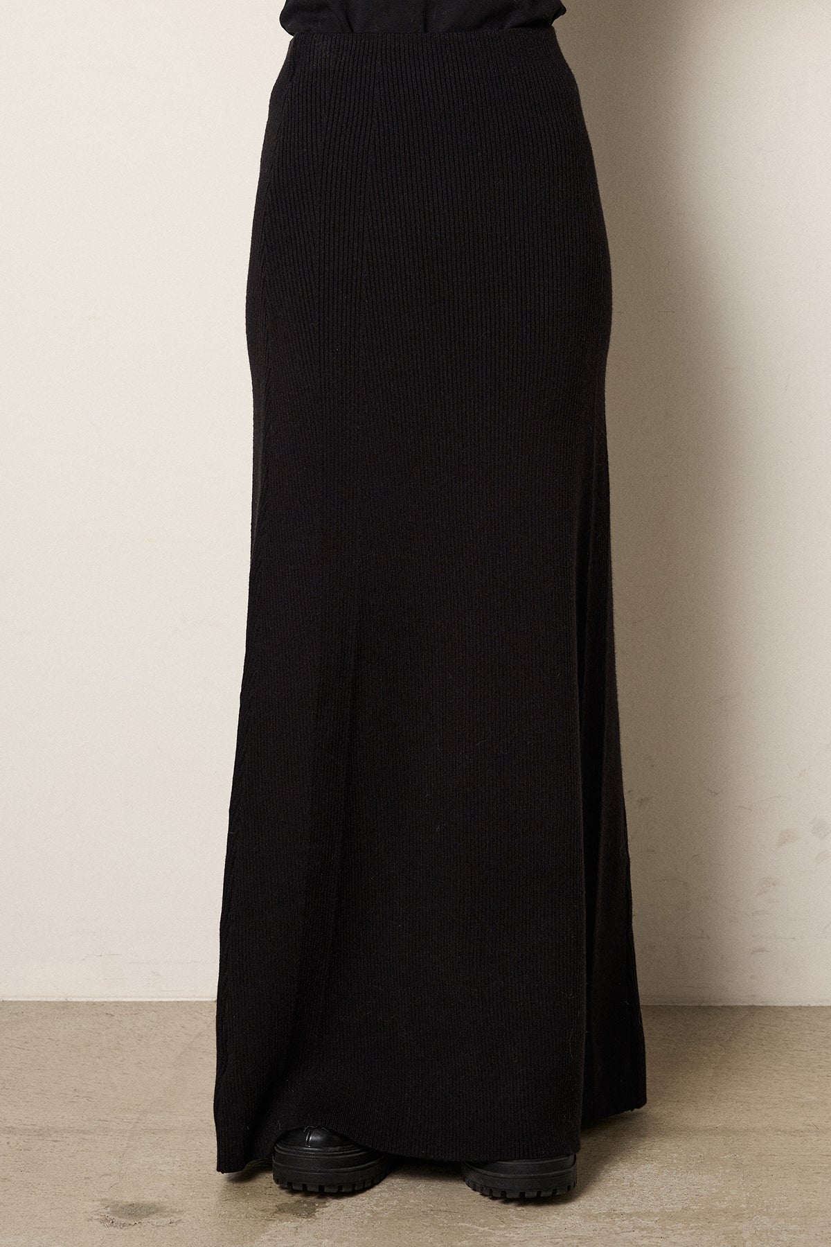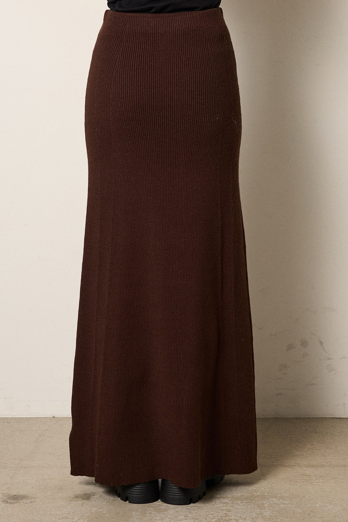 リブ編みの縦ラインがすっきりと見せるナロースカート。身体に沿いすぎない程よいフィット感で、動きやすさときれいなシルエットを両立。足元に向かって自然に落ちる柔らかな生地感が、重たくならず大人らしい抜け感をプラスします。スウェットやニットなど、トップスを選ばず合わせやすい万能アイテムです。