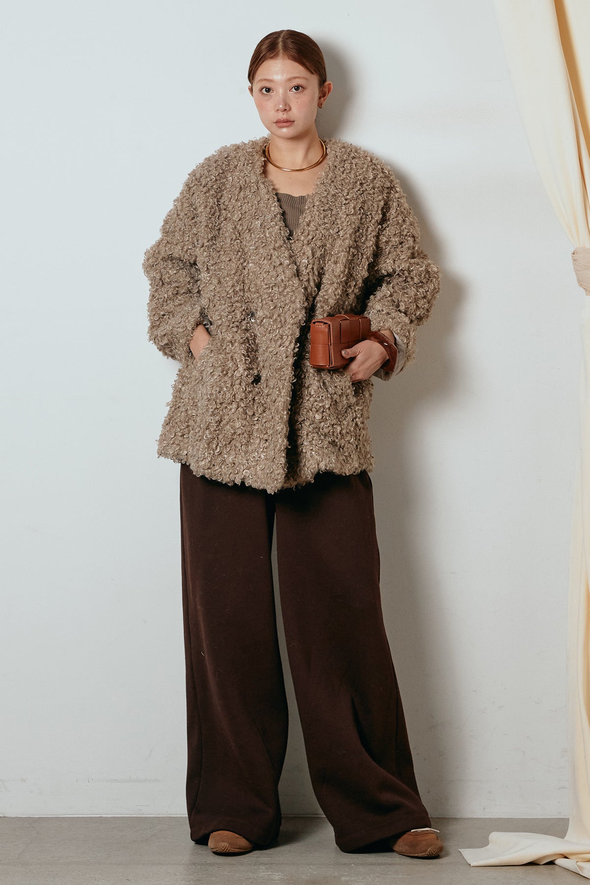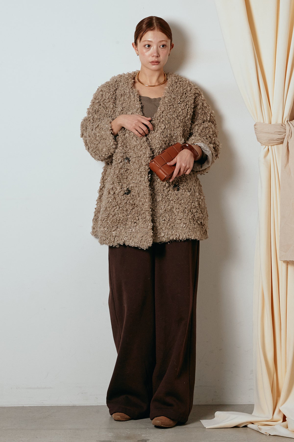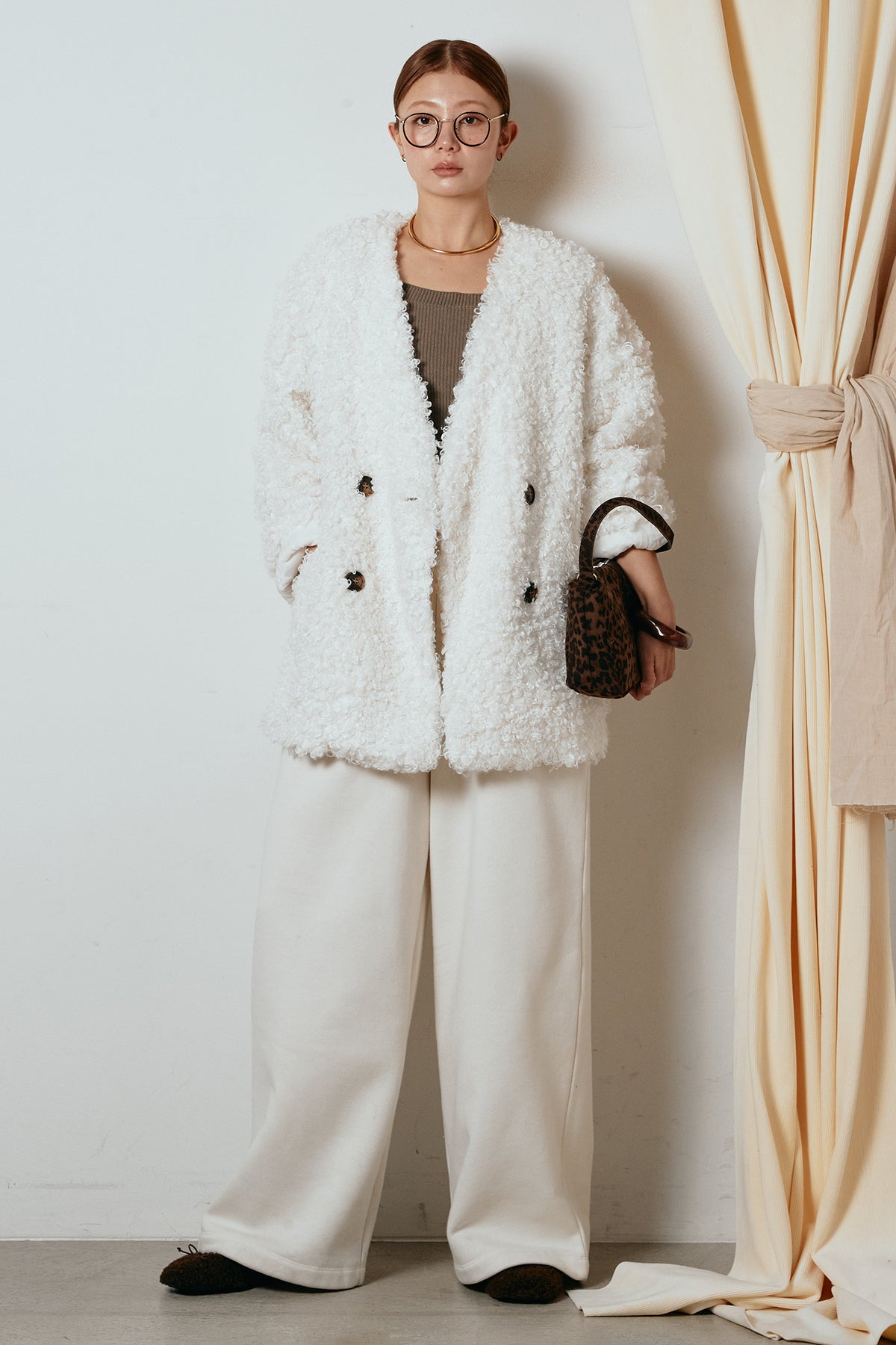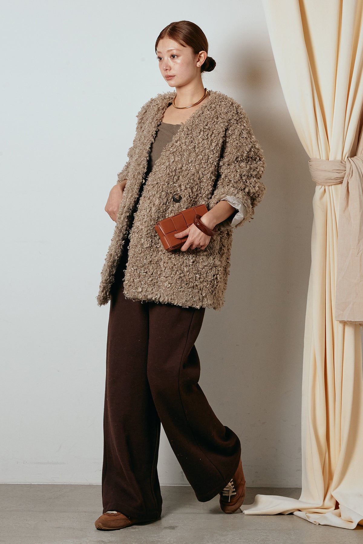 [SET]シープライクファージャケット+裏起毛スウェットワイドパンツ(2set)