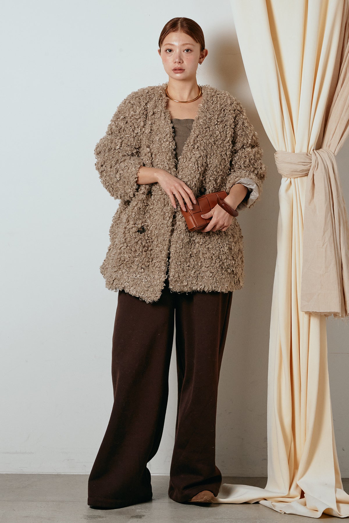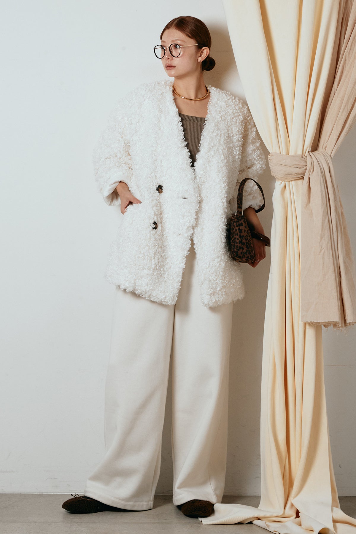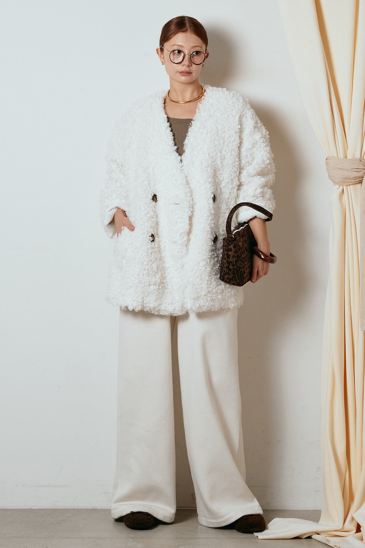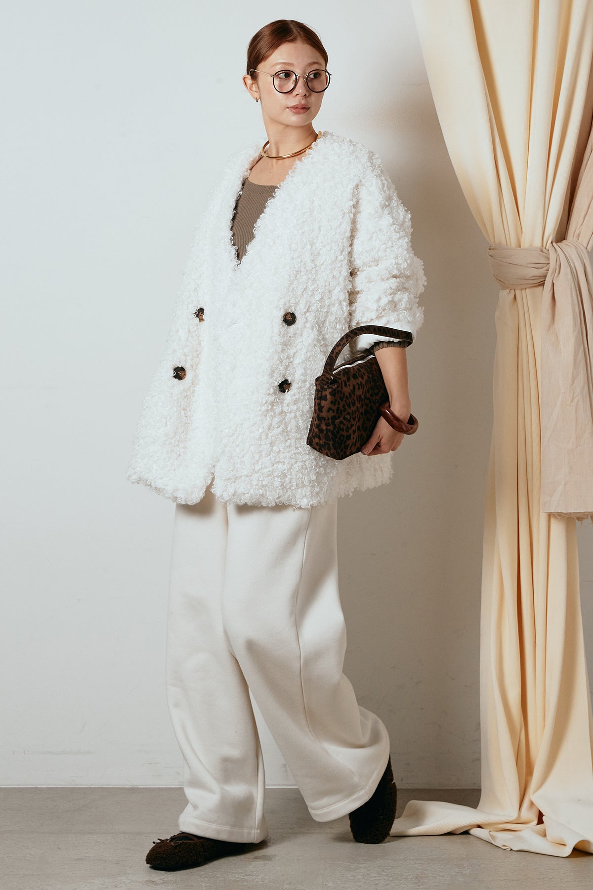 [SET]シープライクファージャケット+裏起毛スウェットワイドパンツ(2set)