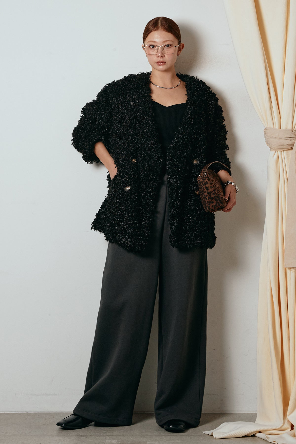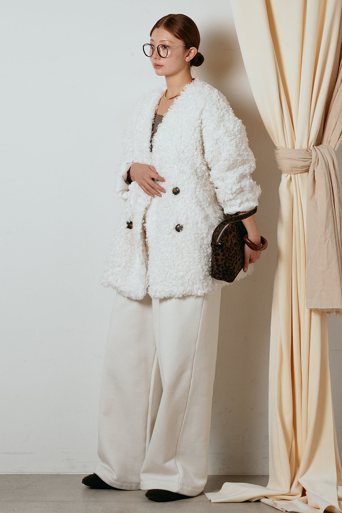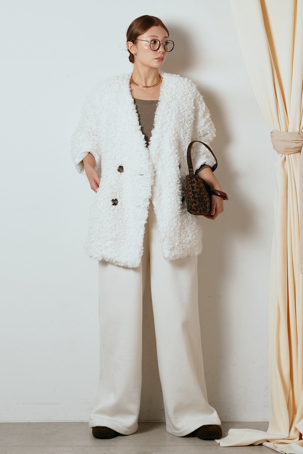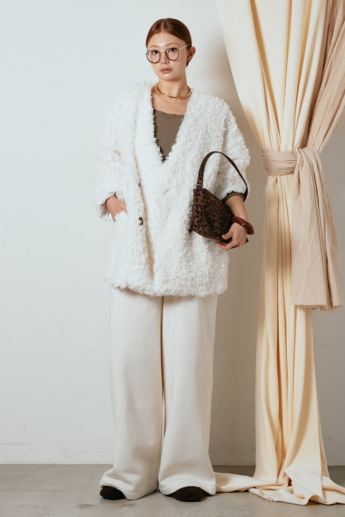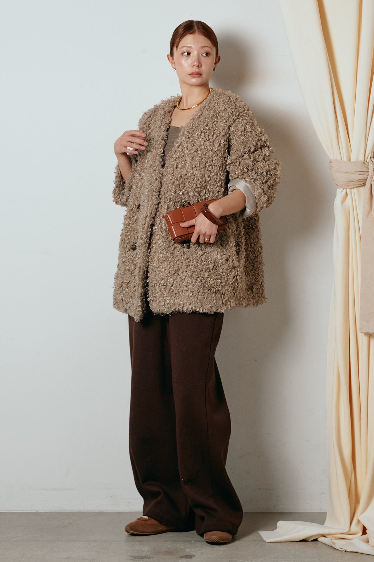 [SET]シープライクファージャケット+裏起毛スウェットワイドパンツ(2set)