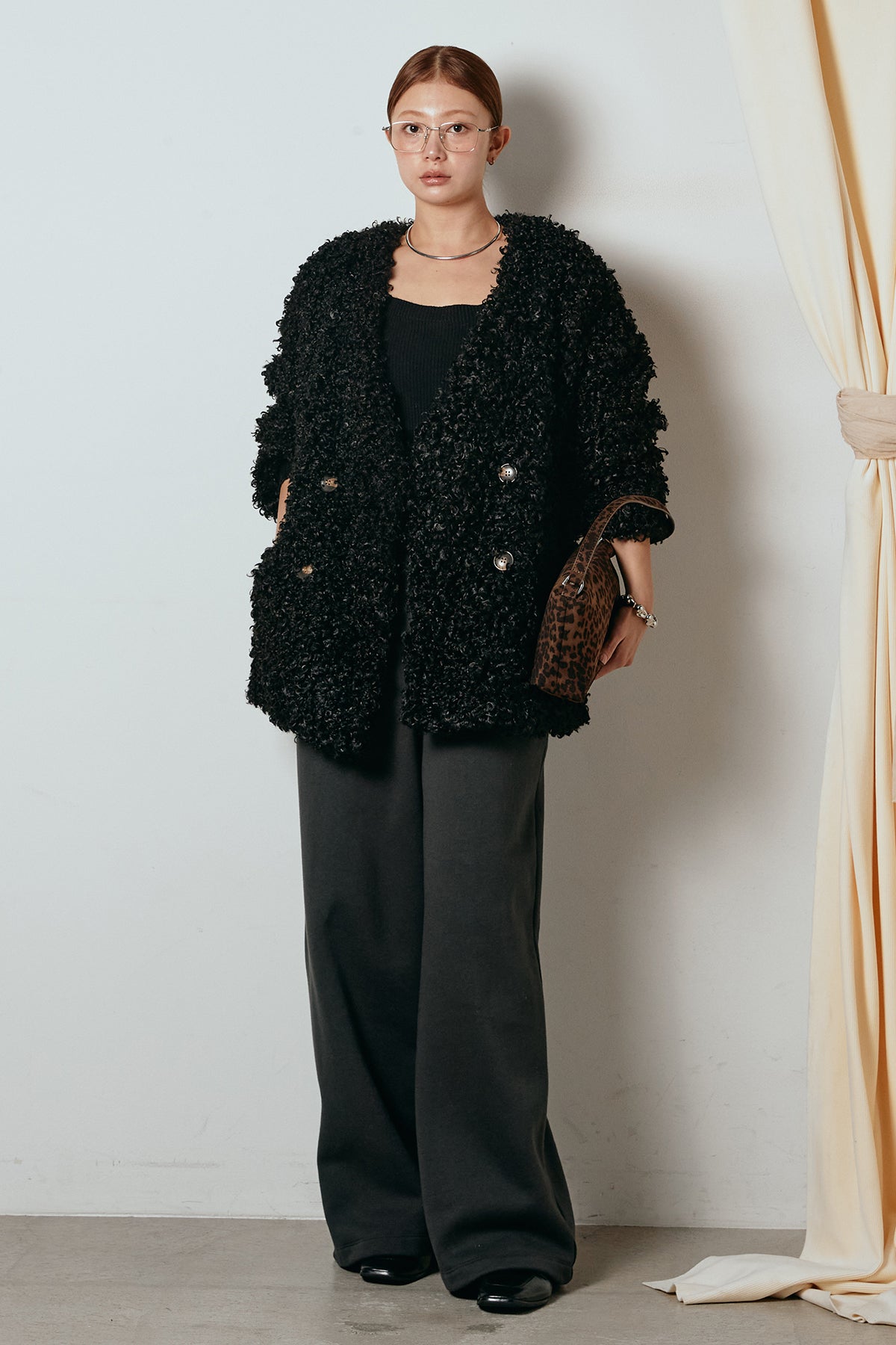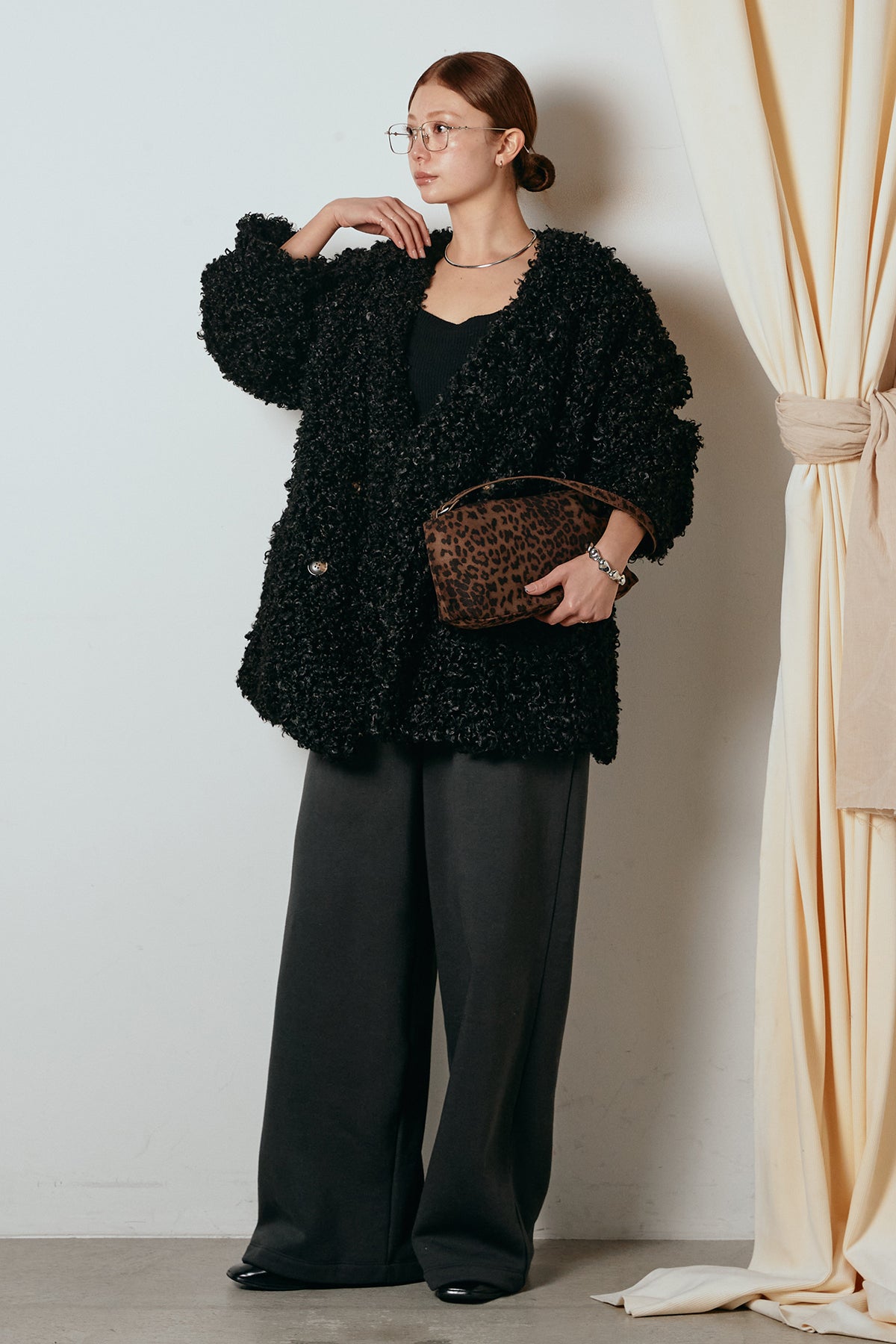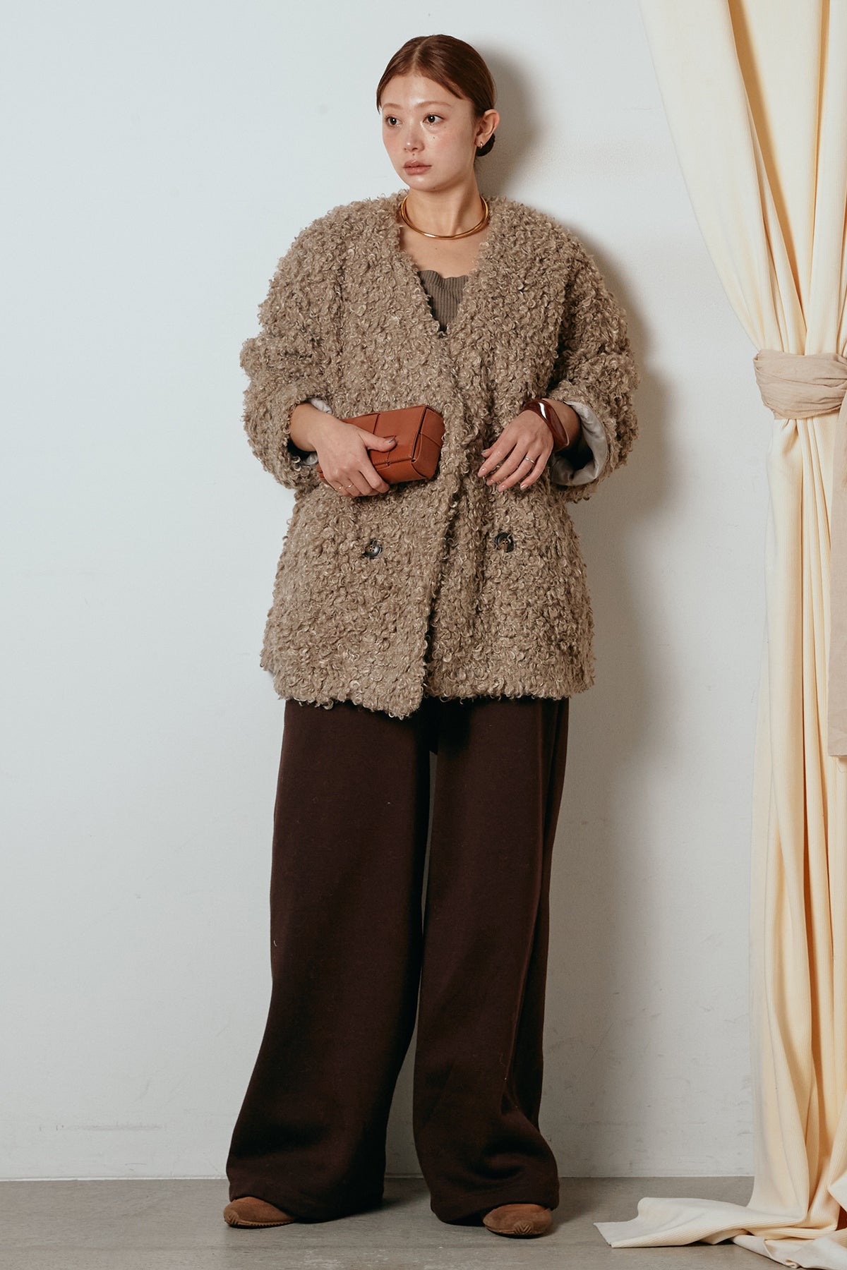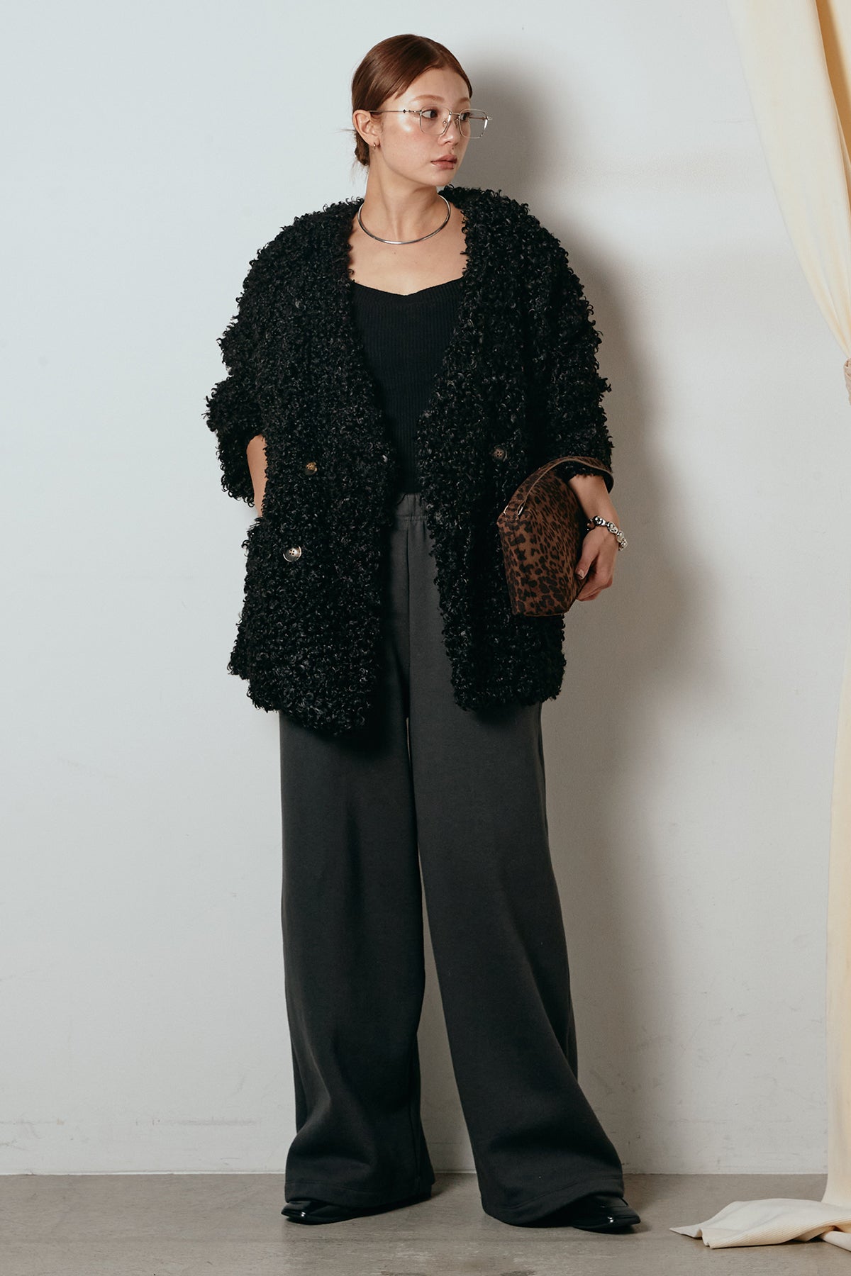 [SET]シープライクファージャケット+裏起毛スウェットワイドパンツ(2set)