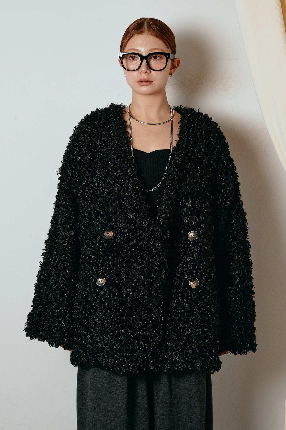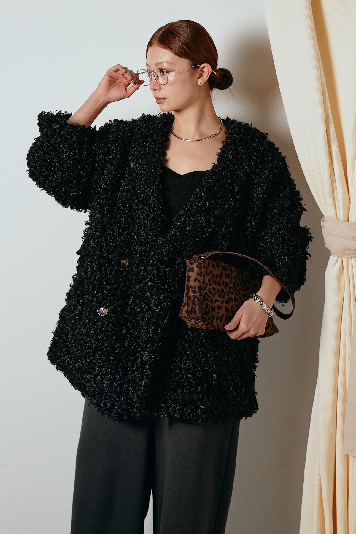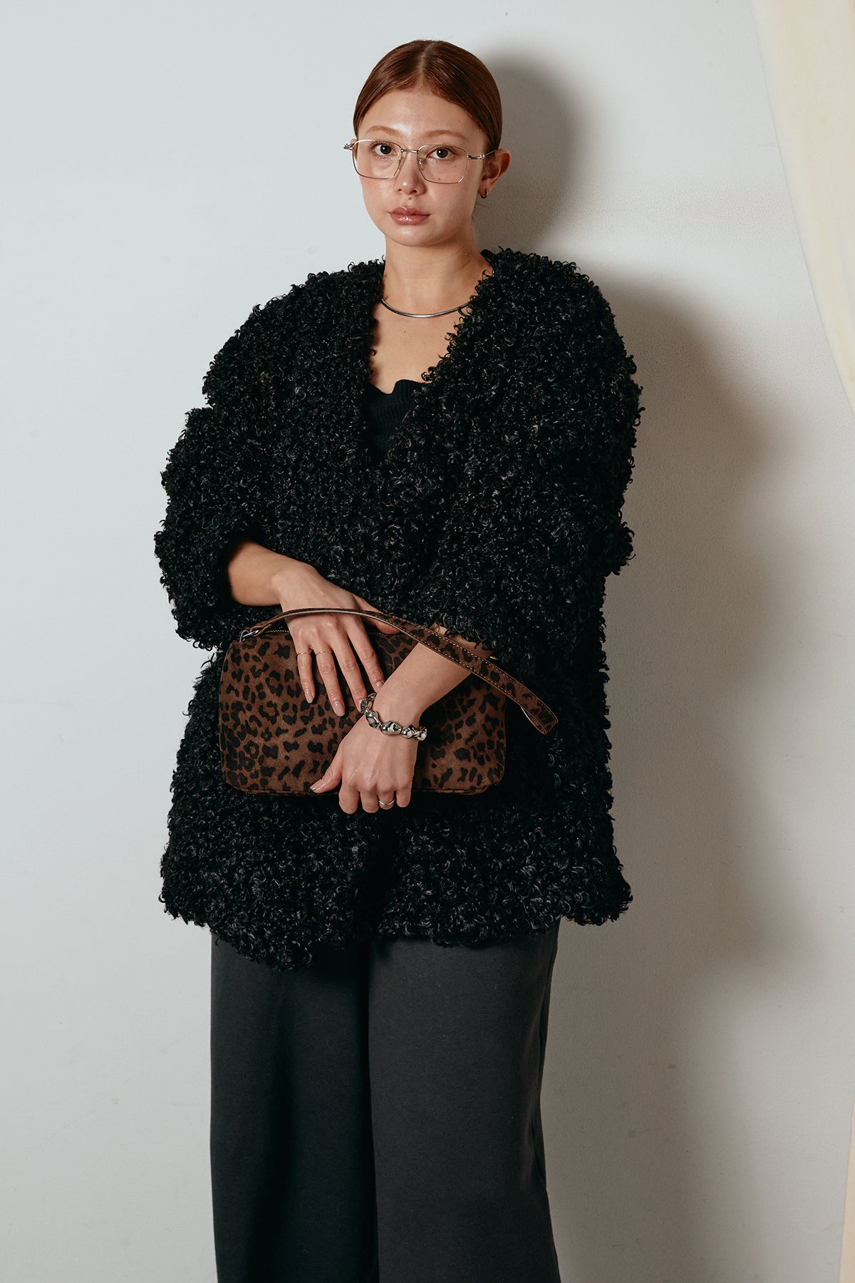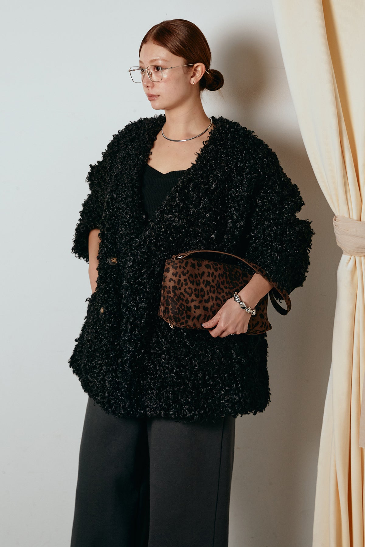 ふんわりとしたシープ調のファーが、優しいボリューム感とあたたかなムードを演出するファージャケット。柔らかな毛足が立体的な表情をつくり、シンプルなスタイリングにも存在感を添えます。前立てはすっきりとしたV開きで、インナーを問わず合わせやすいバランスに。軽やかな着心地ながらもしっかりと暖かく、デイリーからお出かけまで幅広く活躍。羽織るだけで季節感のあるスタイルが完成する一枚です。