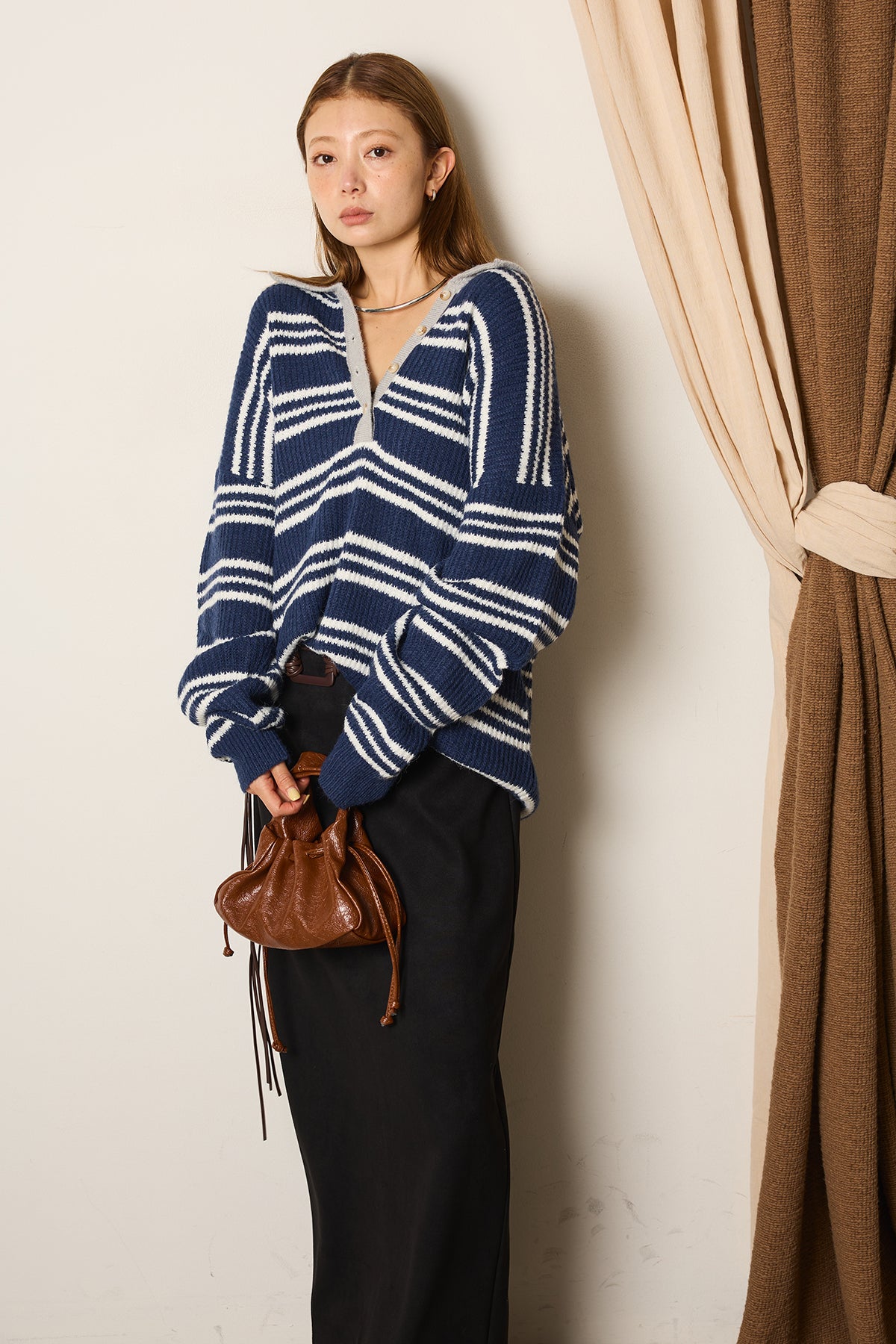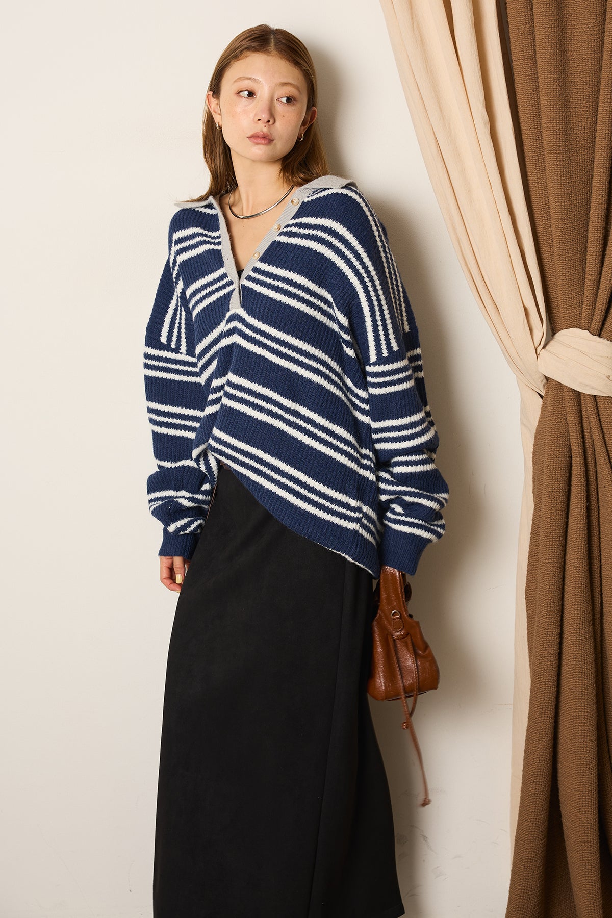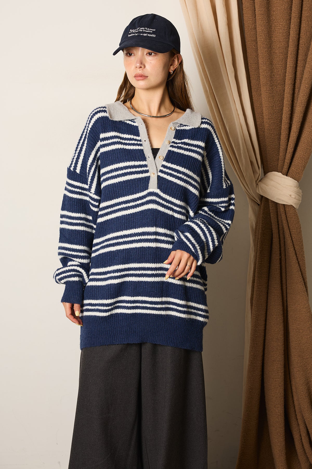 マルチボーダーニットポロトップスを含んだコーデセット商品を探す↓
