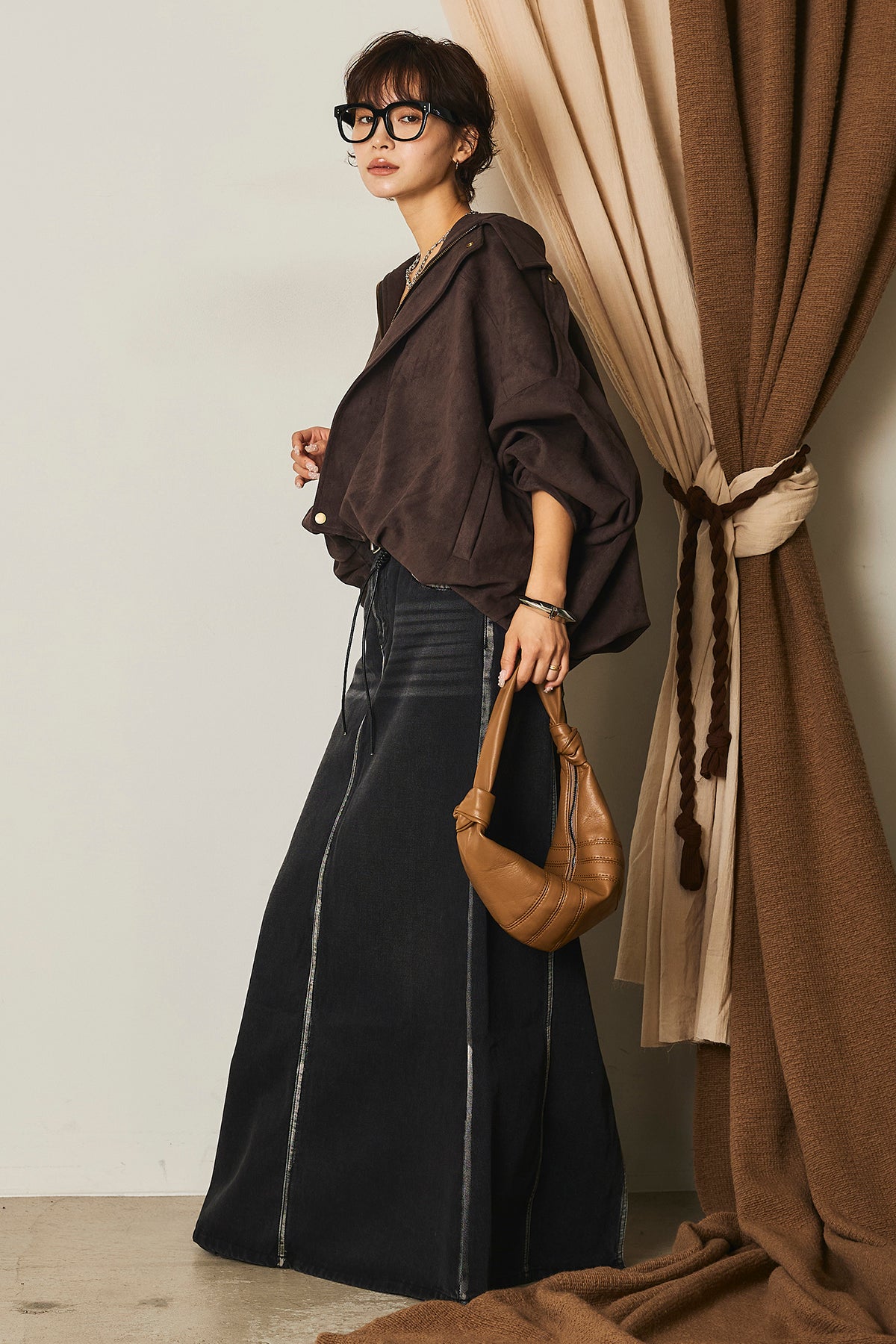 柔らかなフェイクスエード素材を使用した、シーズンムード漂うブルゾン。 裾を絞ったバルーンシルエットが特徴で、程よいボリューム感がこなれた印象を演出します。 軽やかな着心地ながらも、上品な素材感で大人っぽさをプラス。 デニムと合わせてカジュアルに、スカートやワンピースに羽織ってフェミニンにと、幅広いスタイリングに活躍するアイテムです。