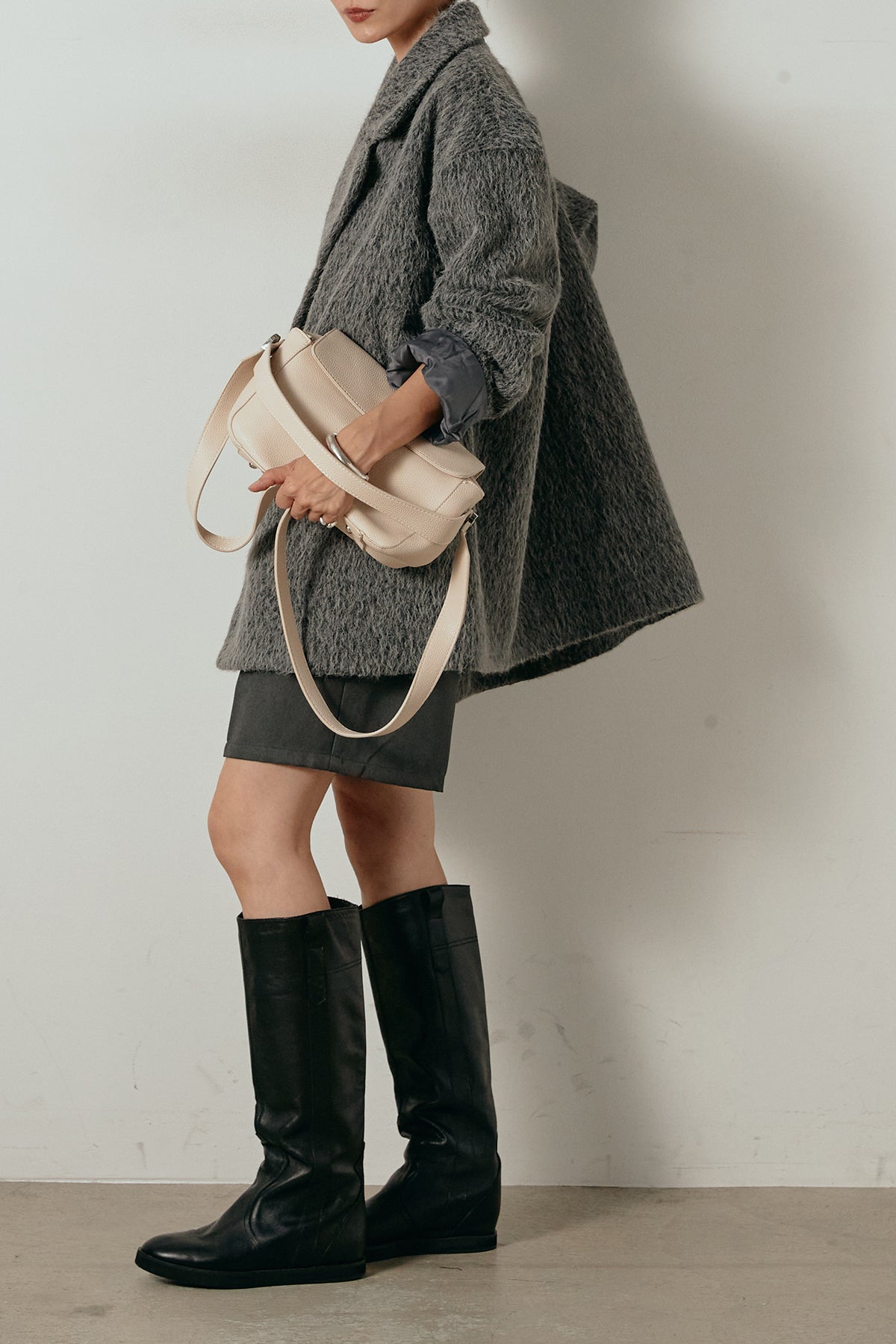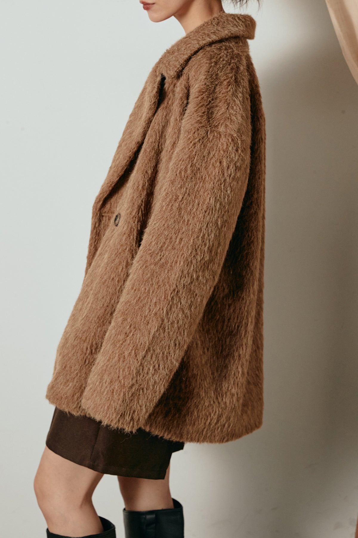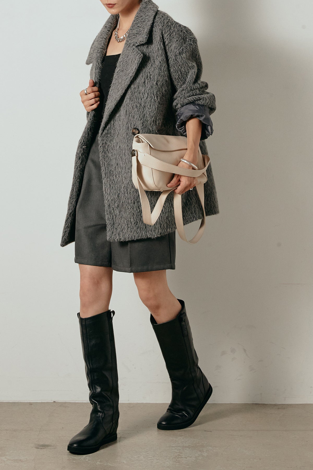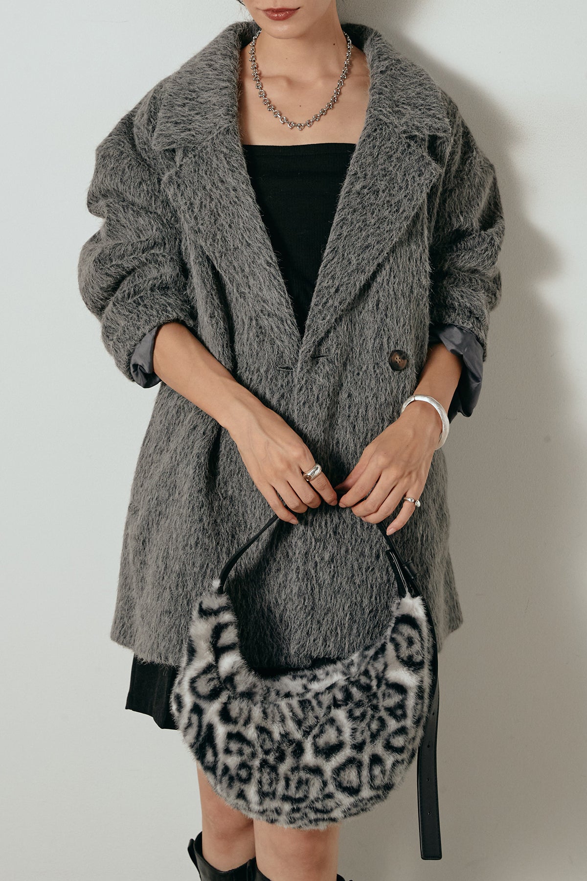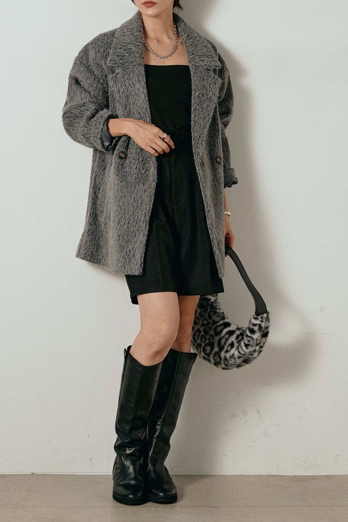 シャギー感のある起毛素材で仕上げたジャケットコート。ふっくらとした質感が暖かみを添え、シンプルなスタイルにプラスするだけで上品な雰囲気を演出します。ミドル丈のシルエットで全体のバランスが取りやすく、コーディネートの主役としても活躍します。
