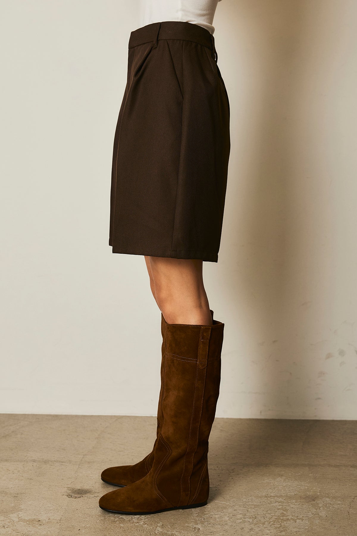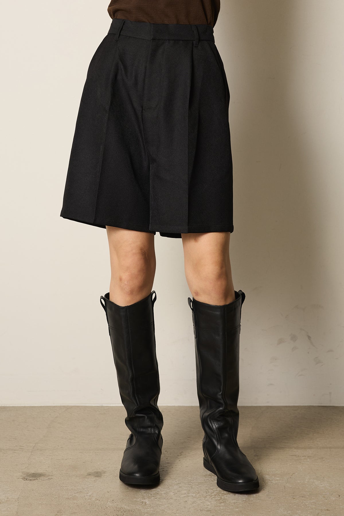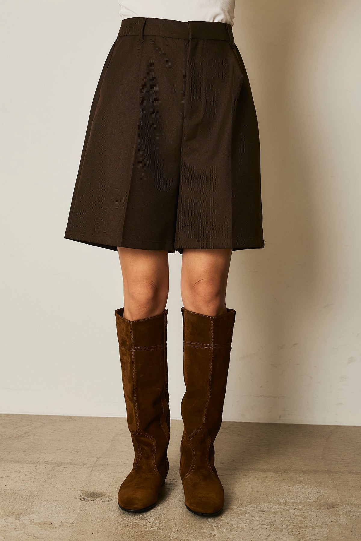 表面感のあるヘザーエステル素材を使用した、上品な印象のハーフパンツ。