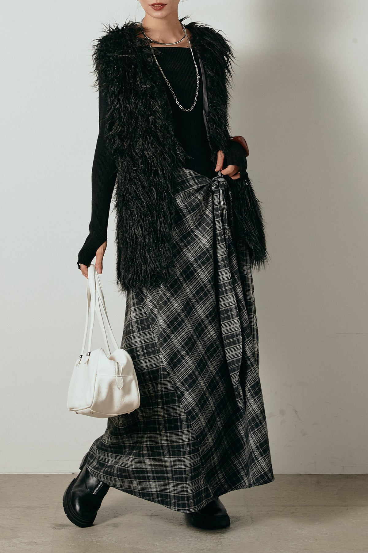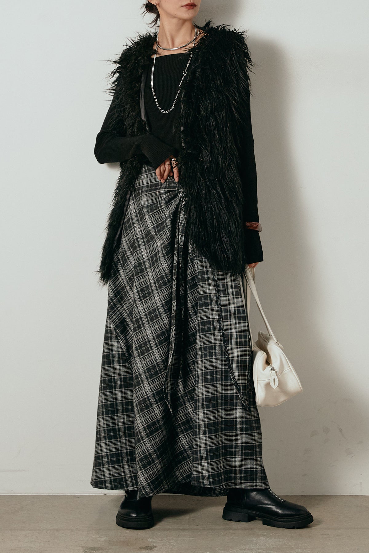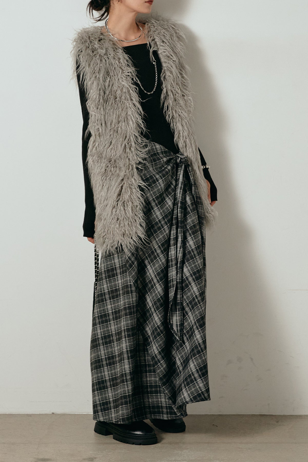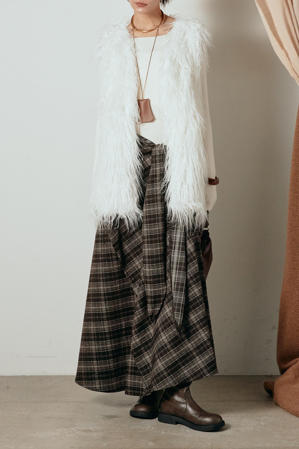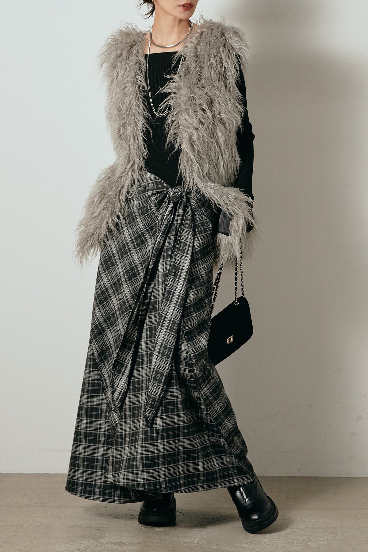[SET]エコファーベスト+タータンチェック柄ウエスト巻きスカート(2set)