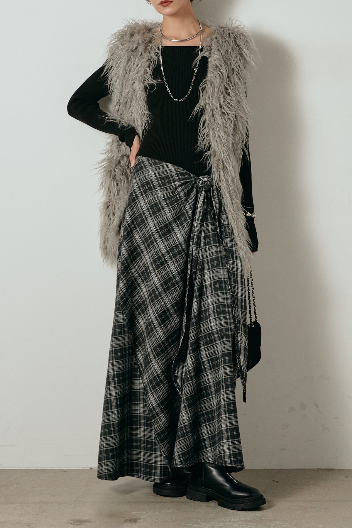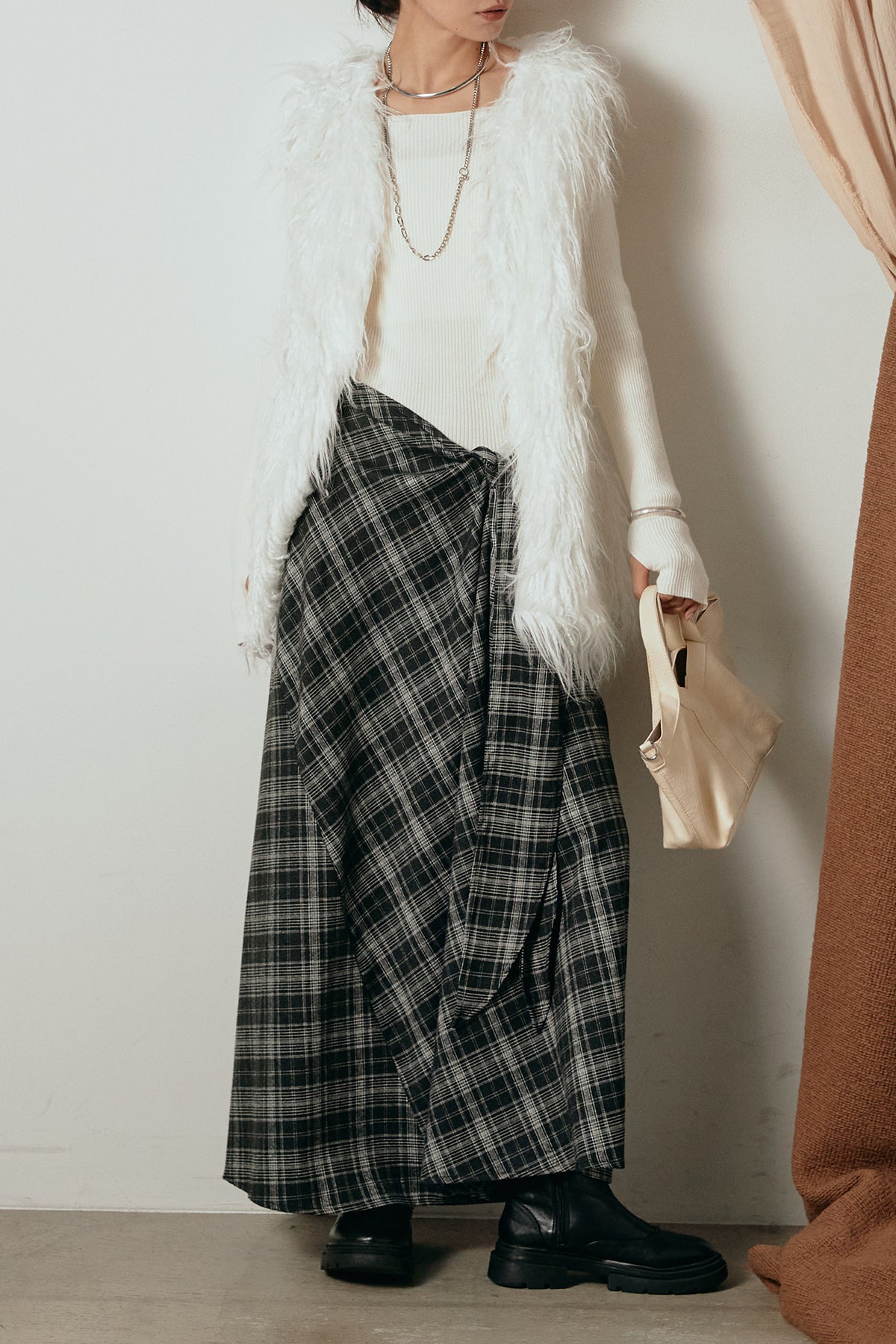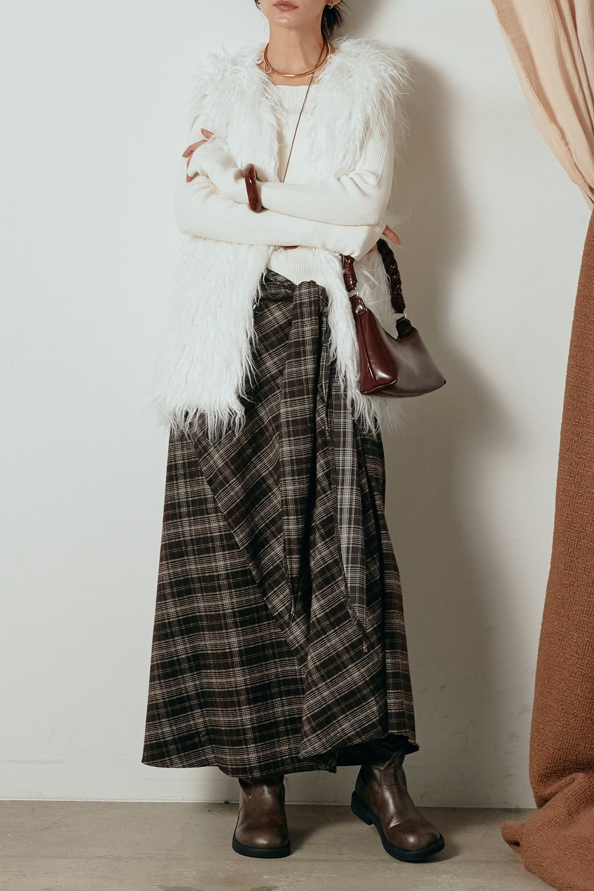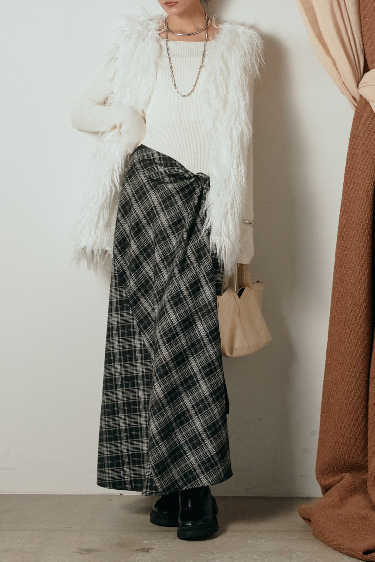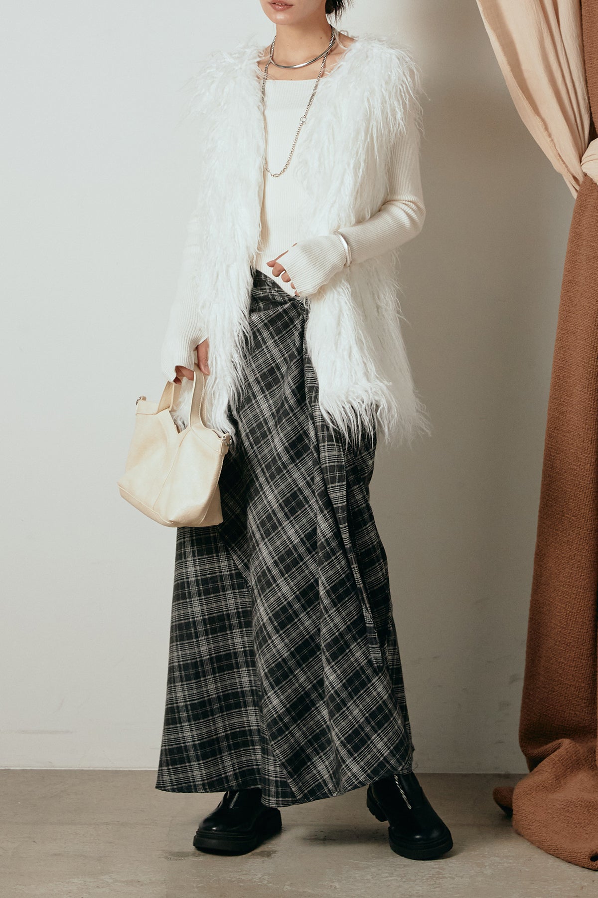 [SET]エコファーベスト+タータンチェック柄ウエスト巻きスカート(2set)