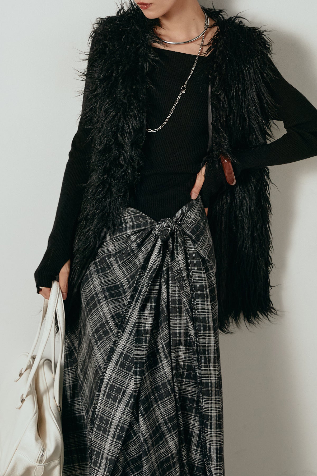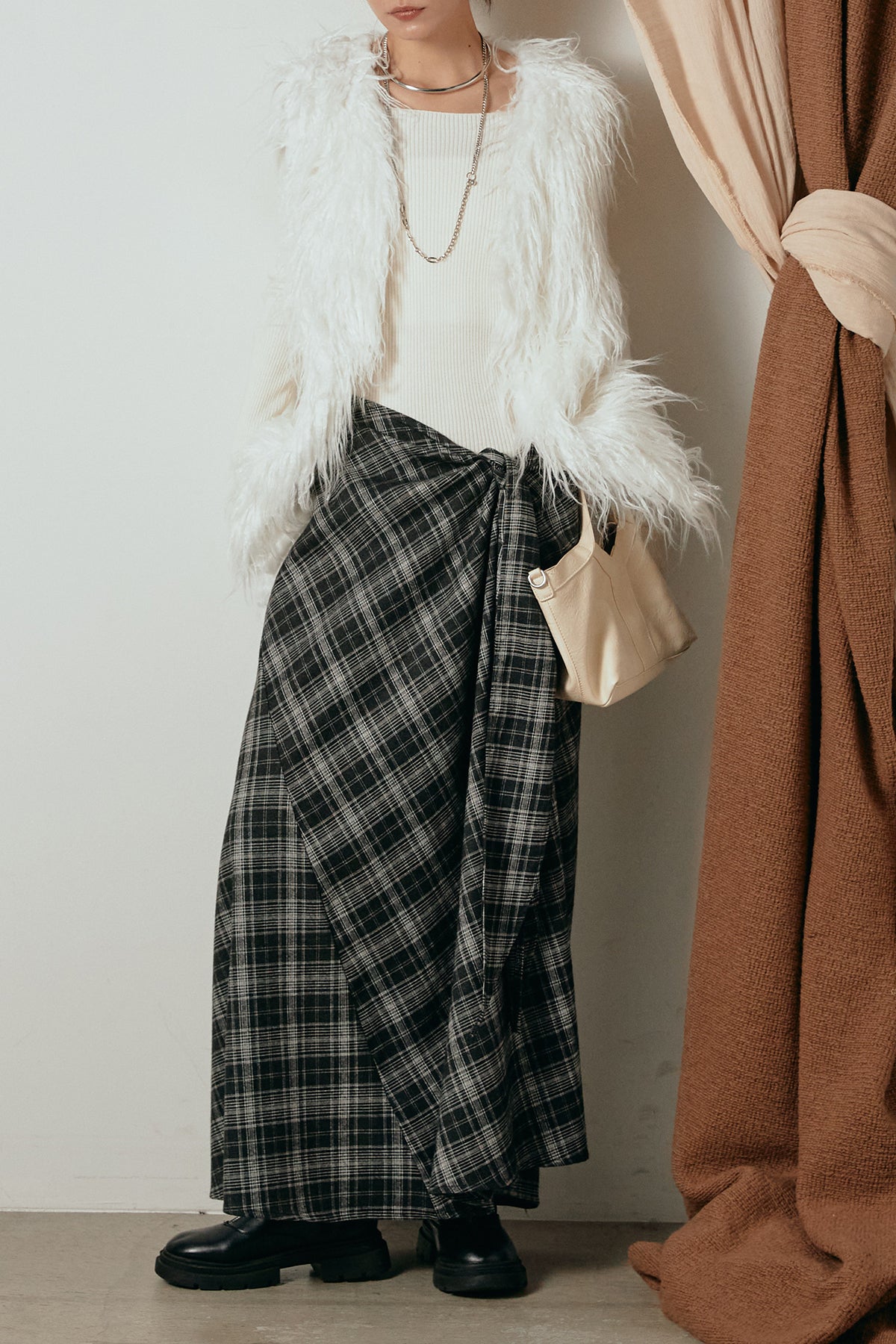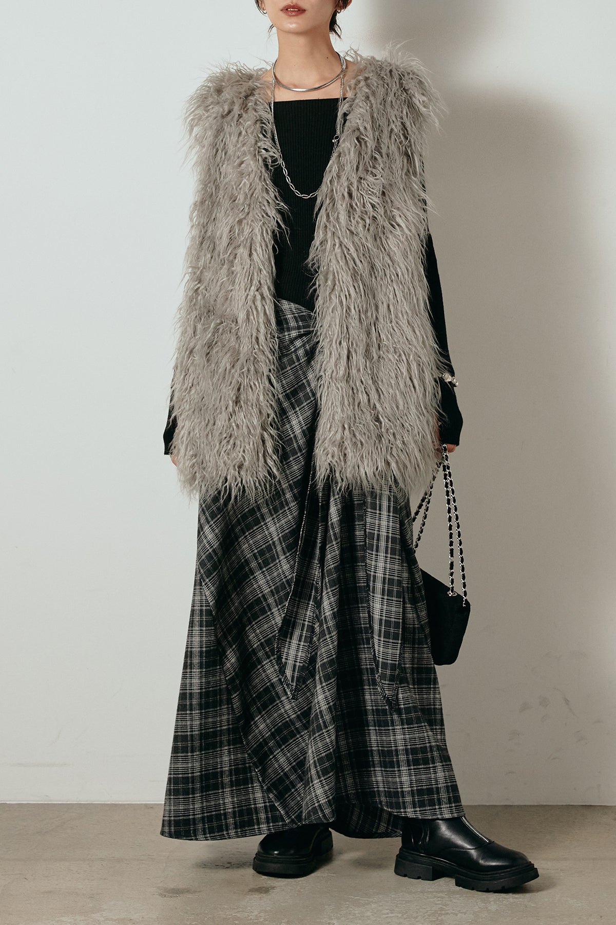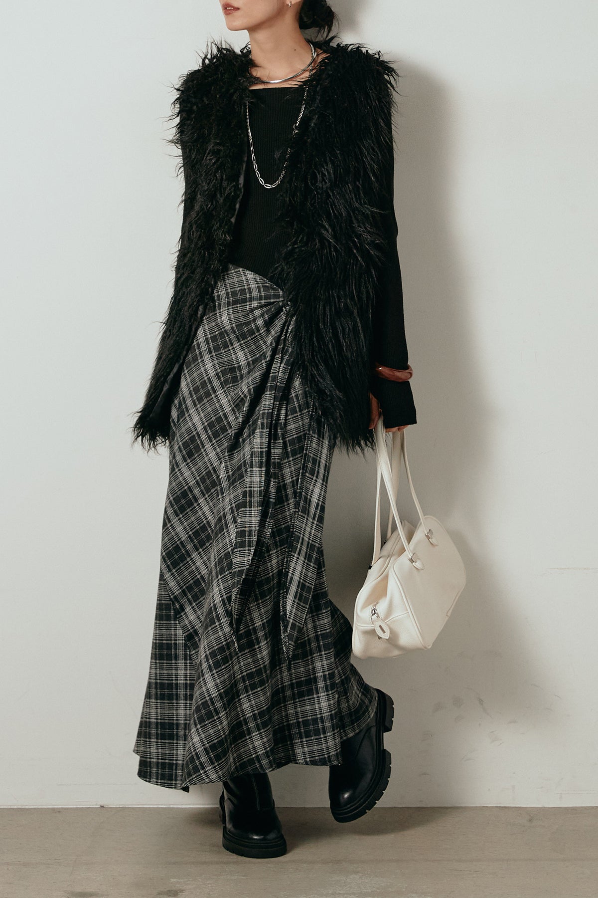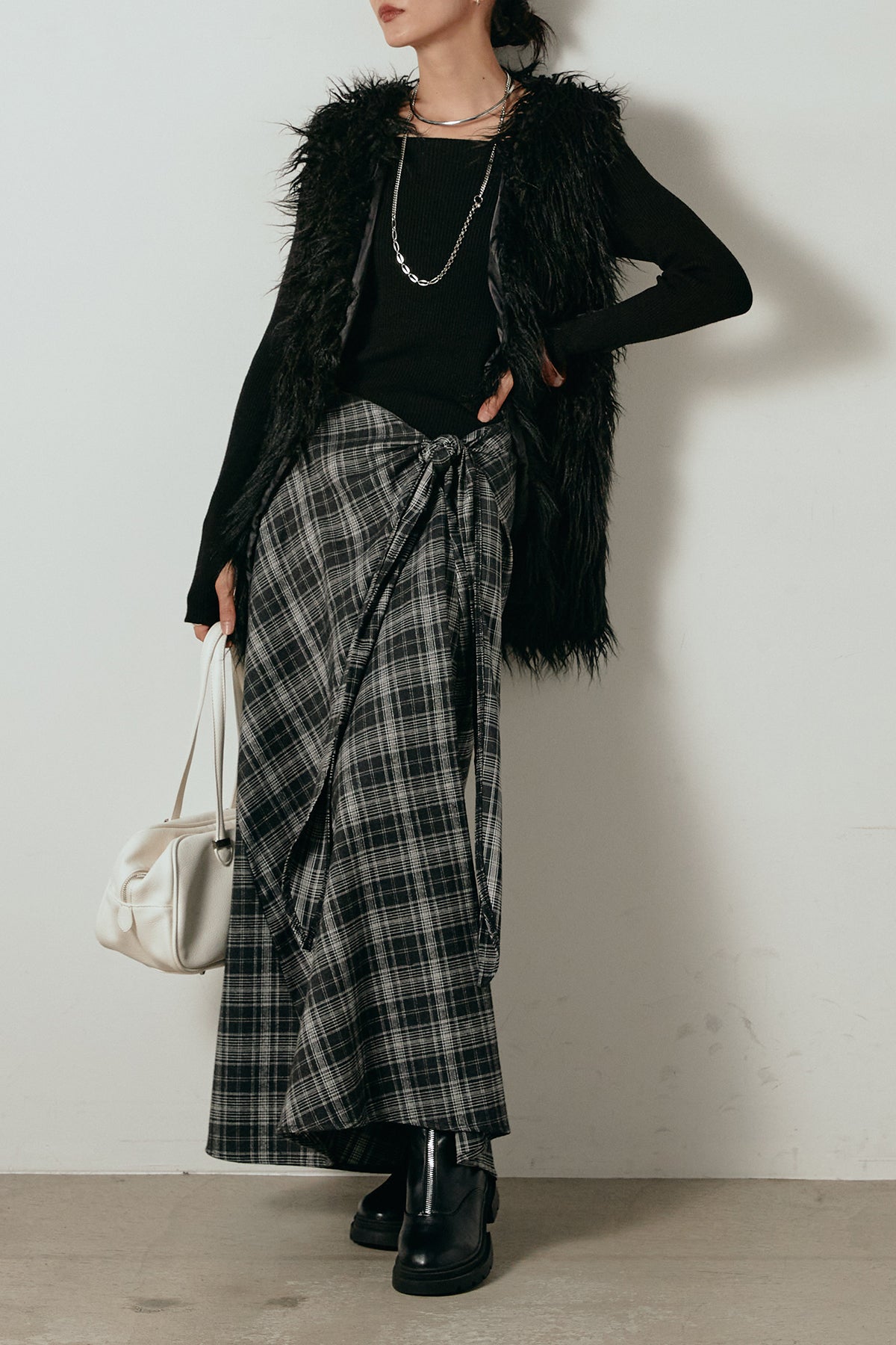 [SET]エコファーベスト+タータンチェック柄ウエスト巻きスカート(2set)