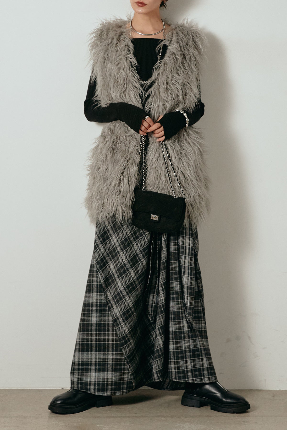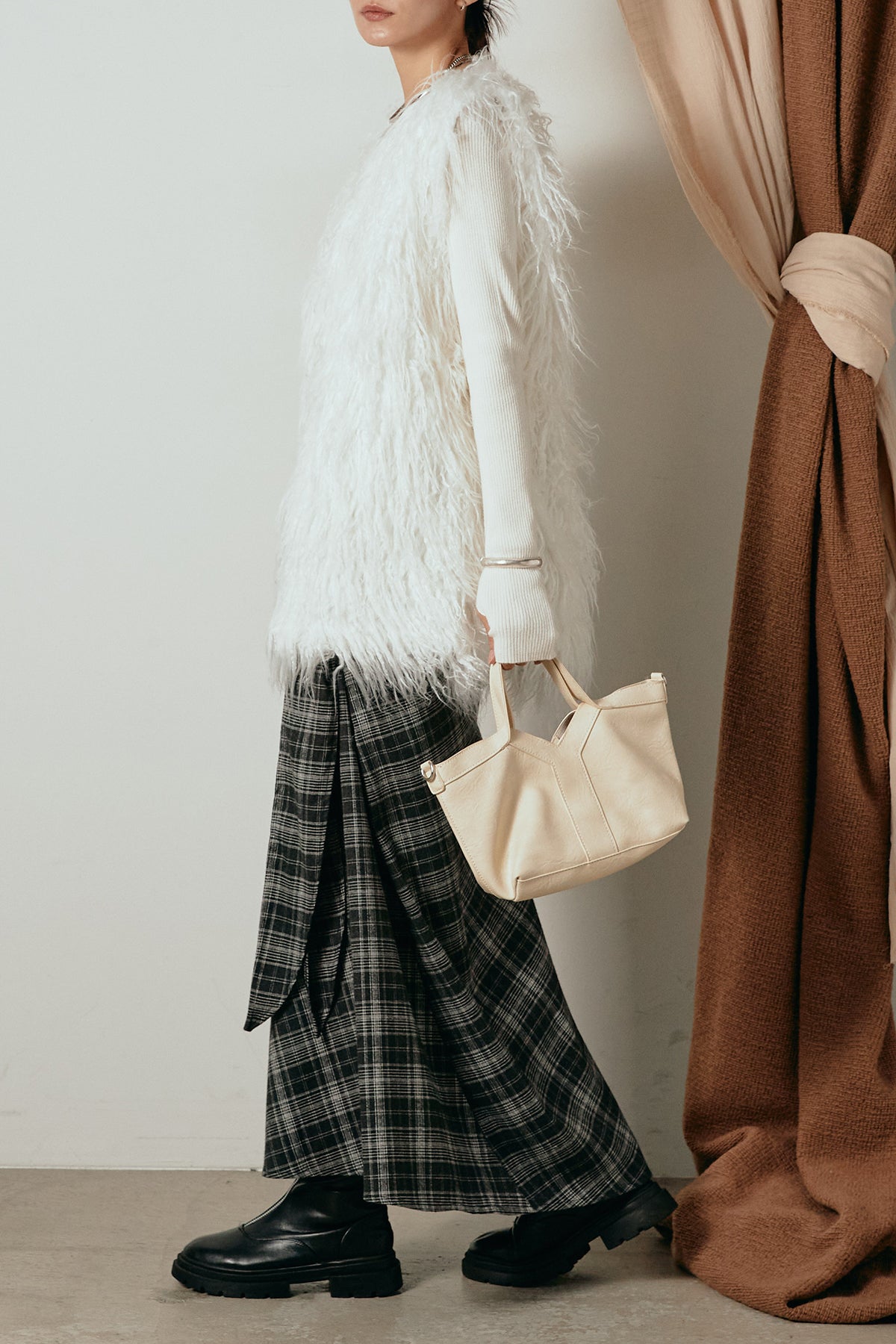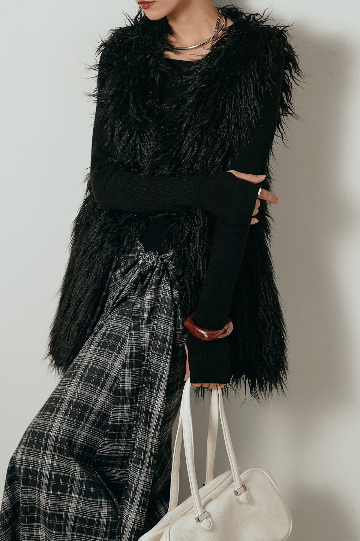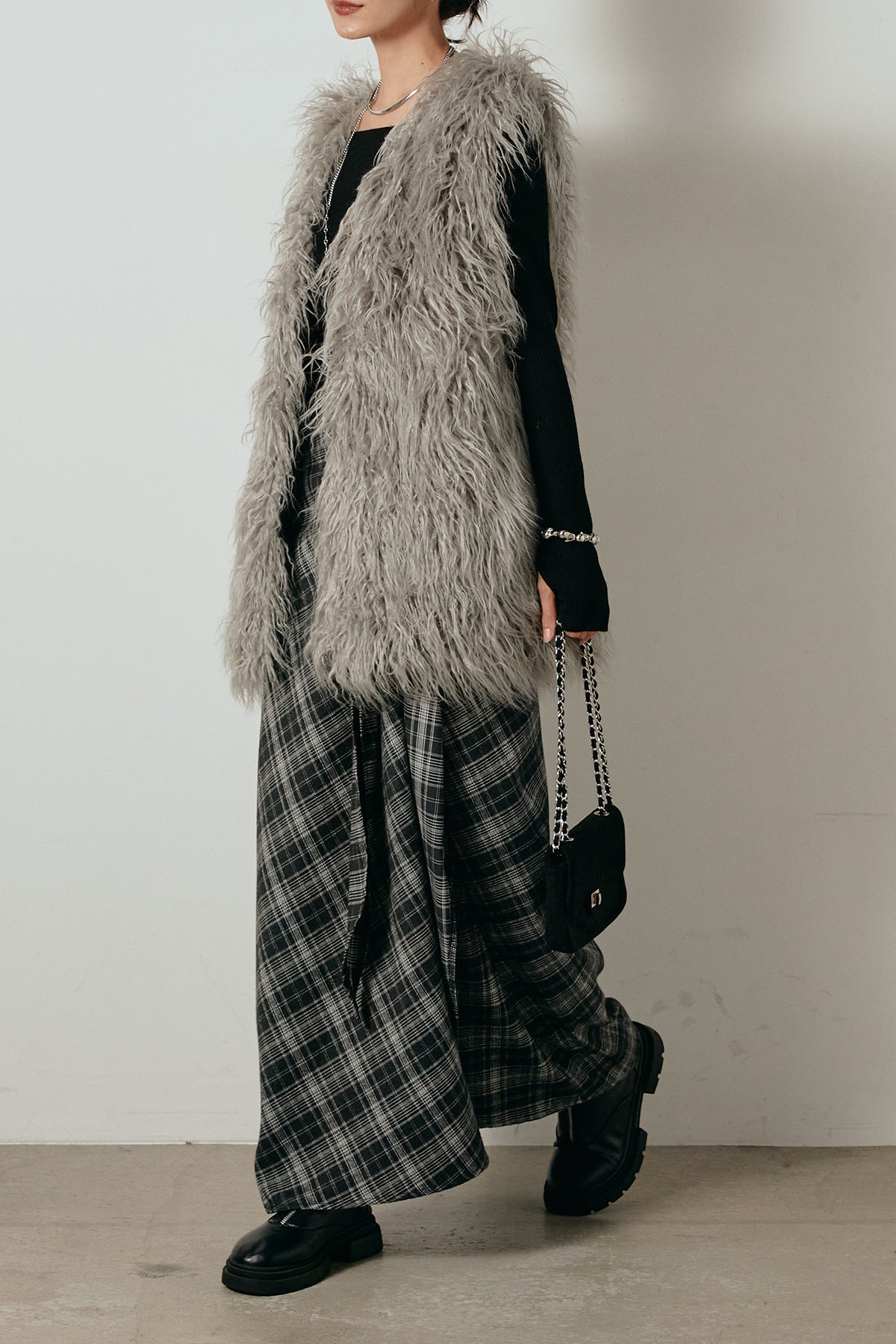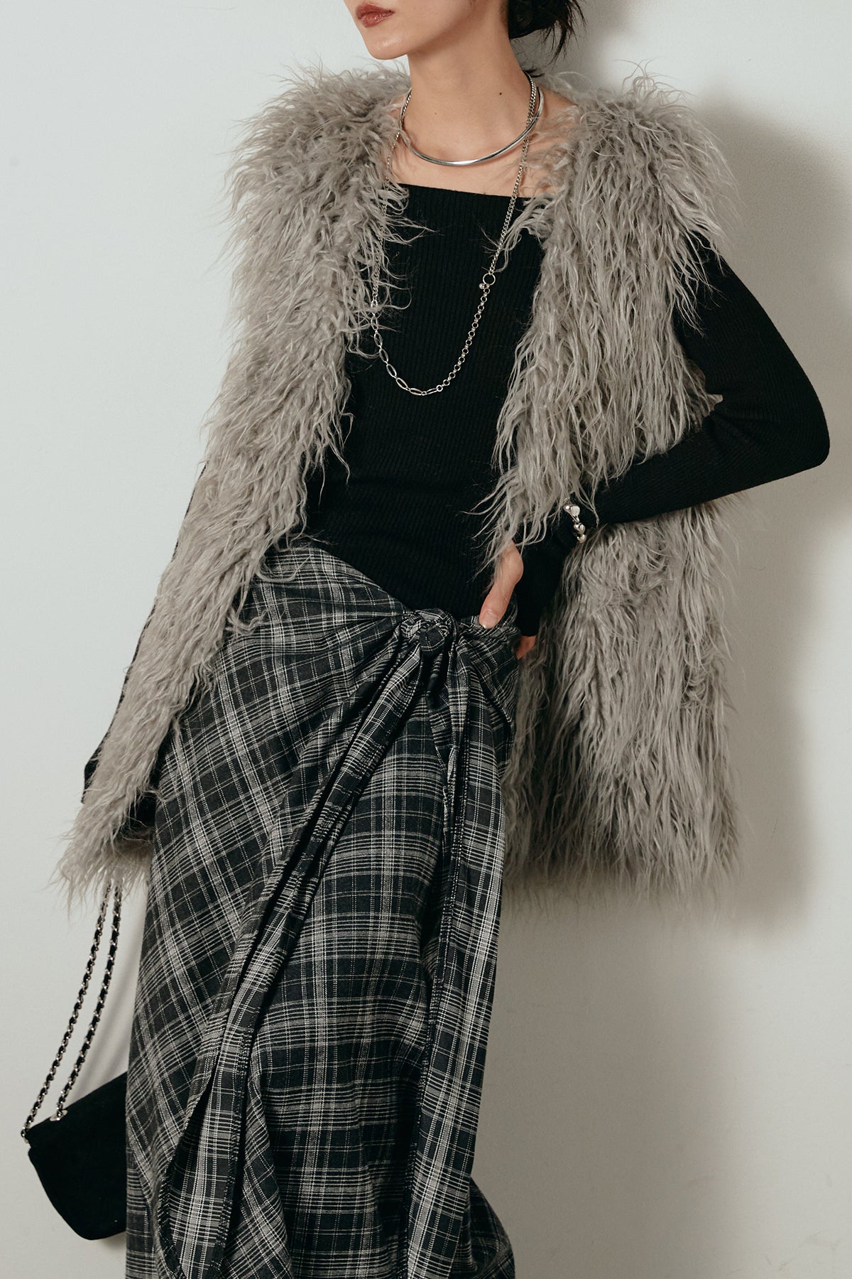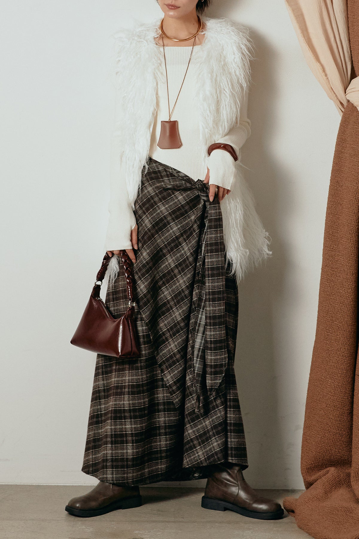 [SET]エコファーベスト+タータンチェック柄ウエスト巻きスカート(2set)