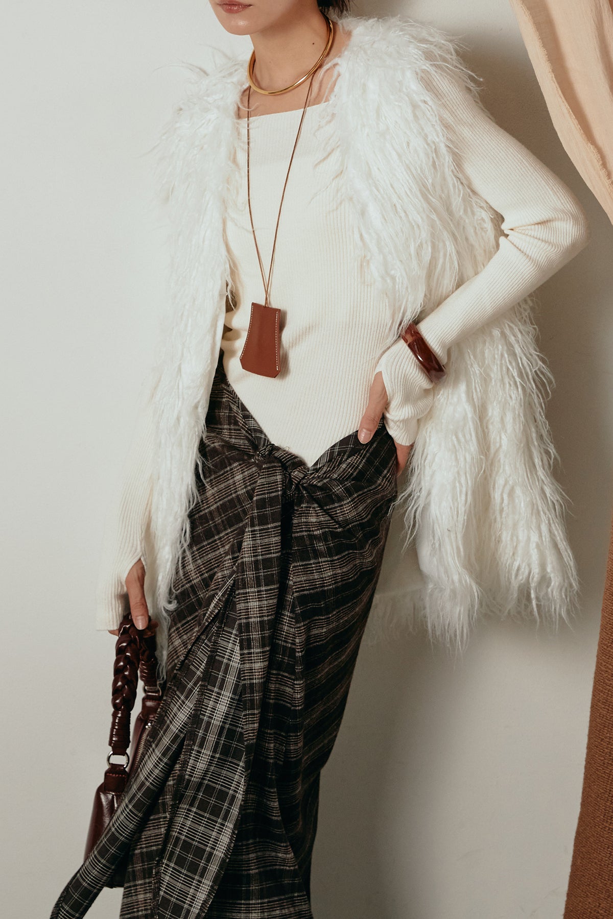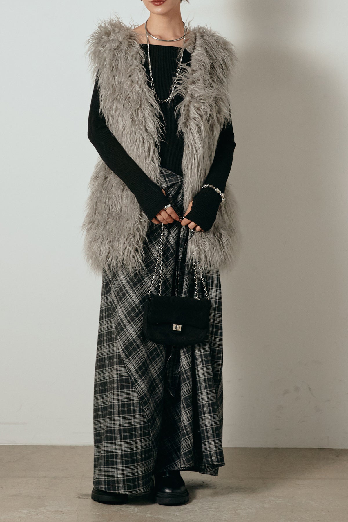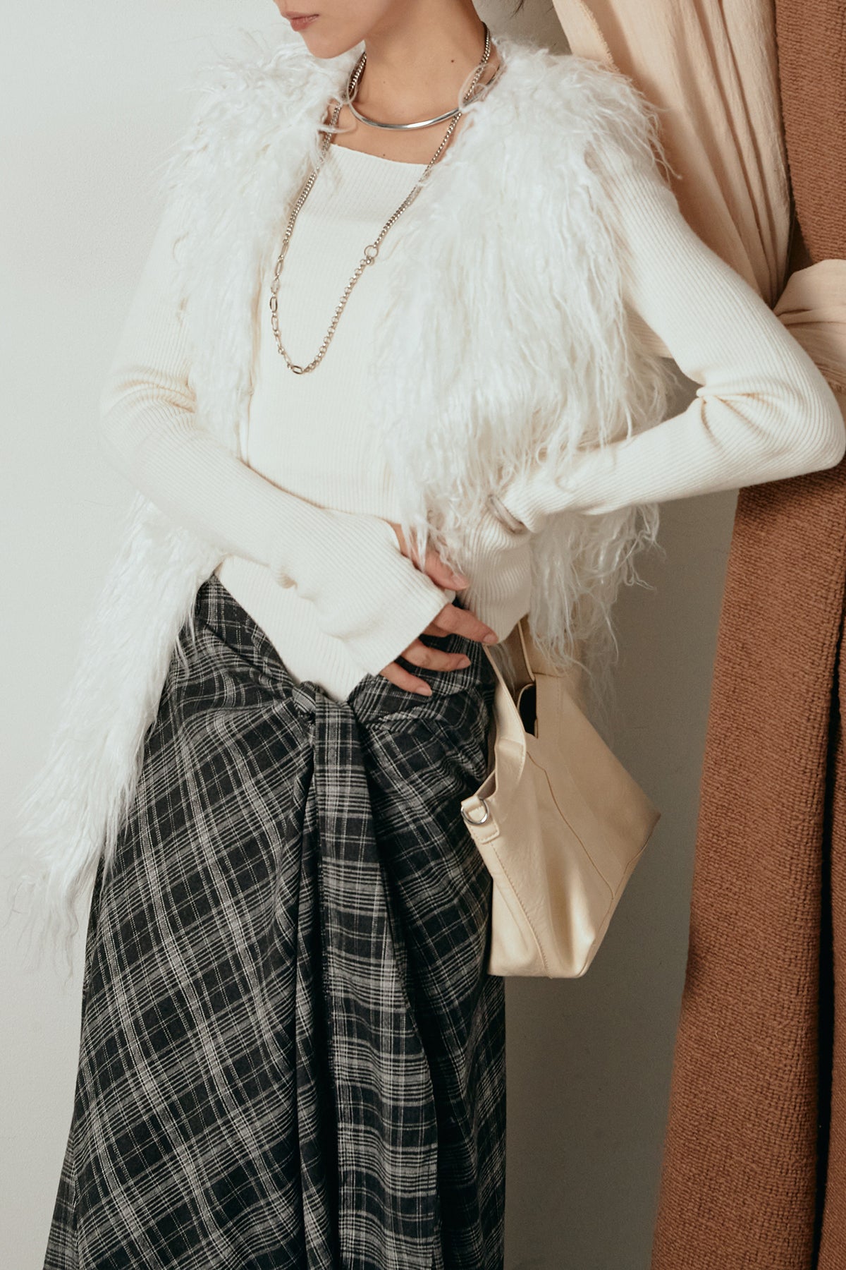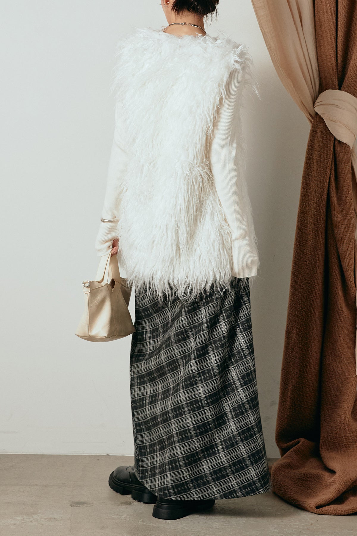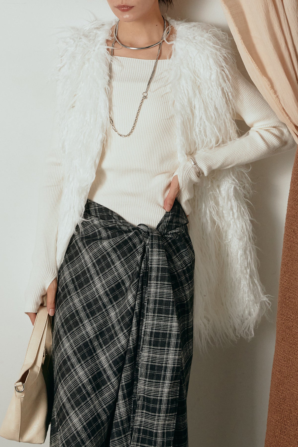 [SET]エコファーベスト+タータンチェック柄ウエスト巻きスカート(2set)