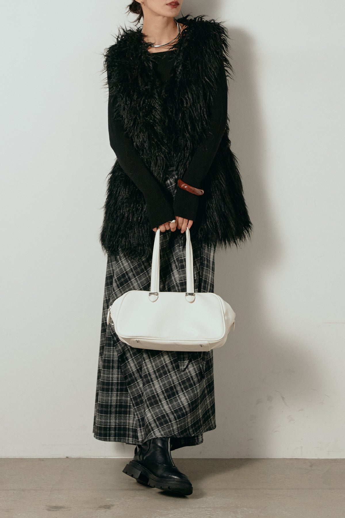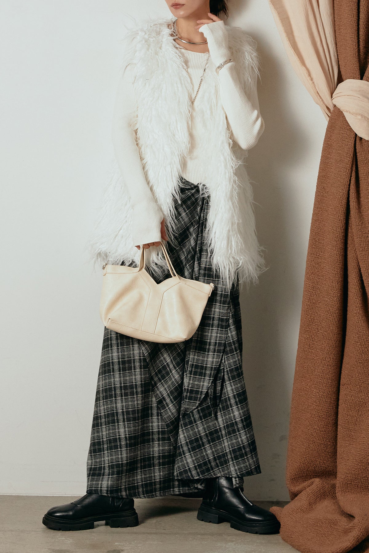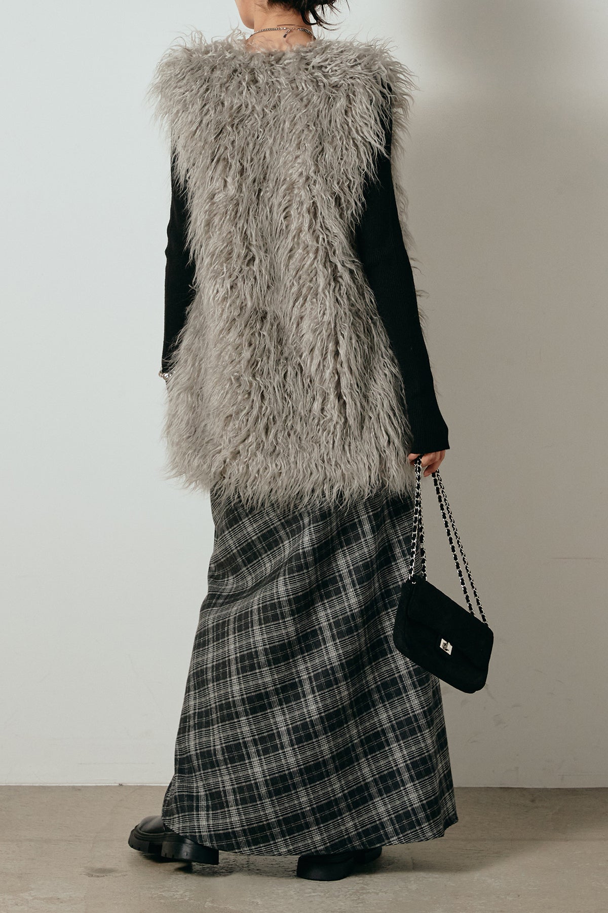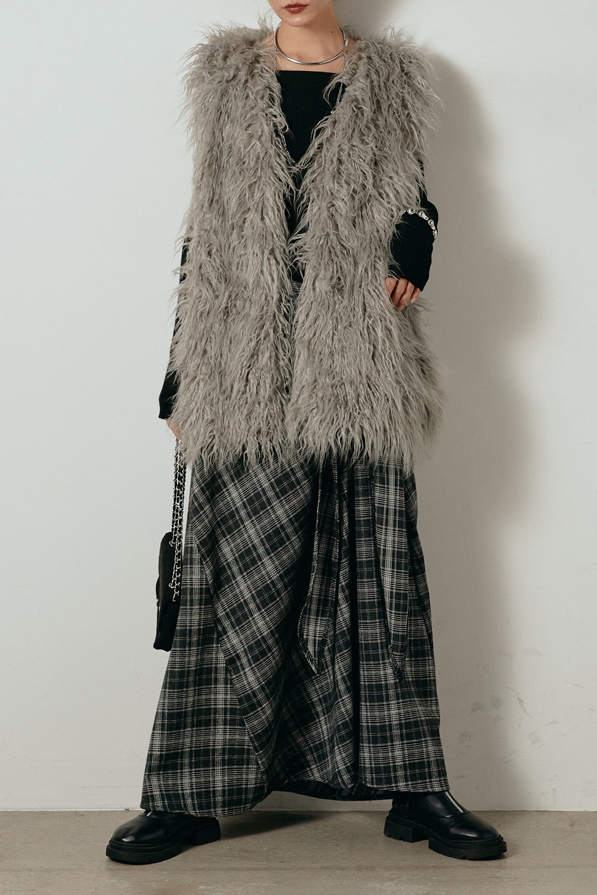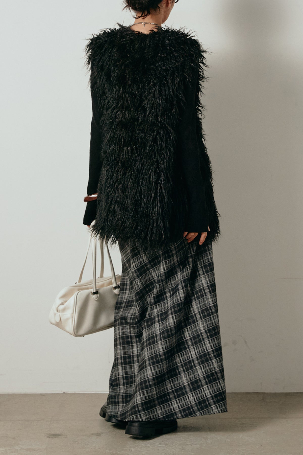 [SET]エコファーベスト+タータンチェック柄ウエスト巻きスカート(2set)