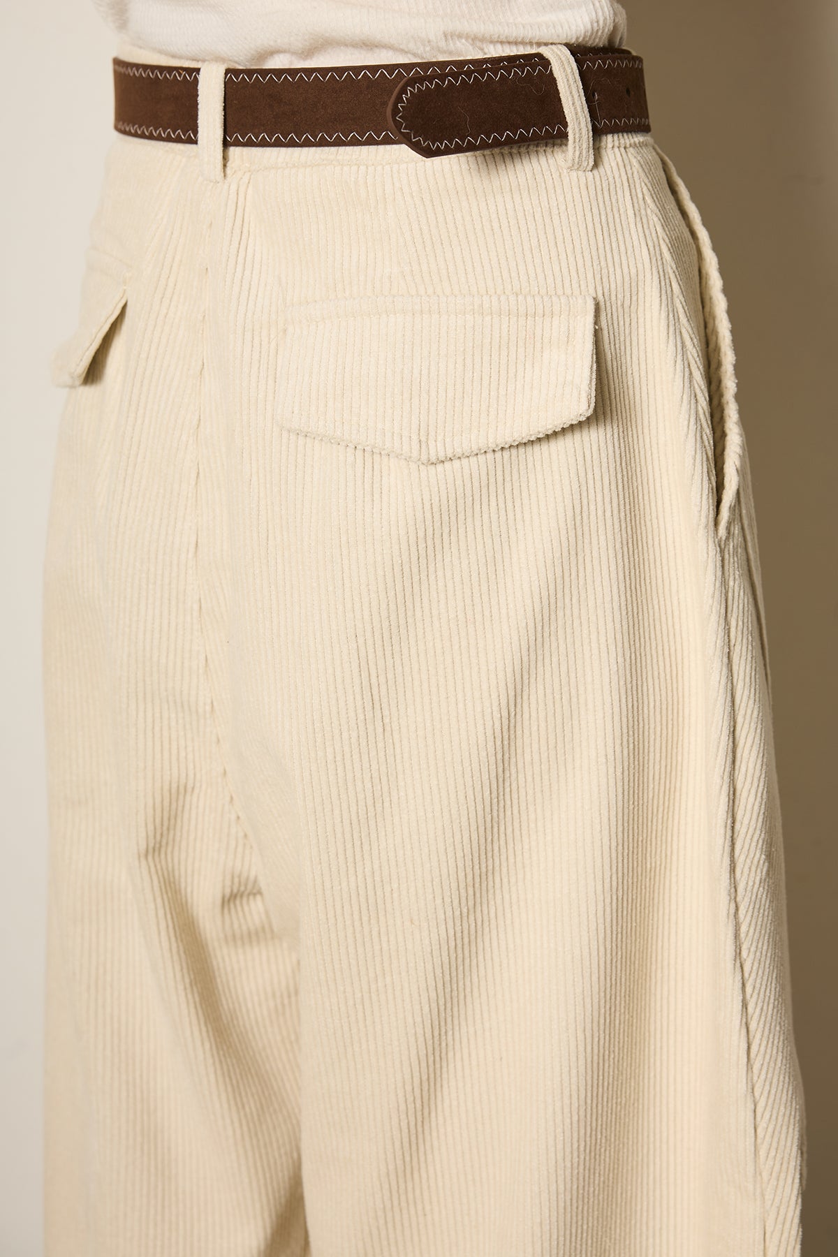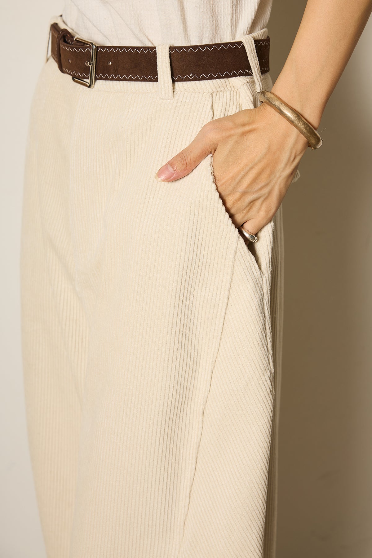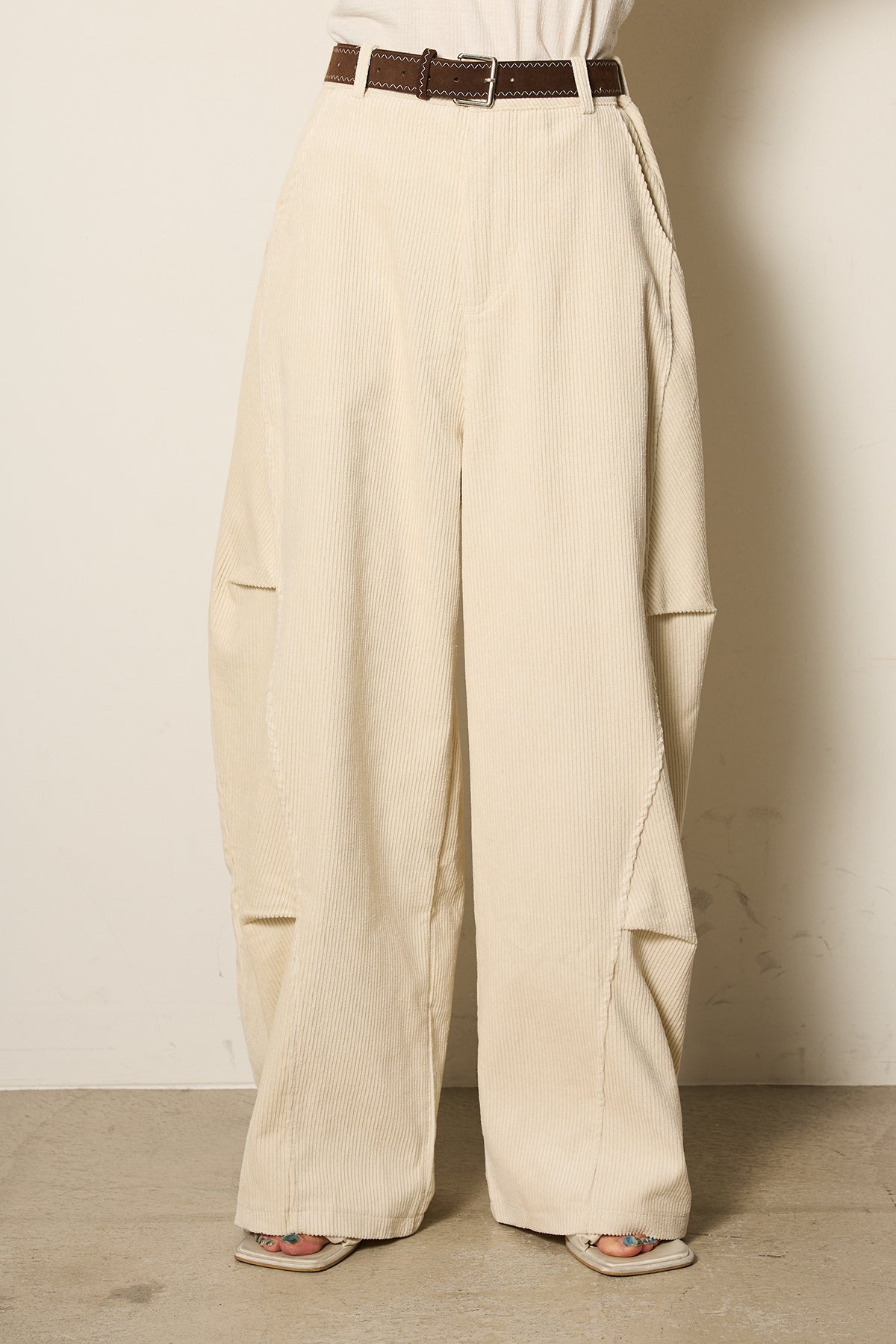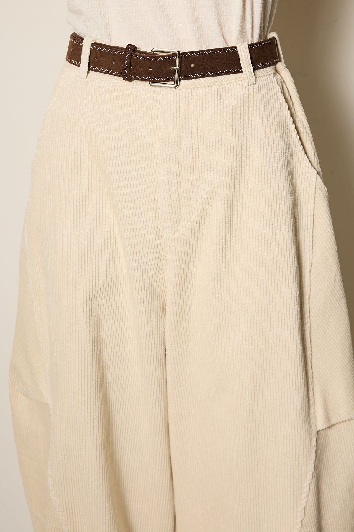 ◆ ステッチデザインベルト付きコーデュロイカーブパンツ