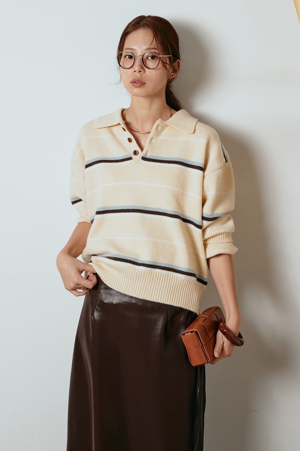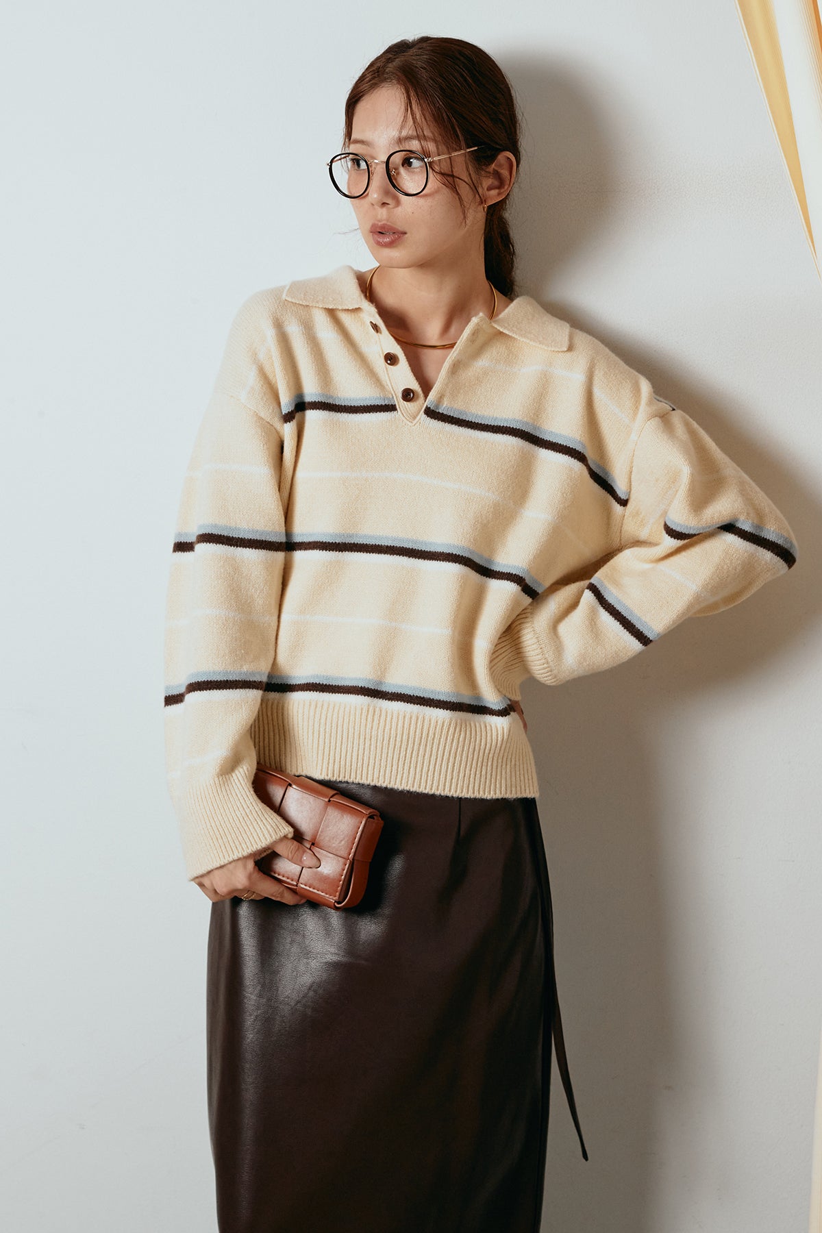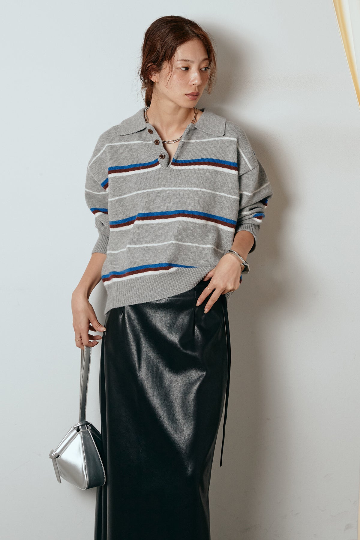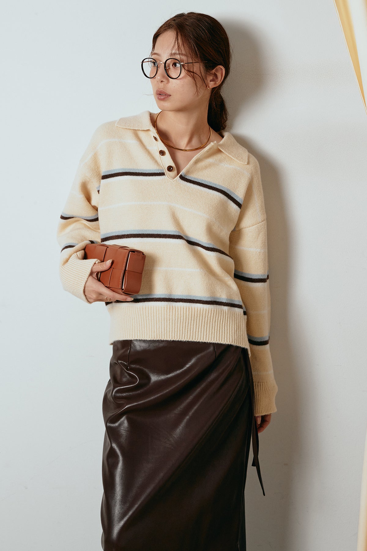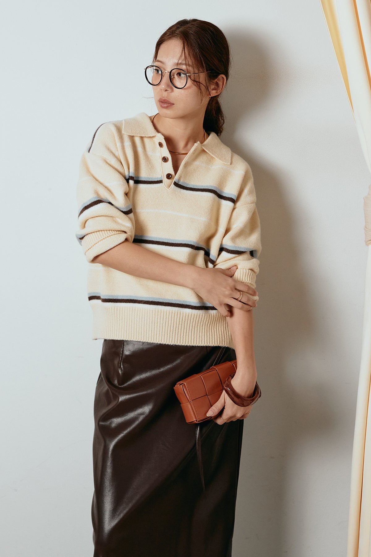 襟付きマルチボーダーニットポロトップスの他のセットページはこちら