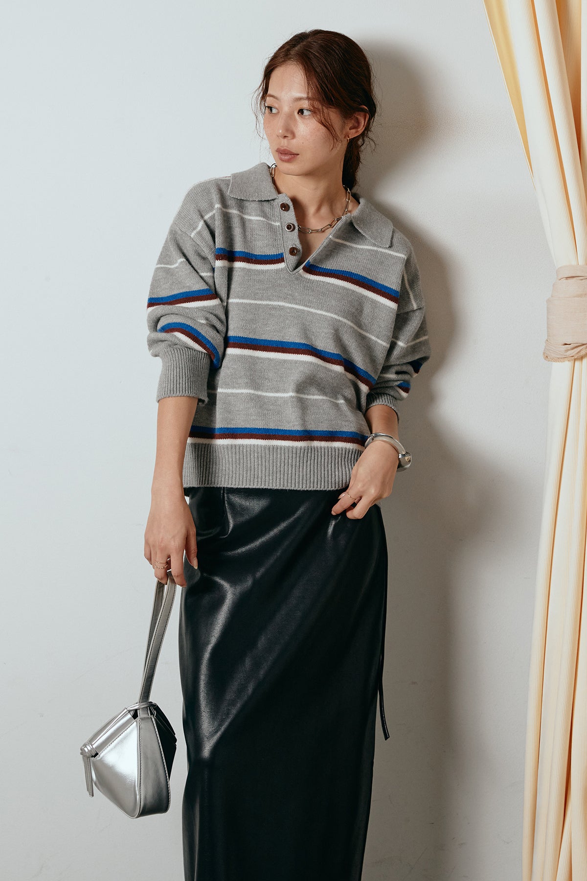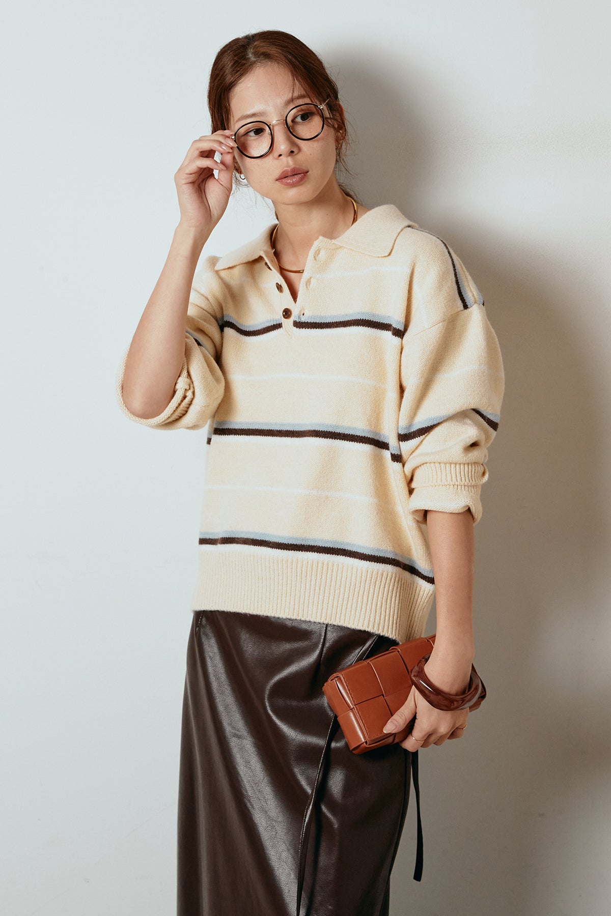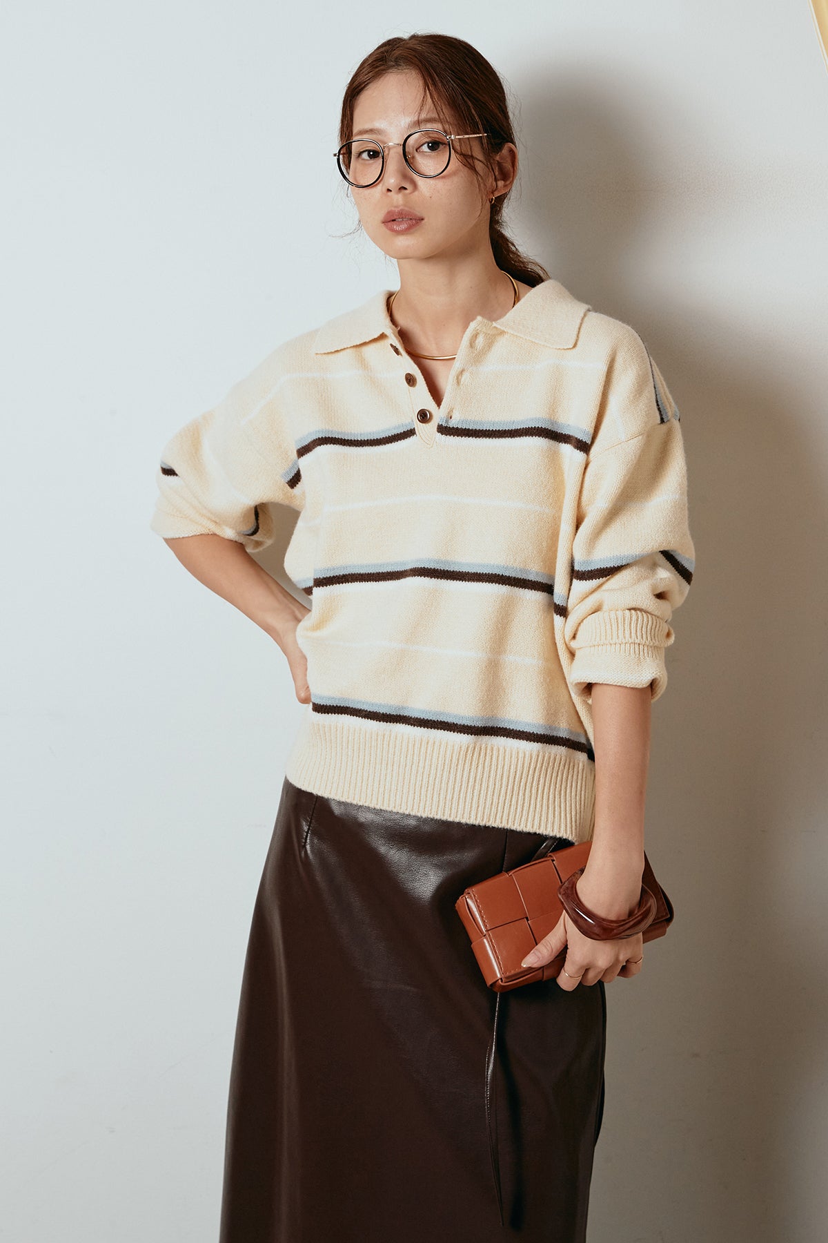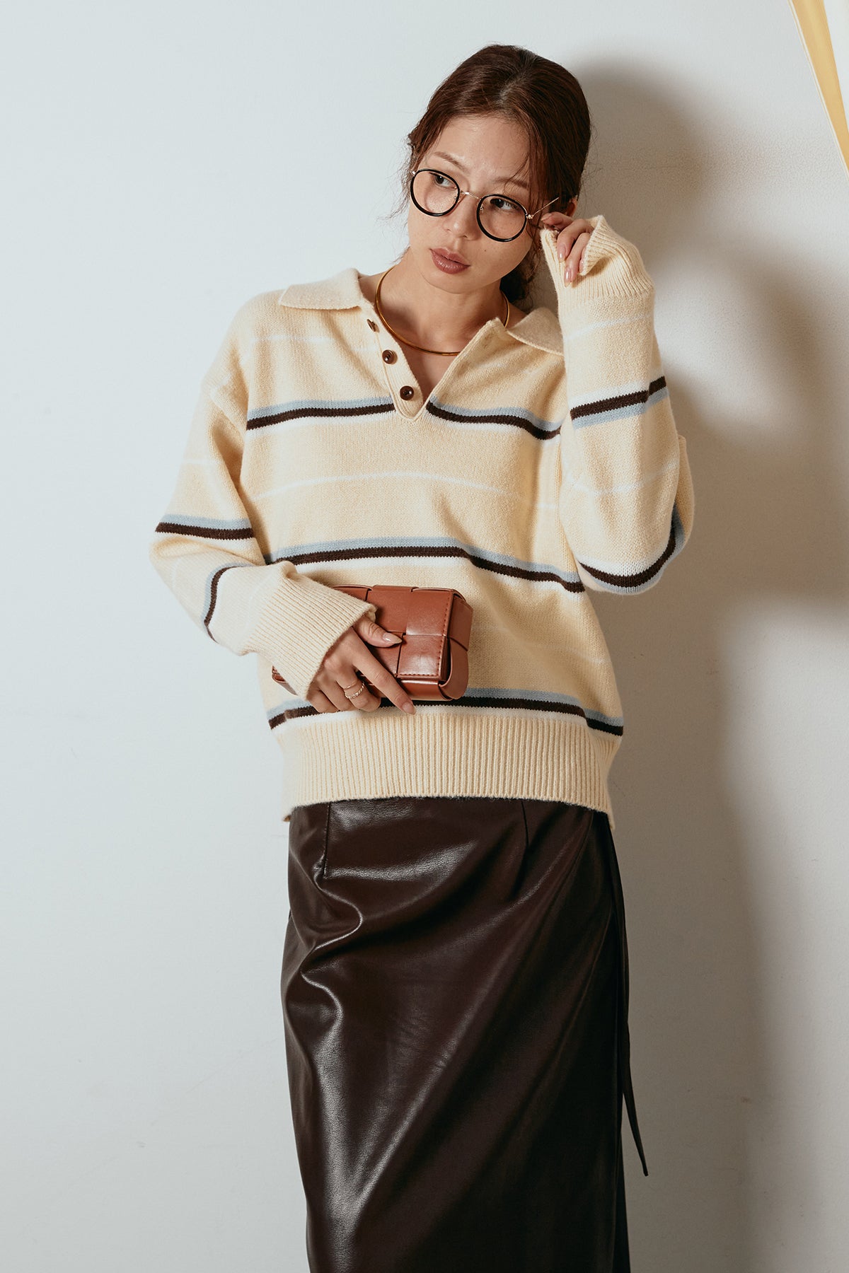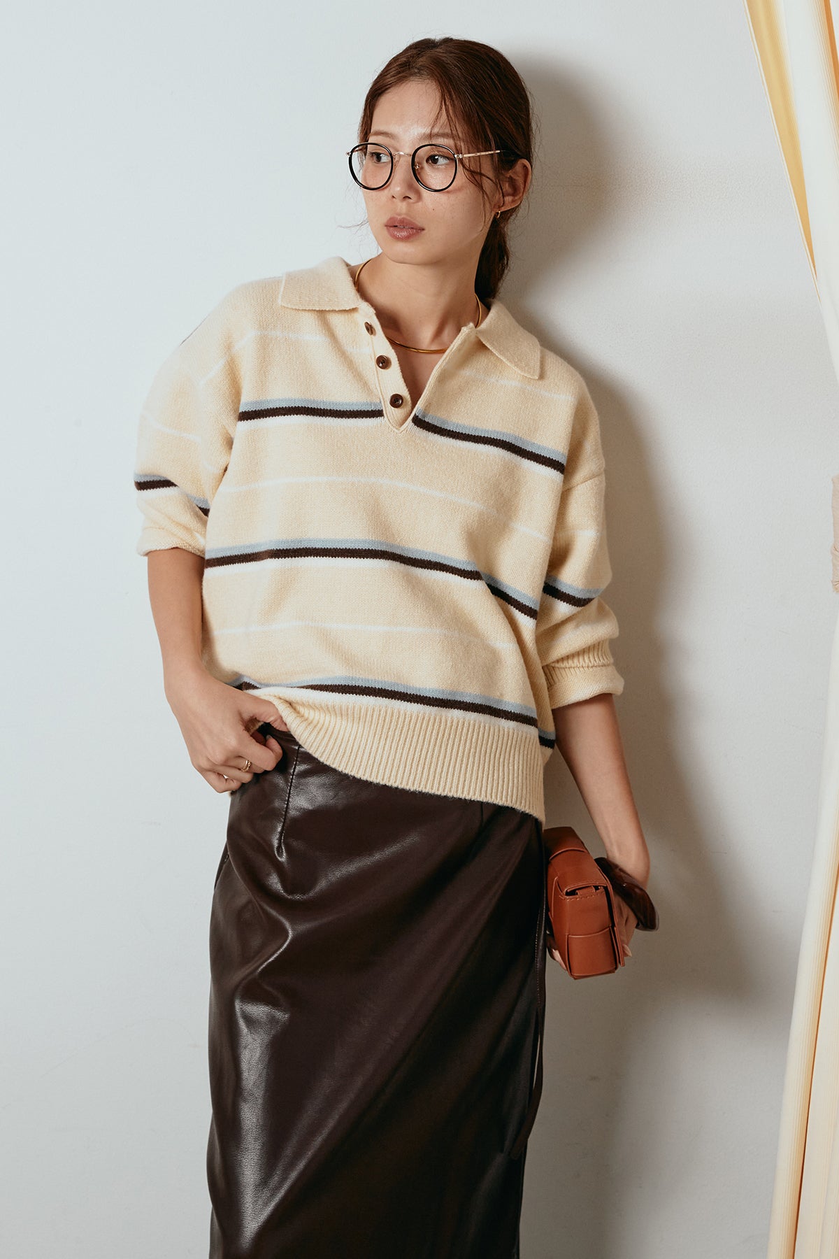 襟付きマルチボーダーニットポロトップスの他のセットページはこちら