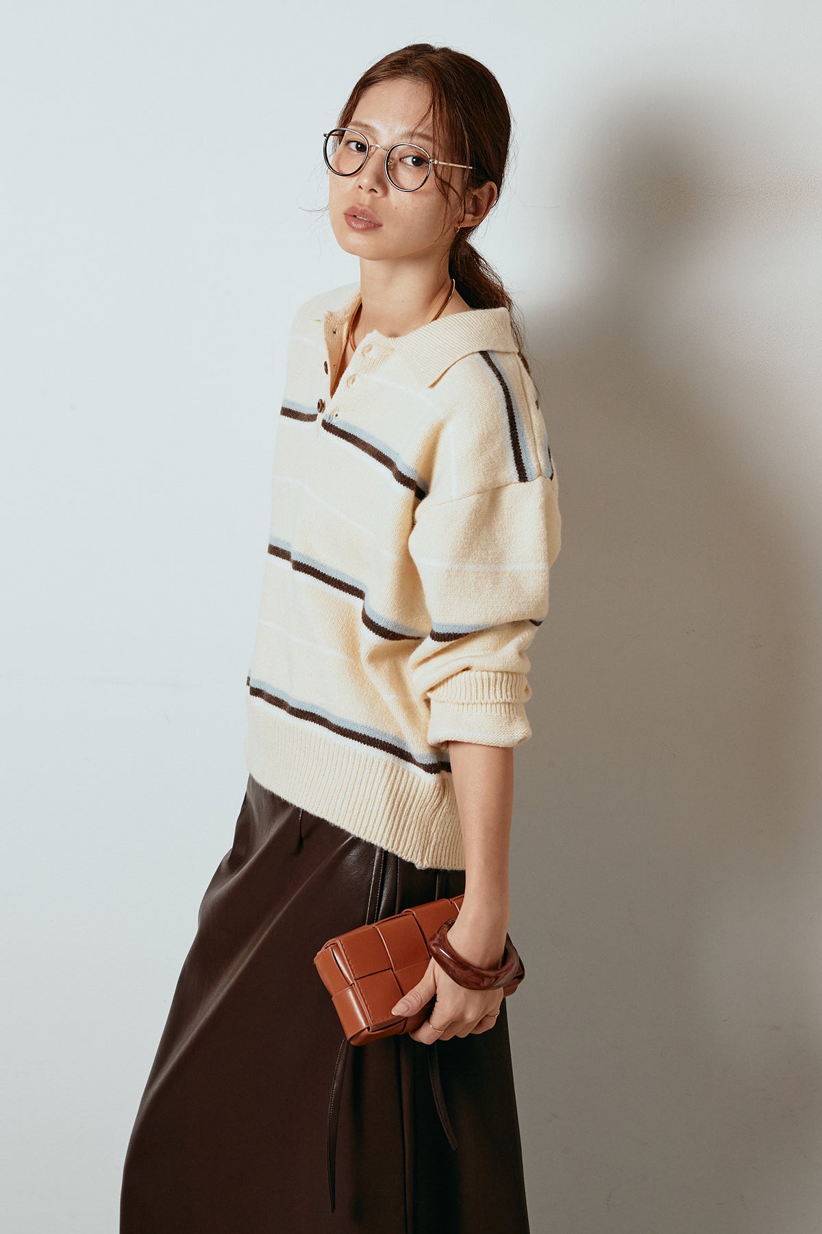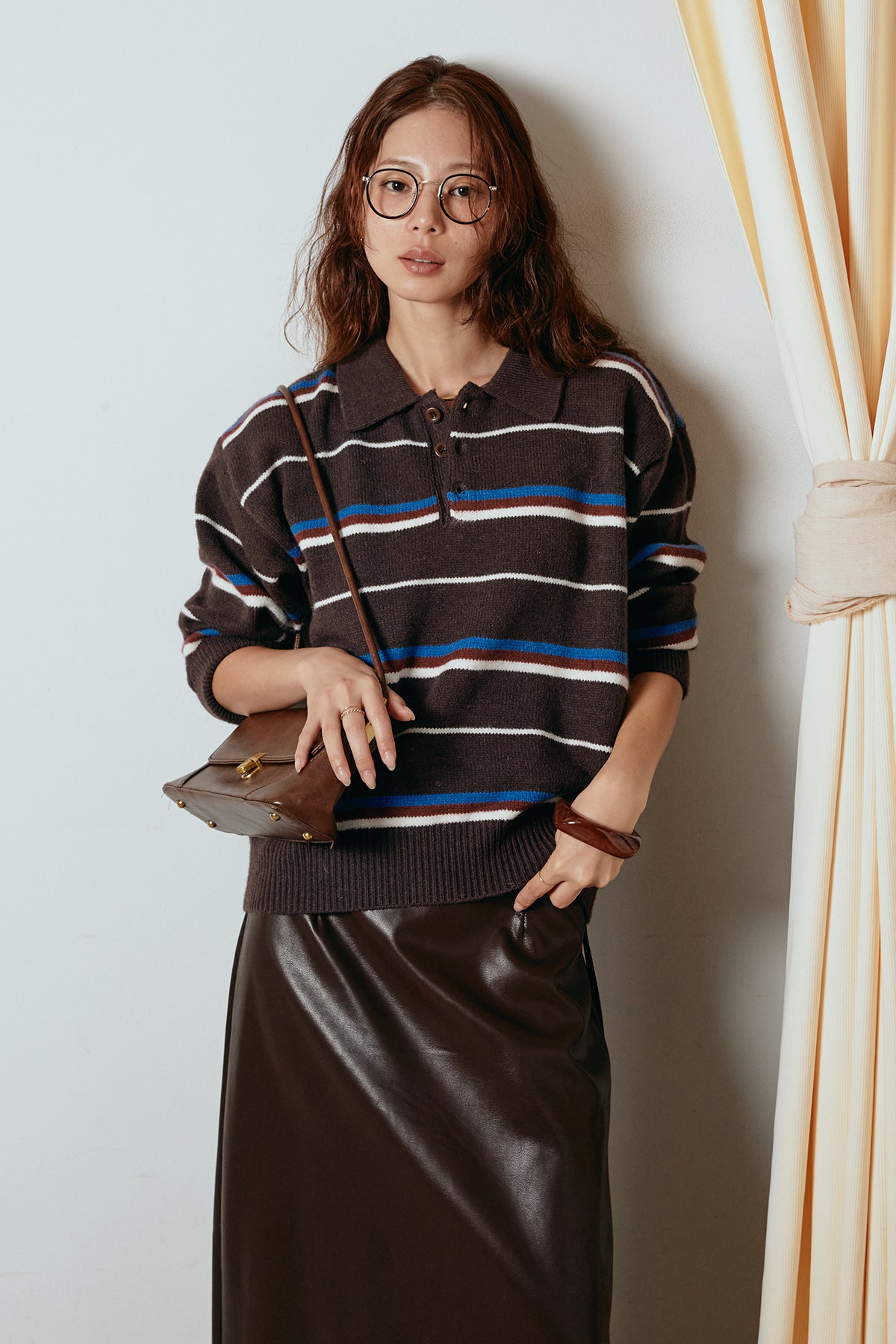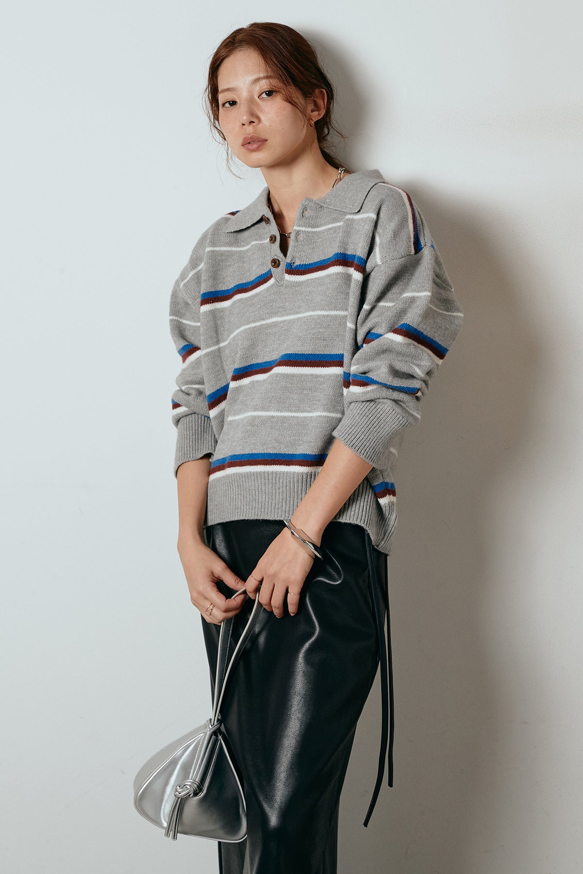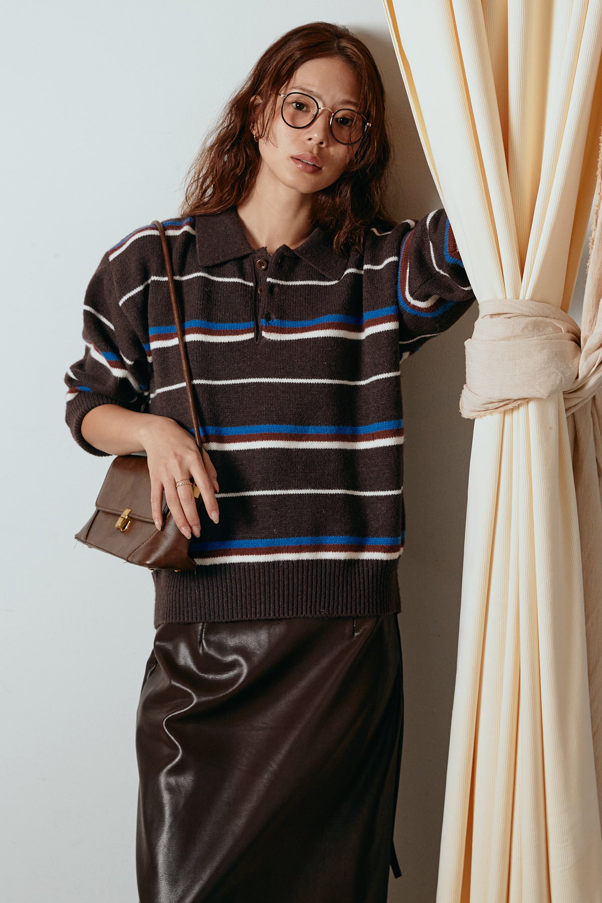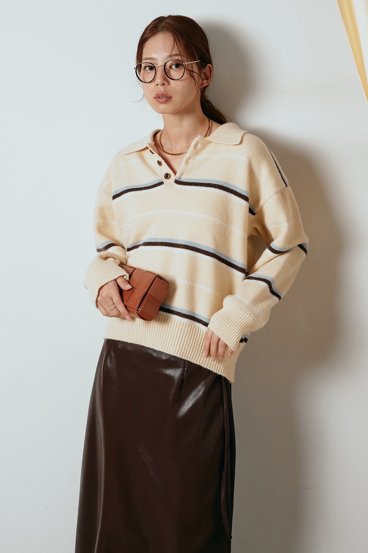 襟付きマルチボーダーニットポロトップスの他のセットページはこちら