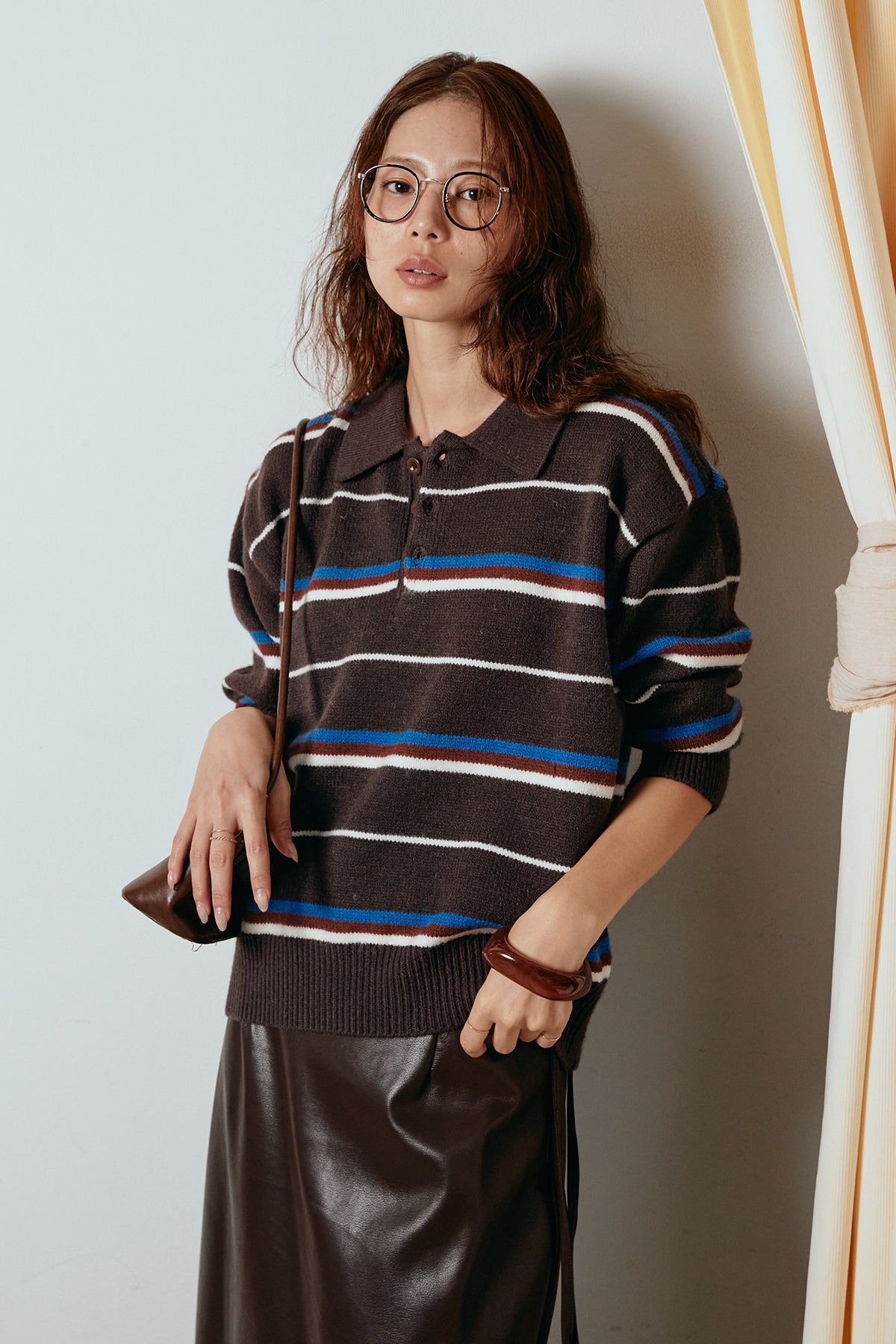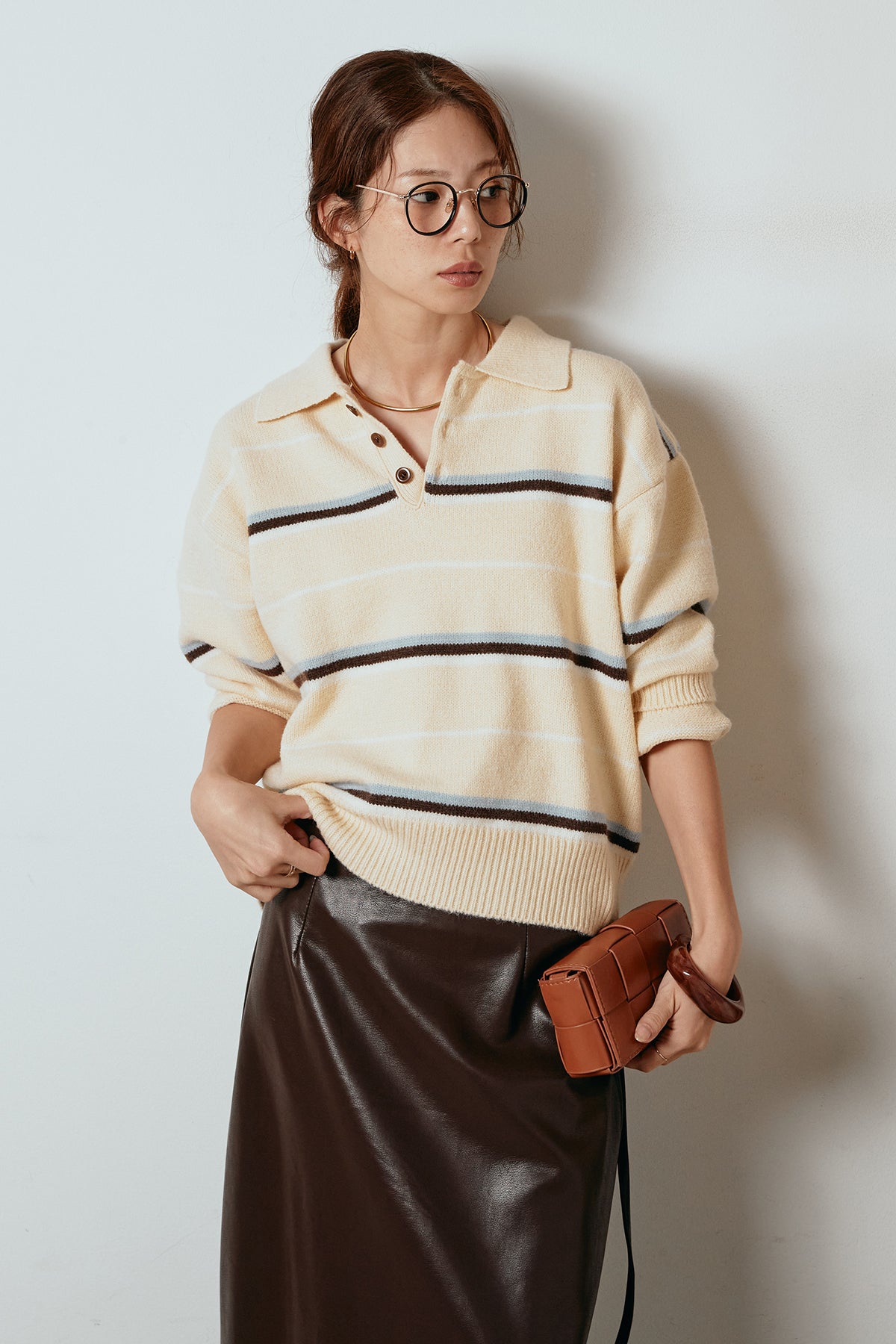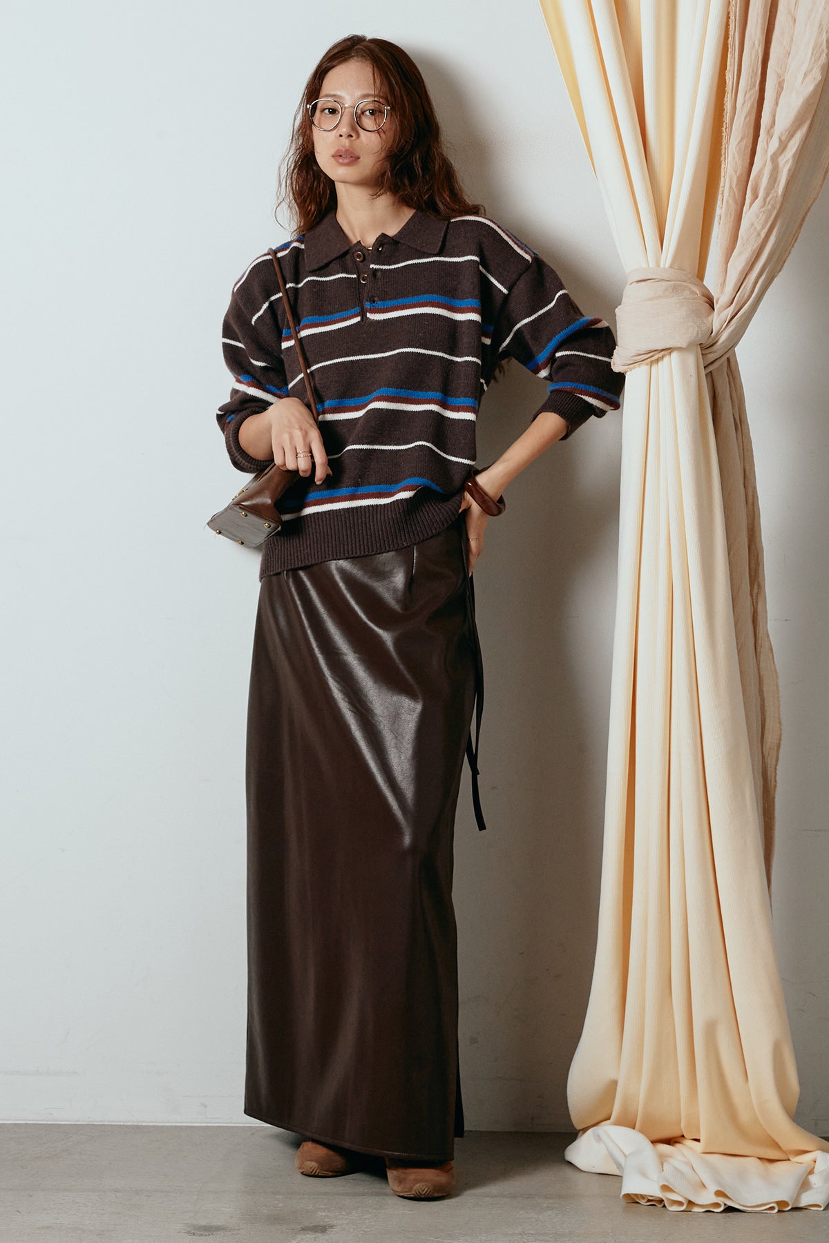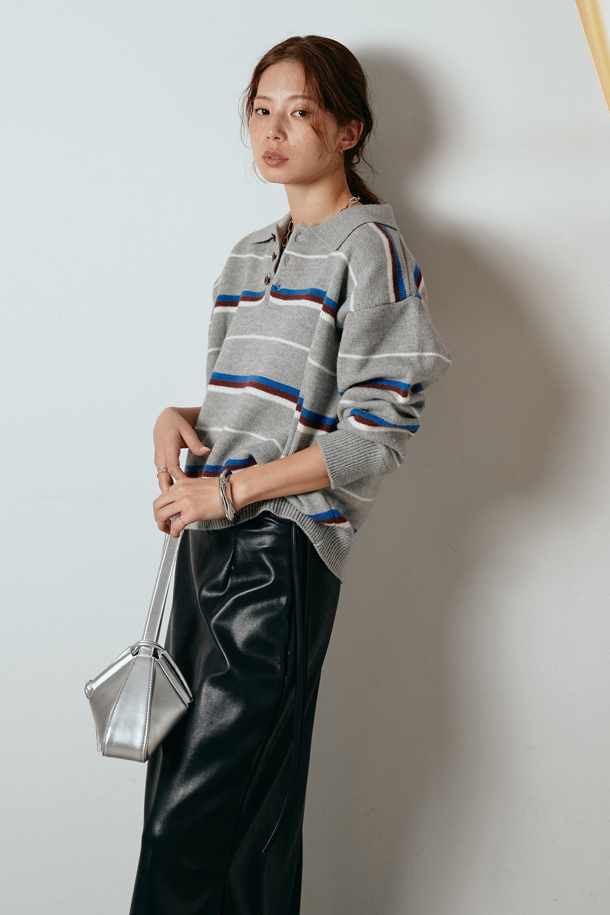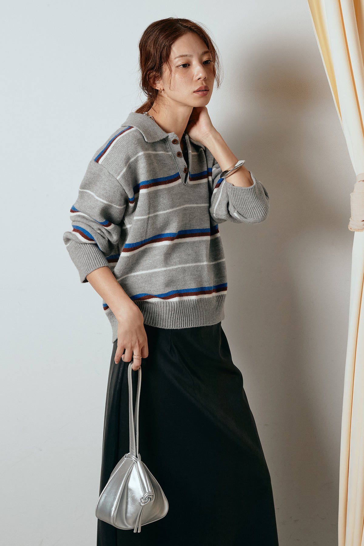 襟付きマルチボーダーニットポロトップスの他のセットページはこちら