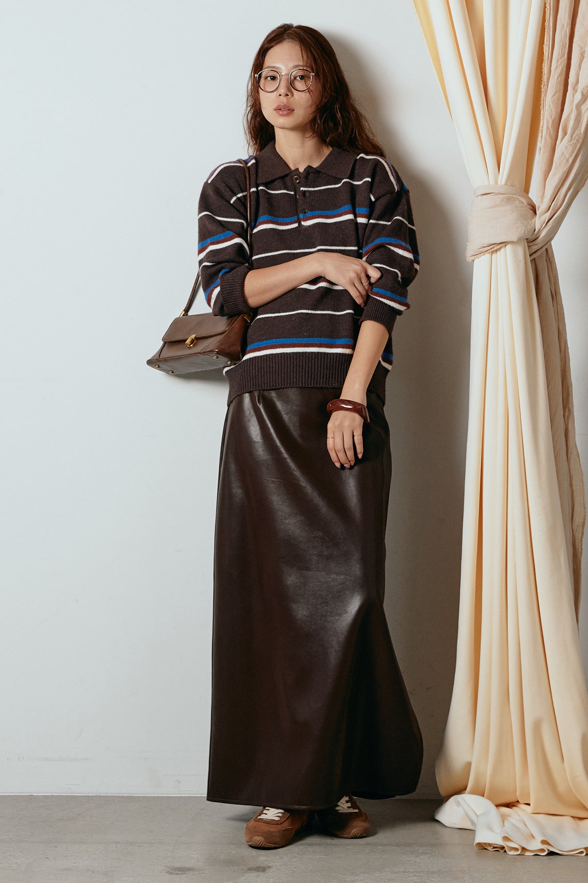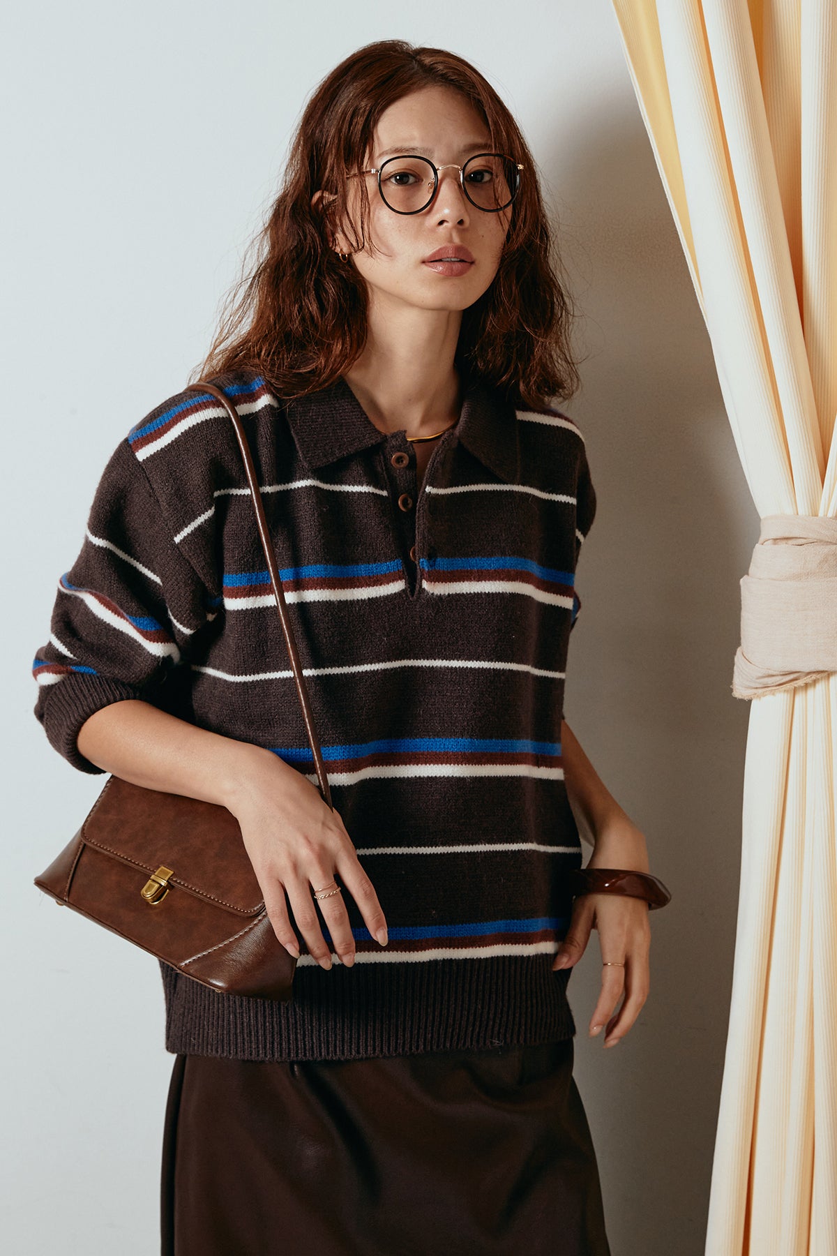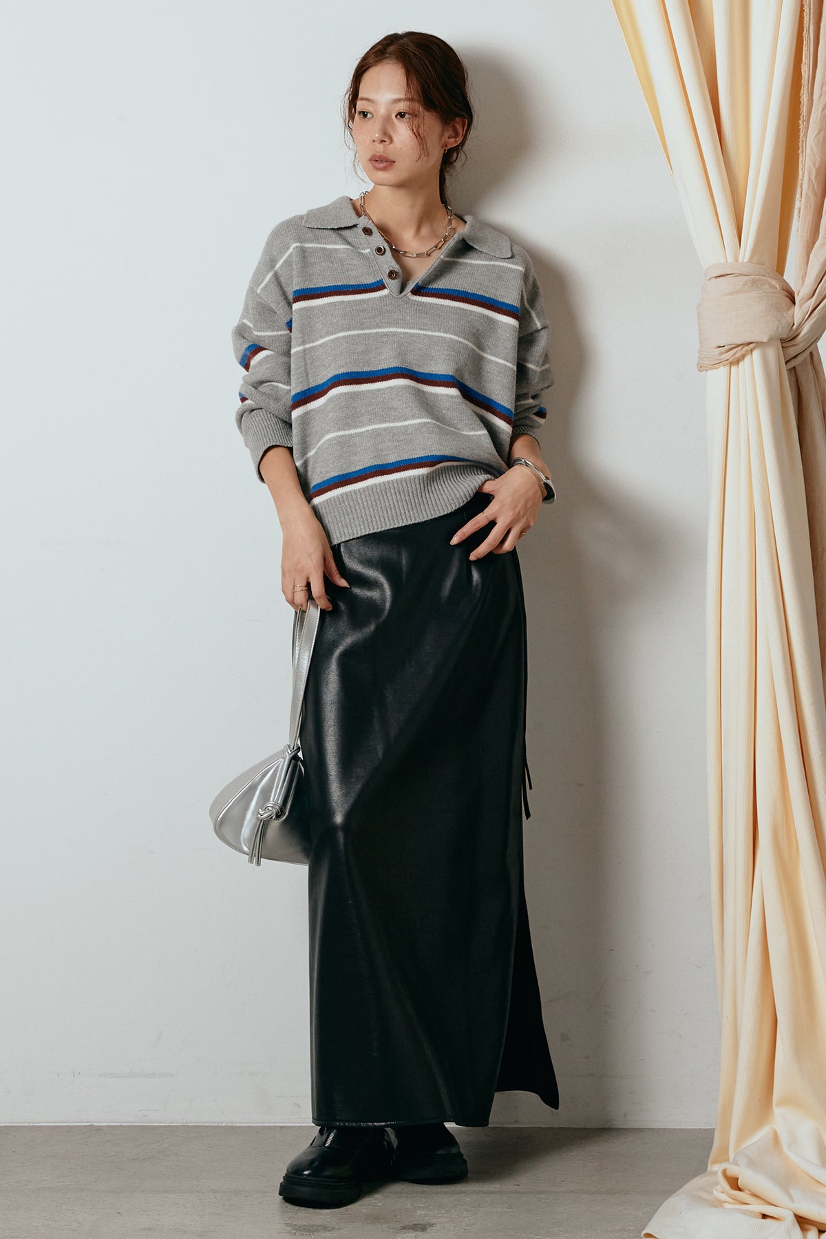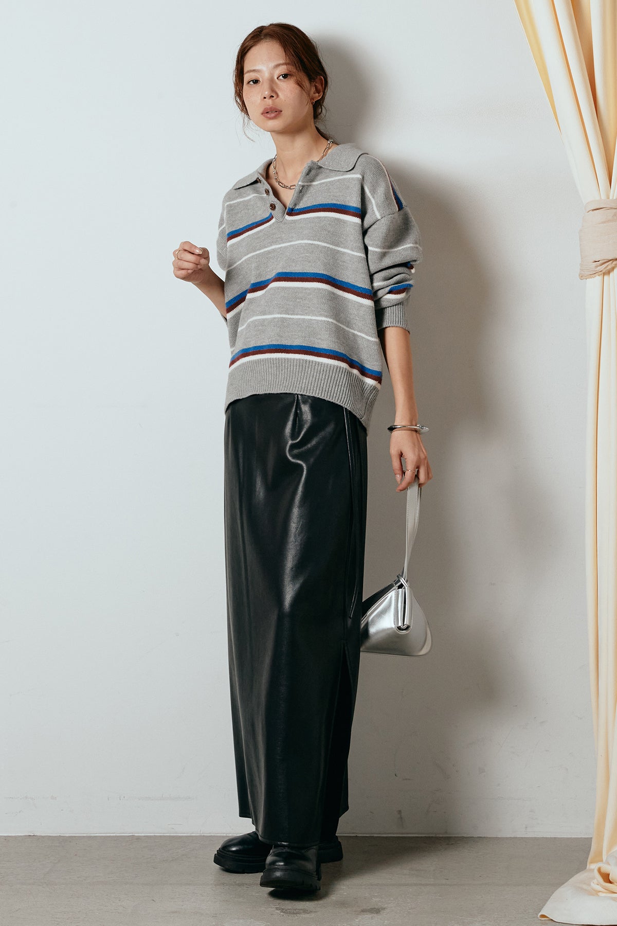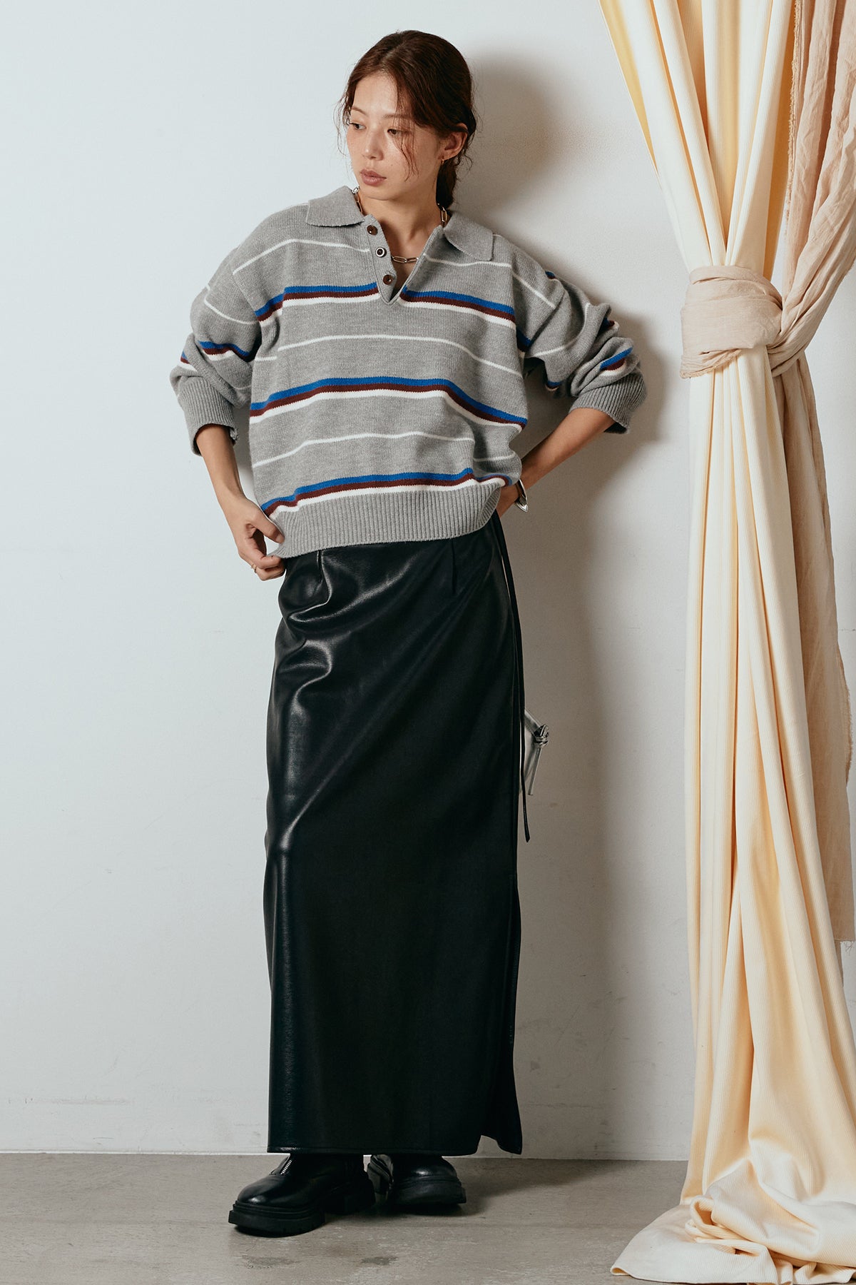襟付きマルチボーダーニットポロトップスの他のセットページはこちら