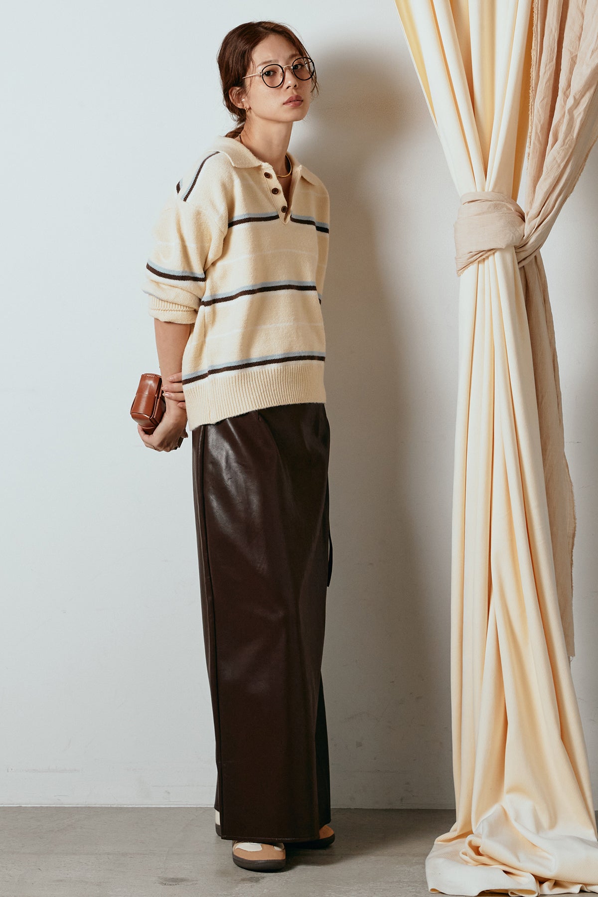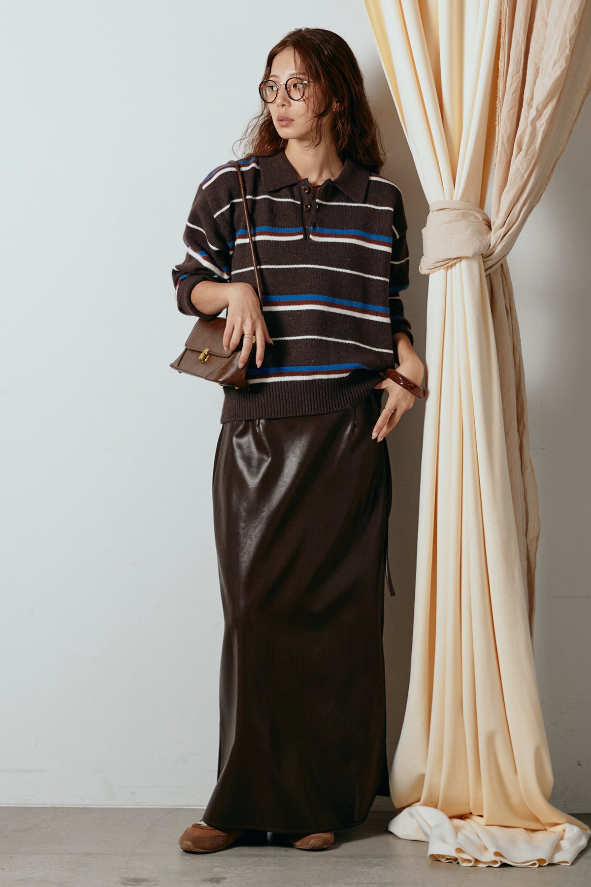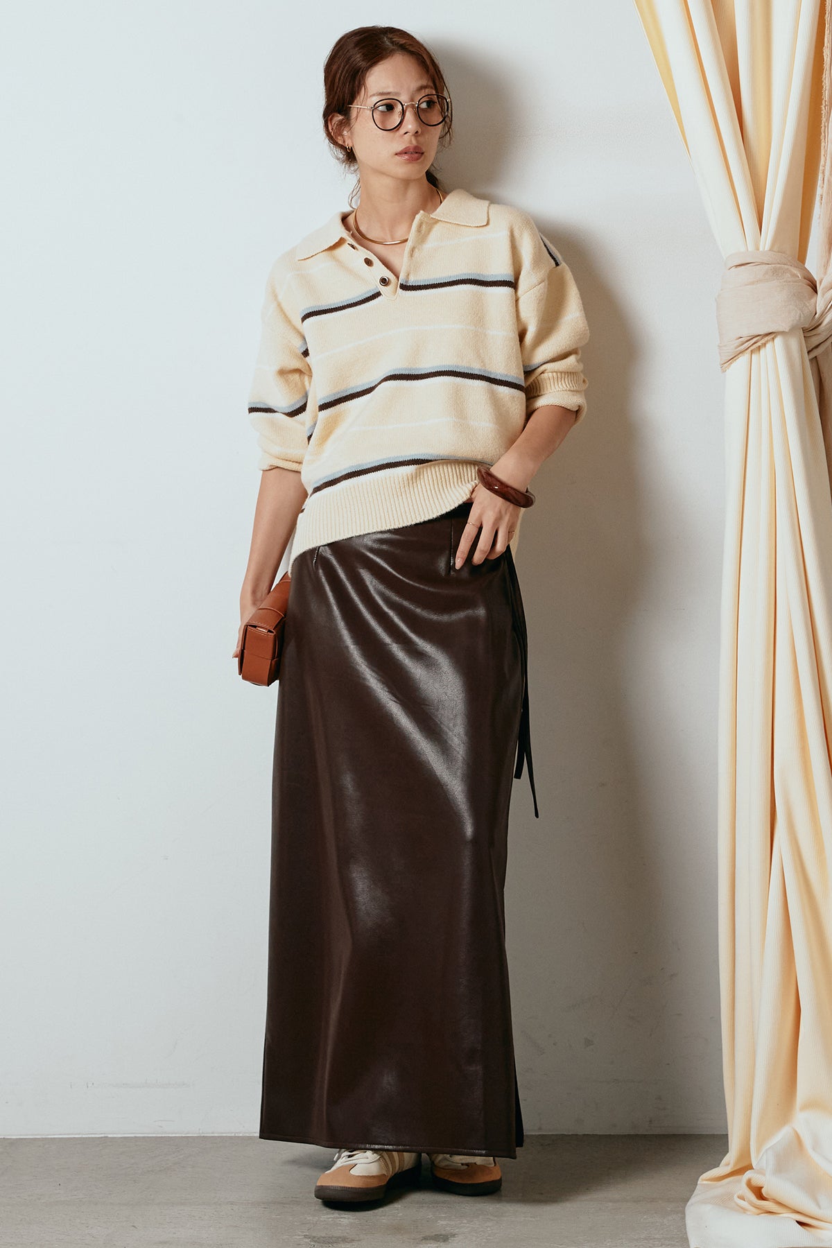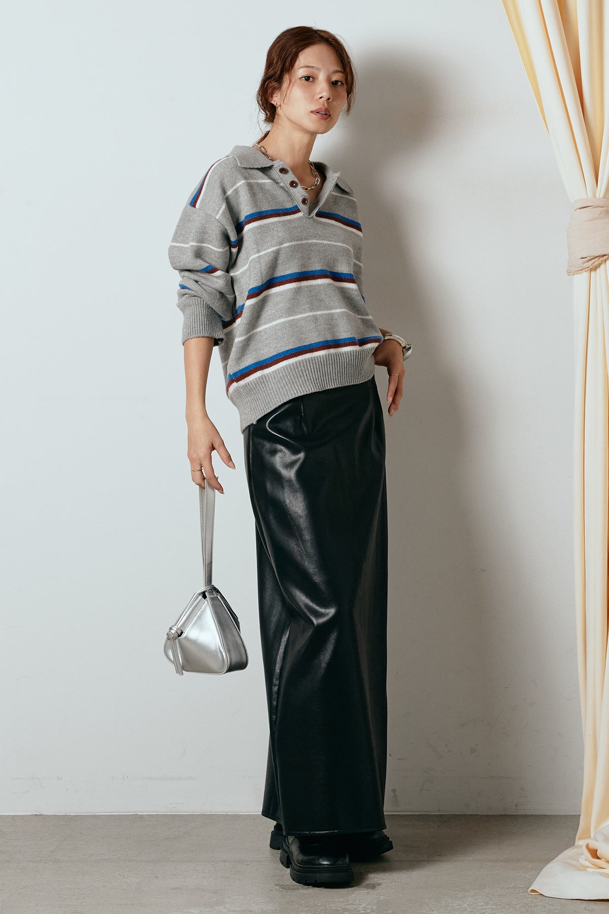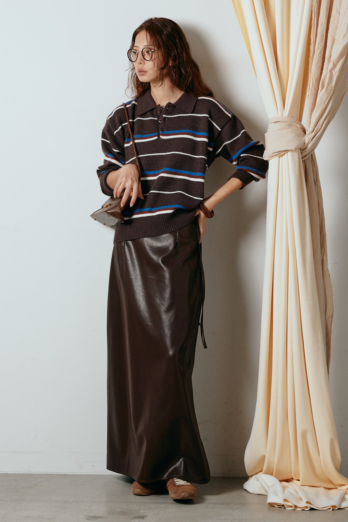 襟付きマルチボーダーニットポロトップスの他のセットページはこちら