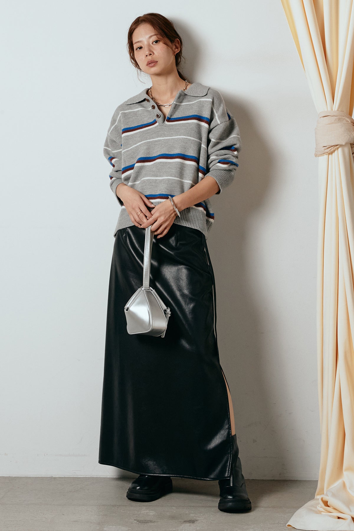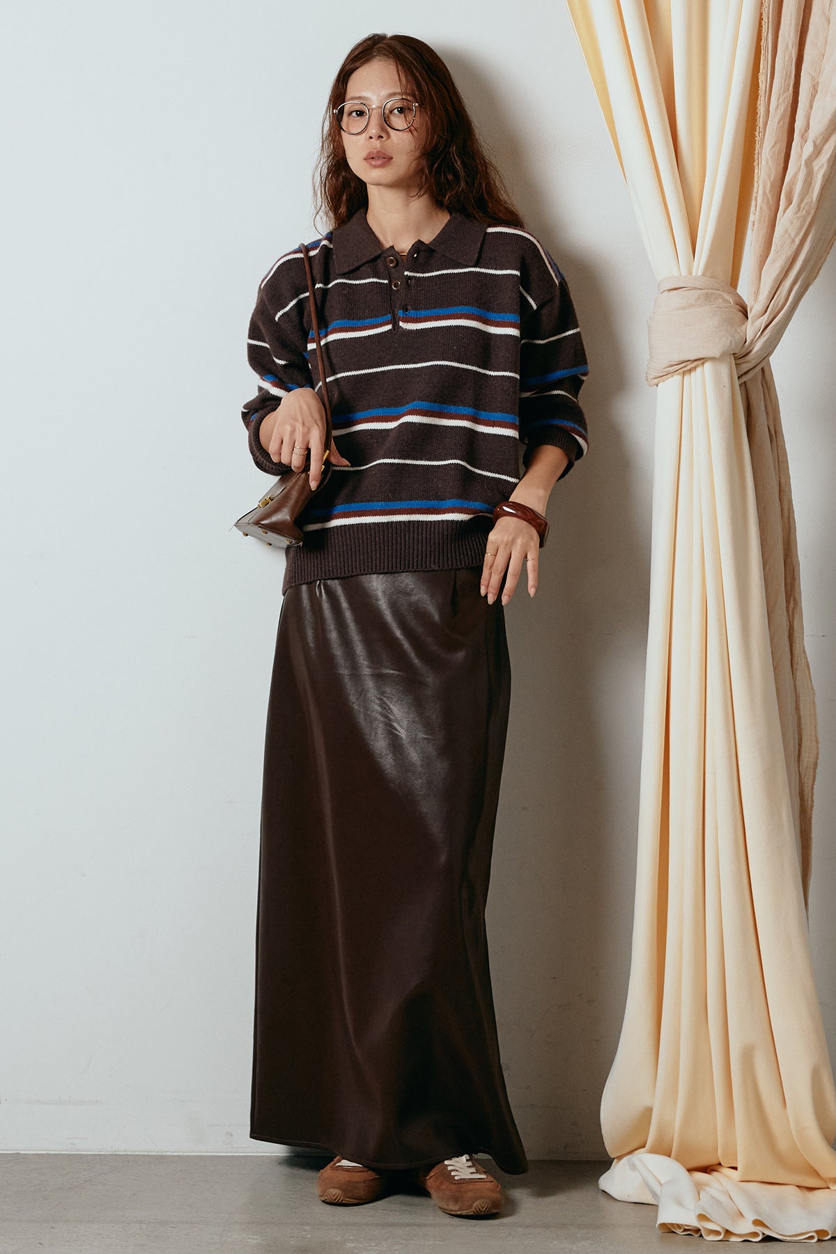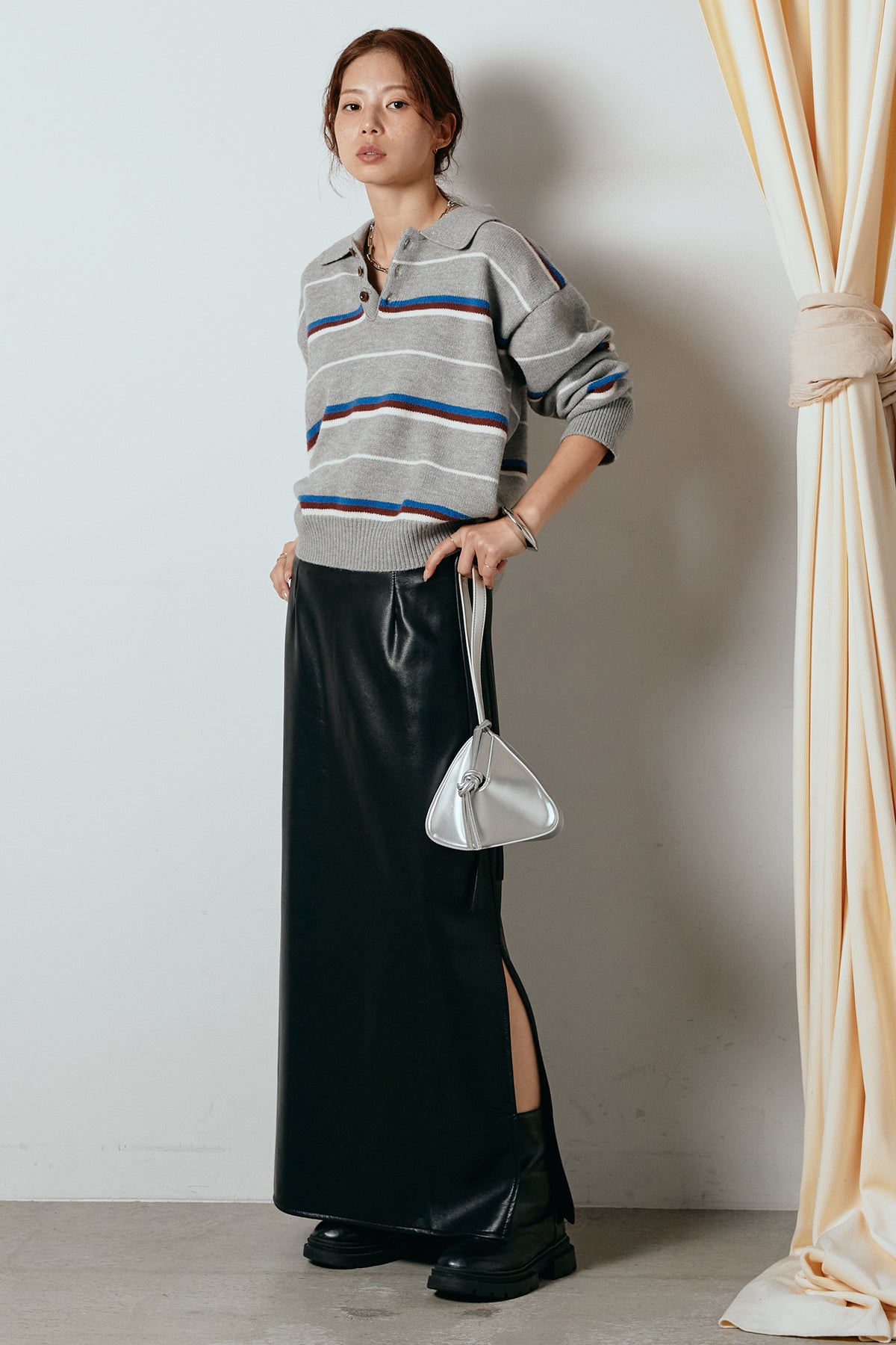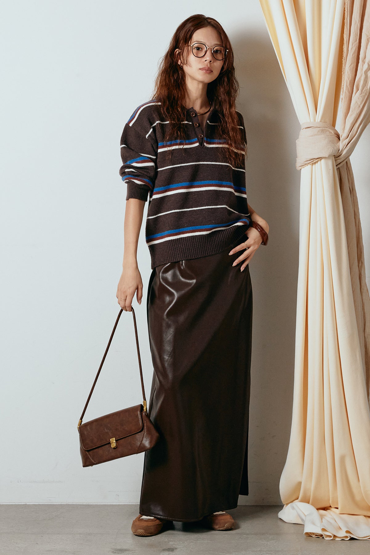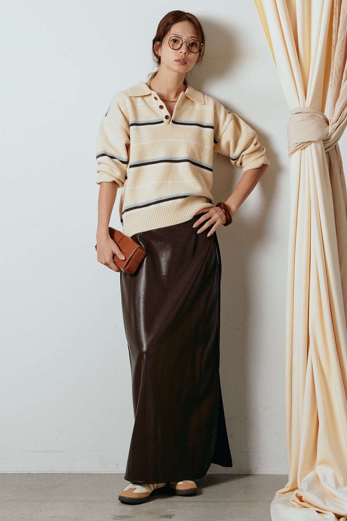 襟付きマルチボーダーニットポロトップスの他のセットページはこちら