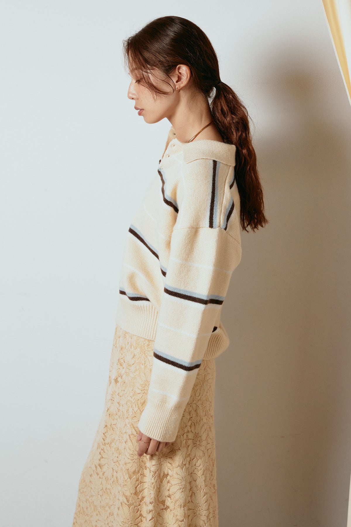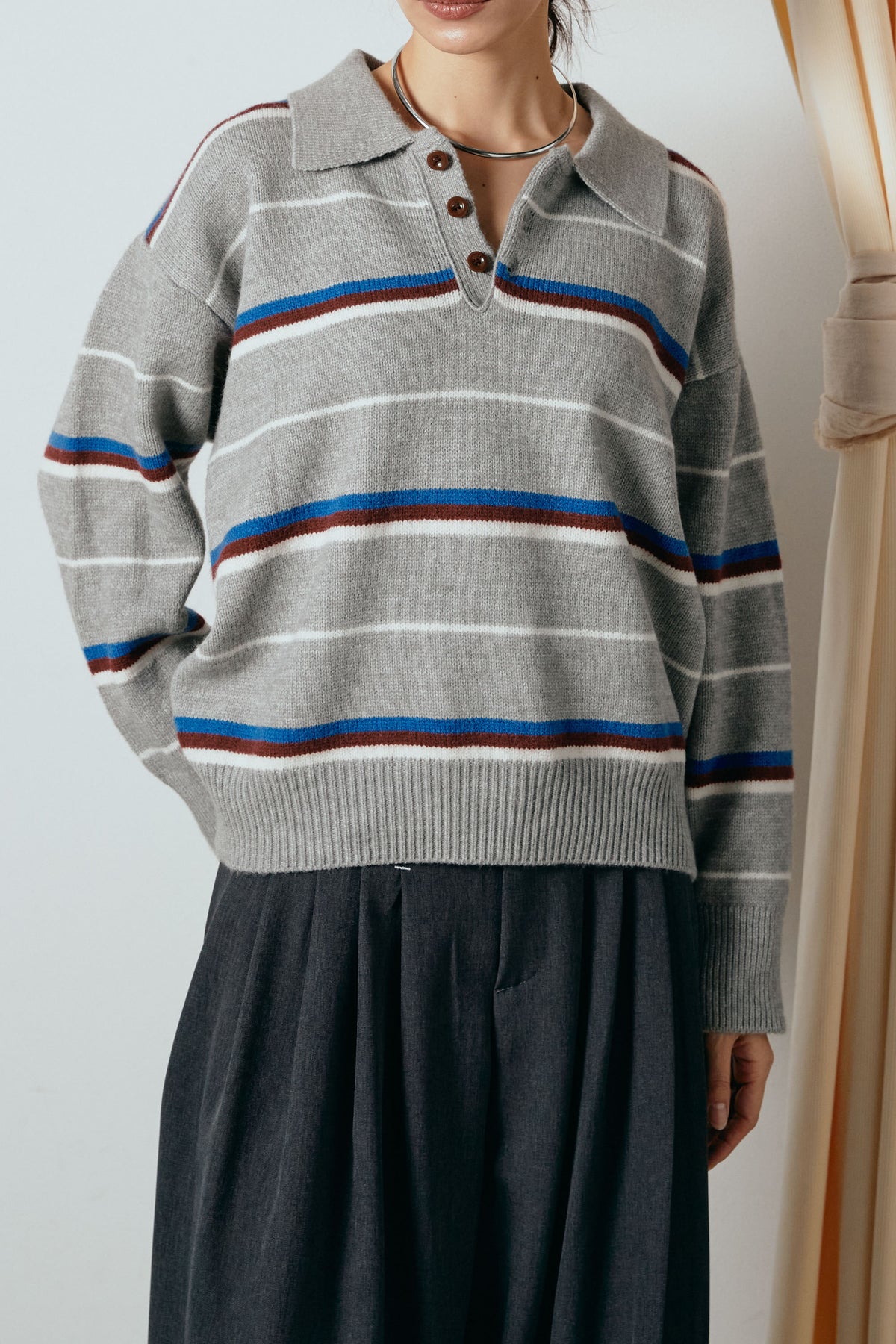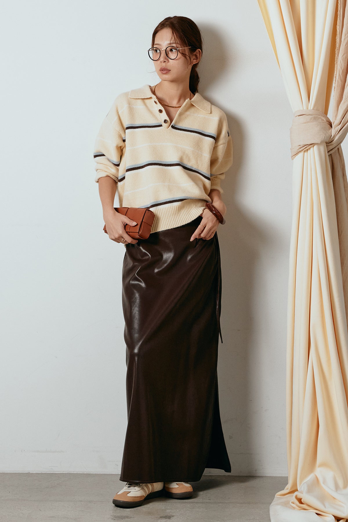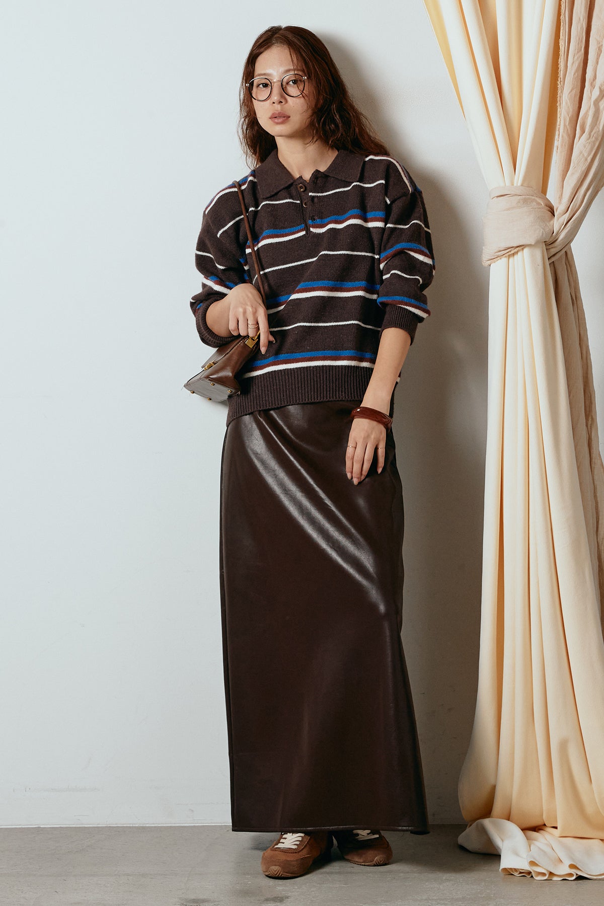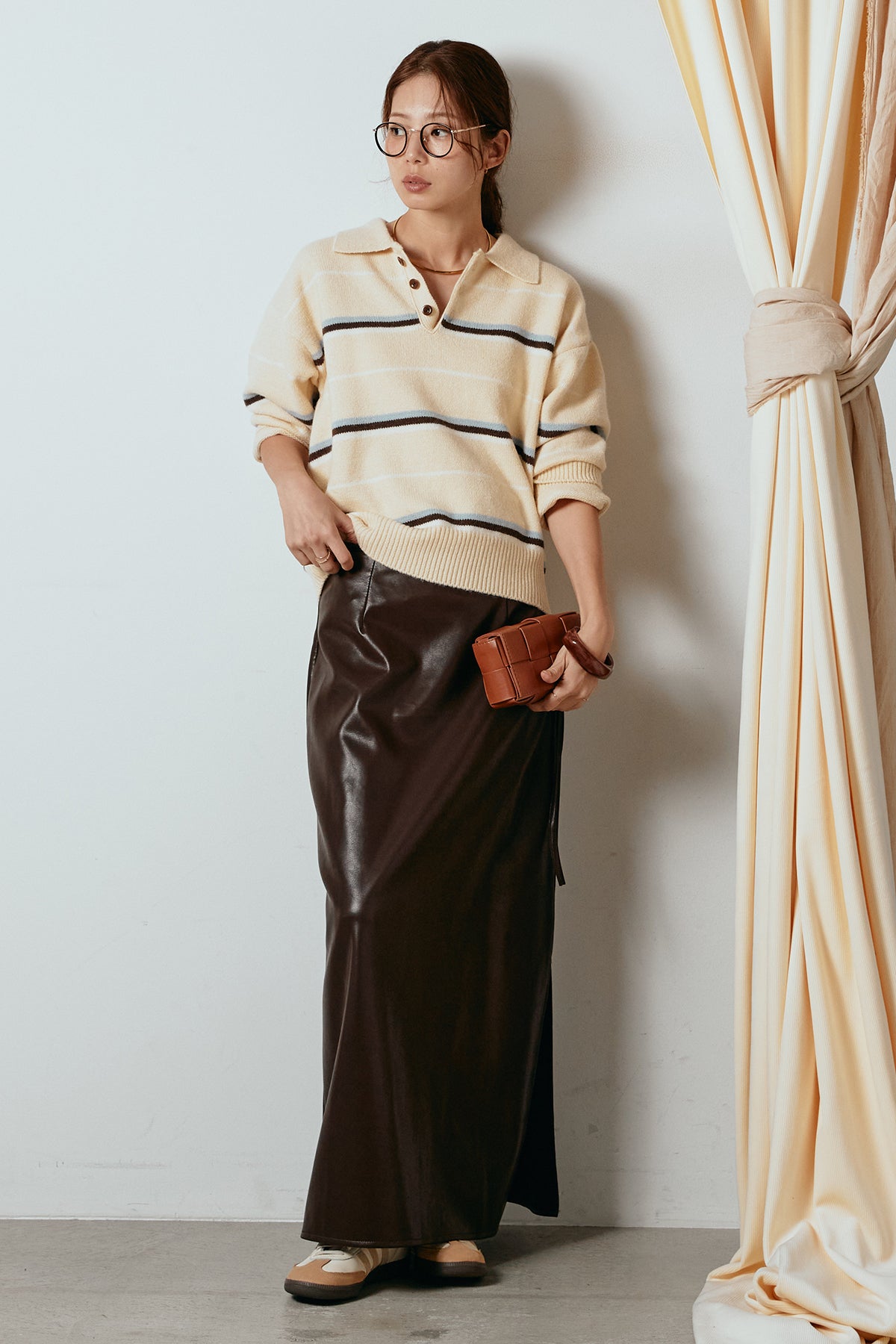 襟付きマルチボーダーニットポロトップスの他のセットページはこちら