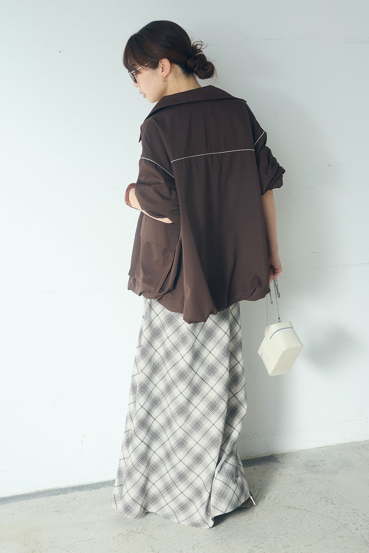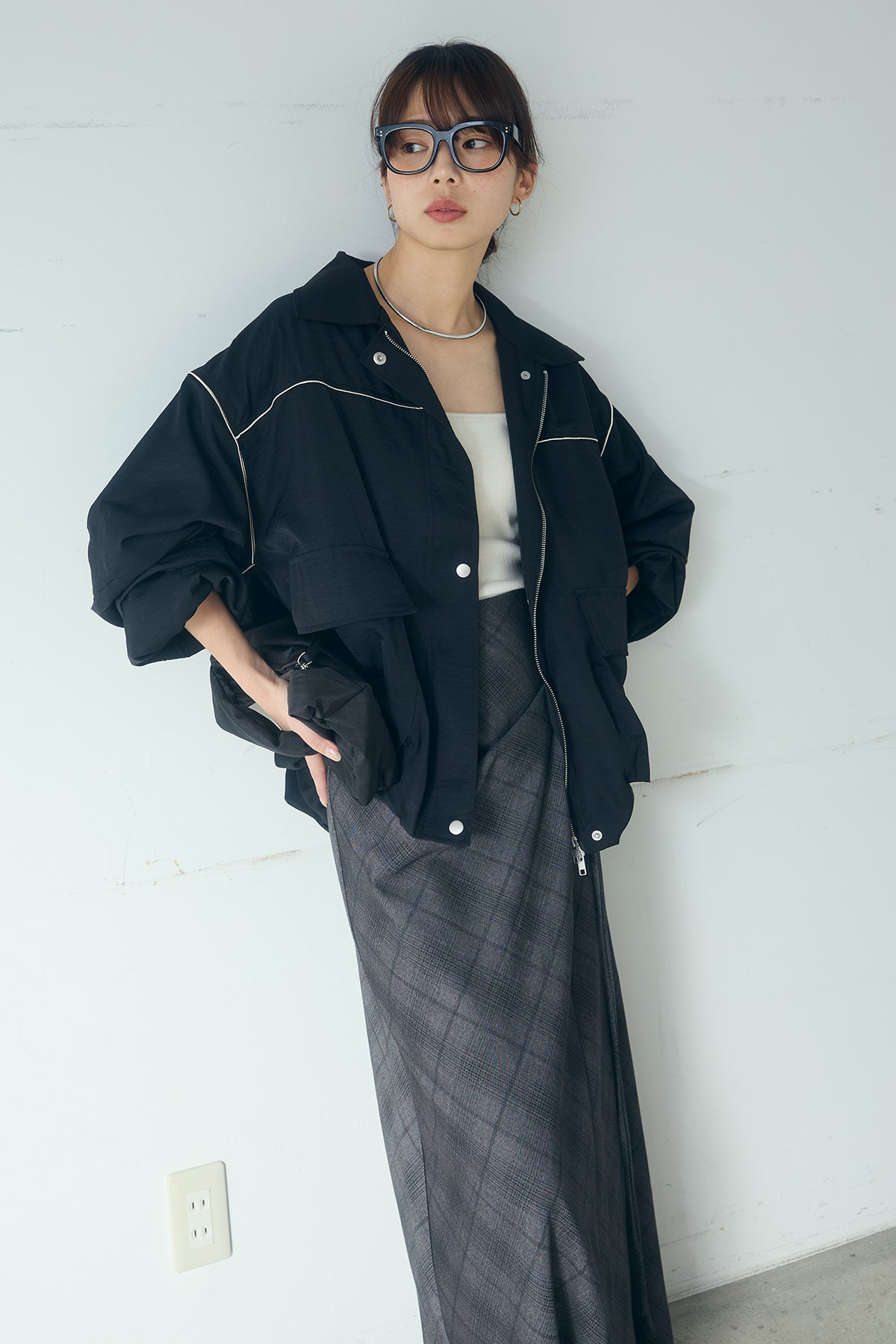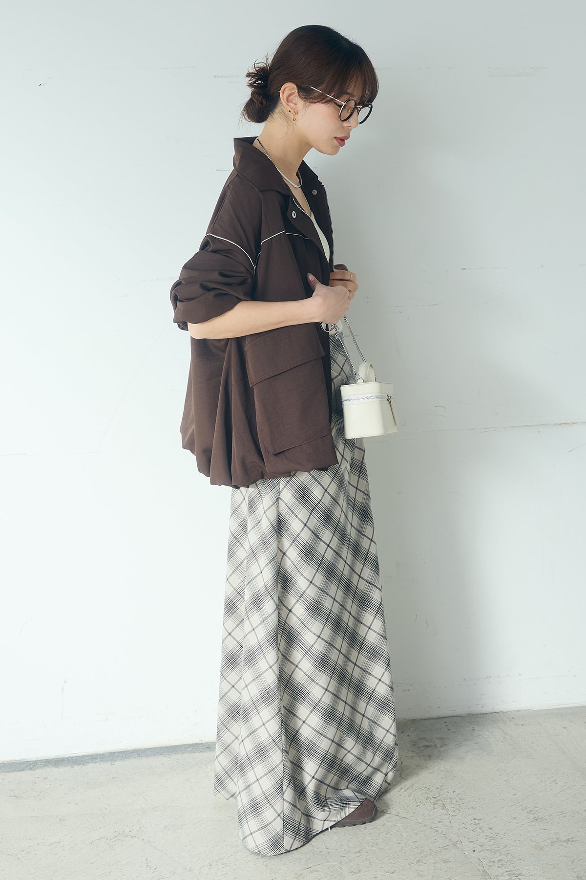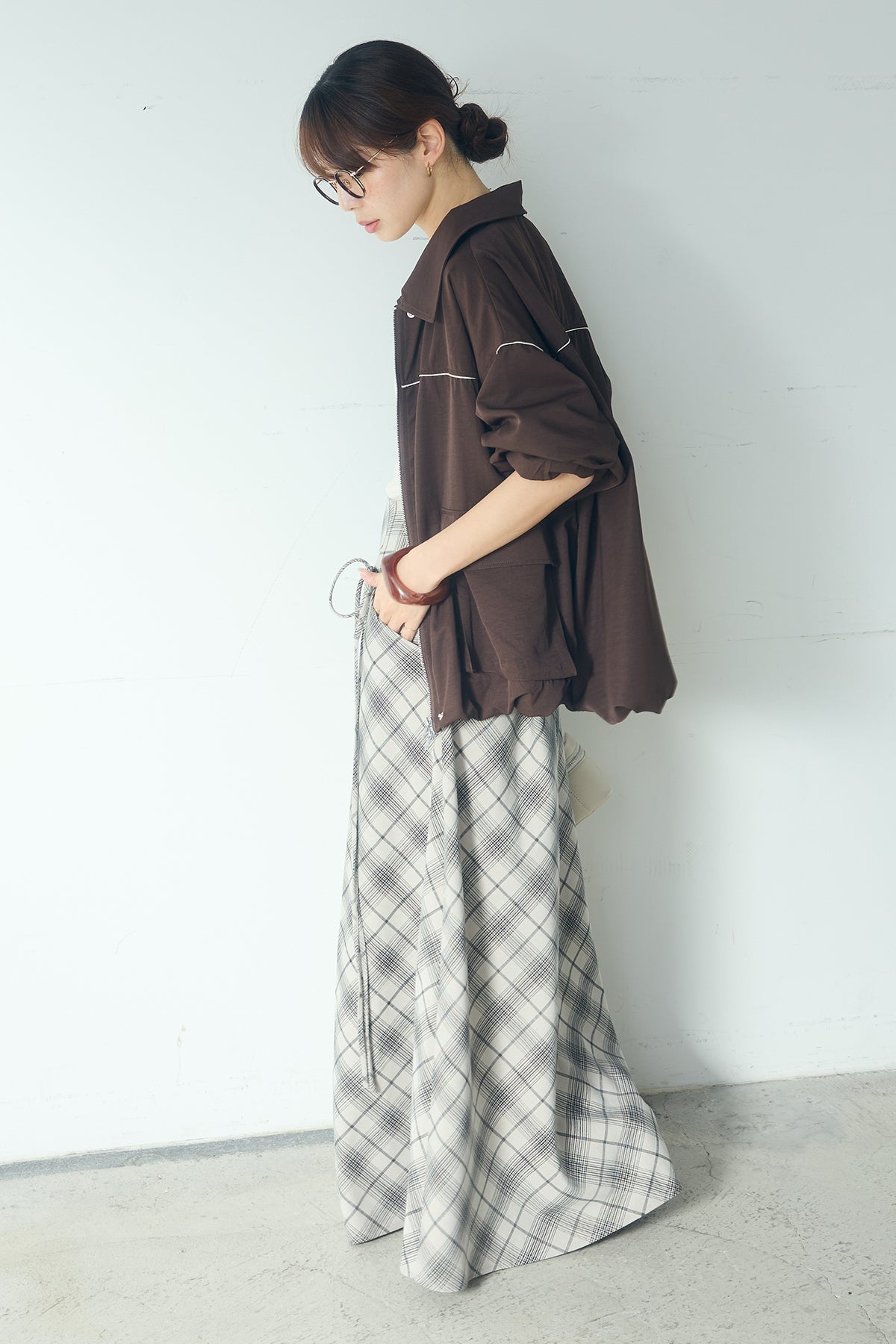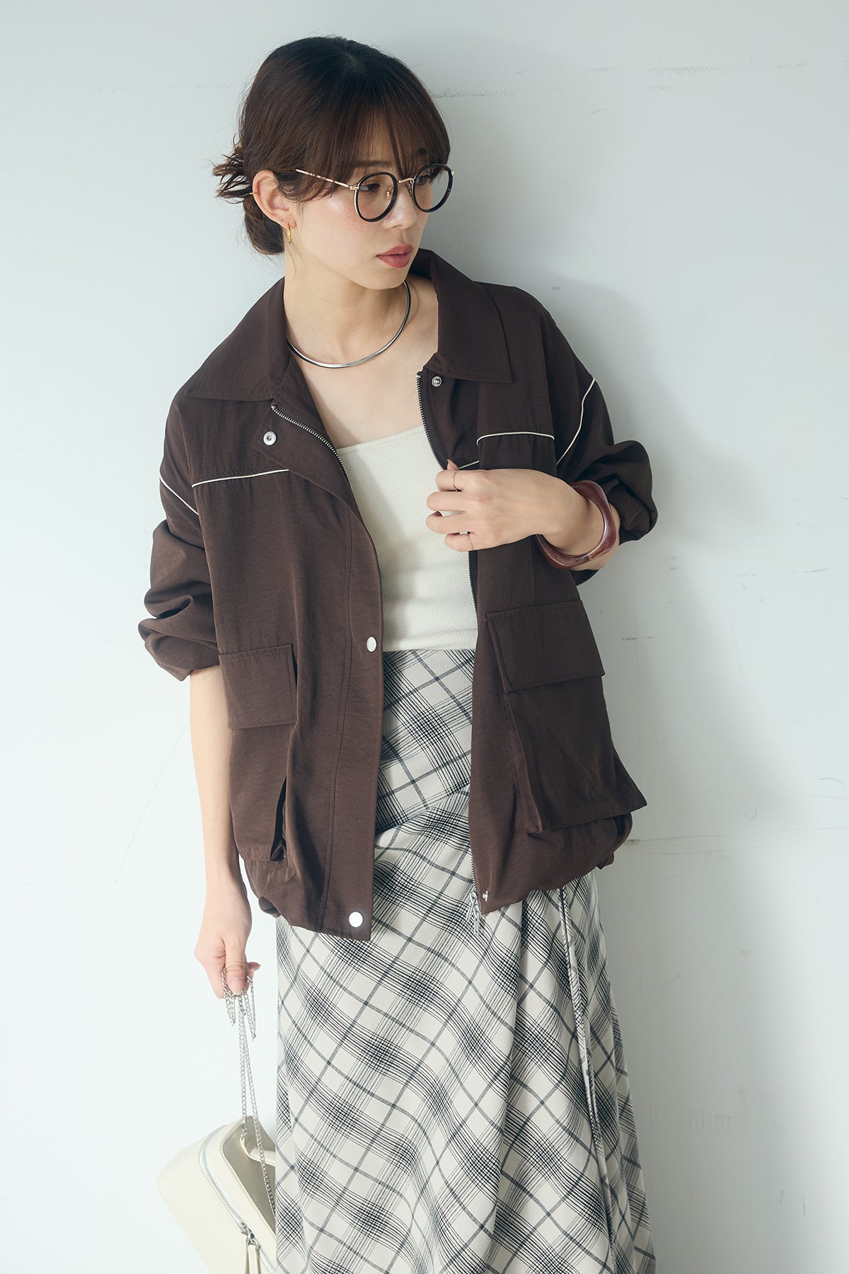[SET]合繊ツイルバルーンジャケット+タータンチェック柄フロントデザインスカート(2set)