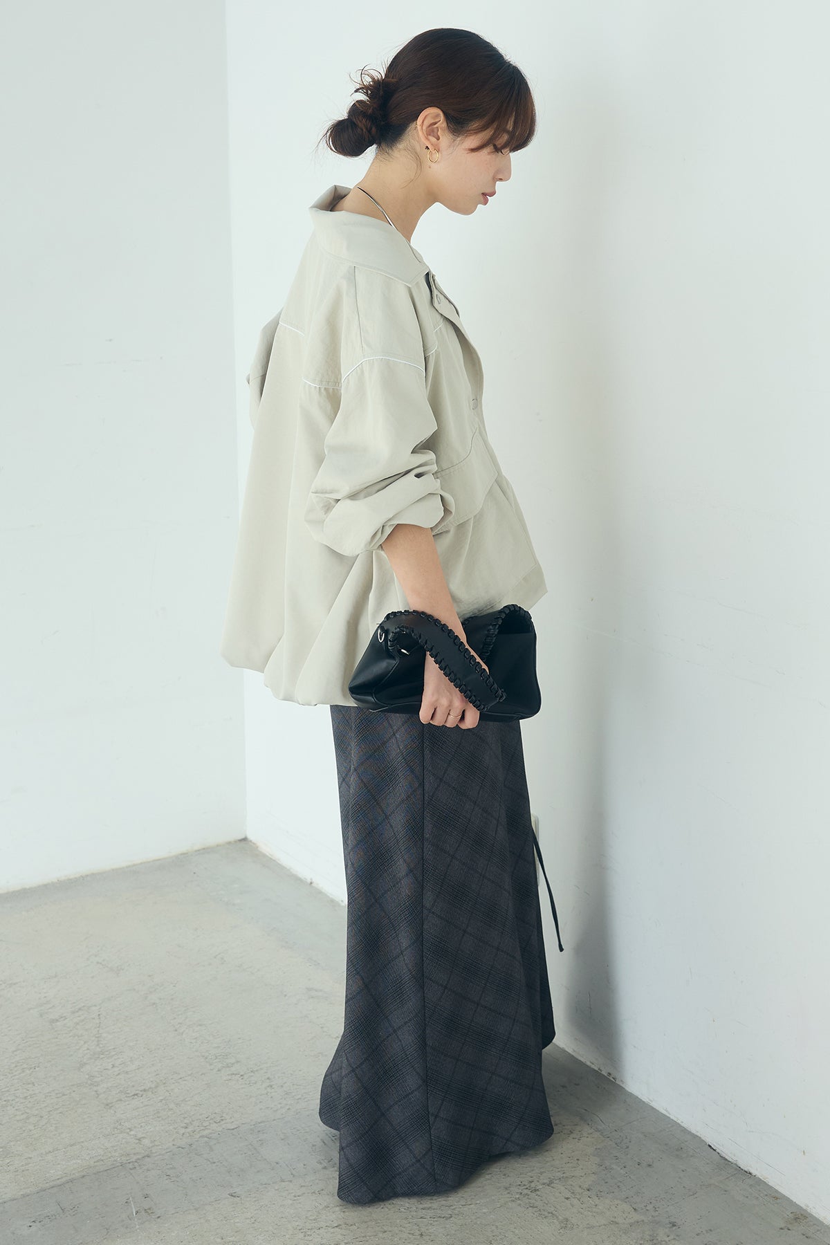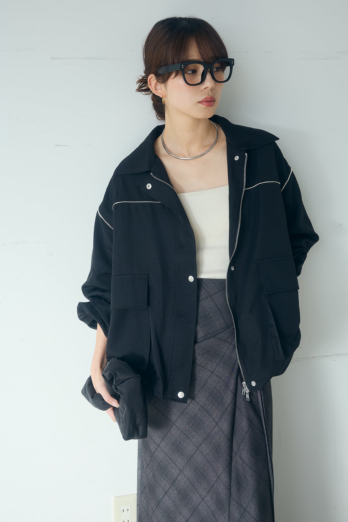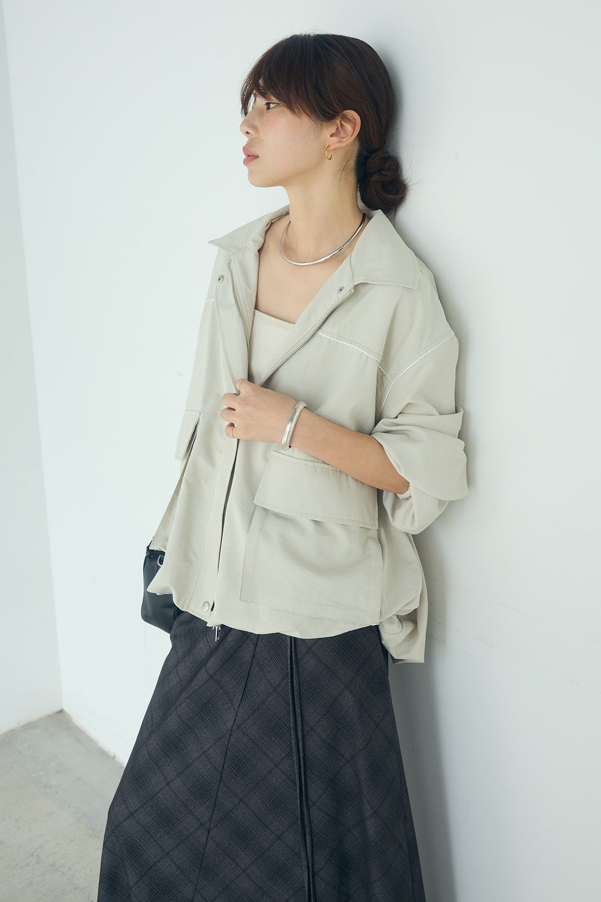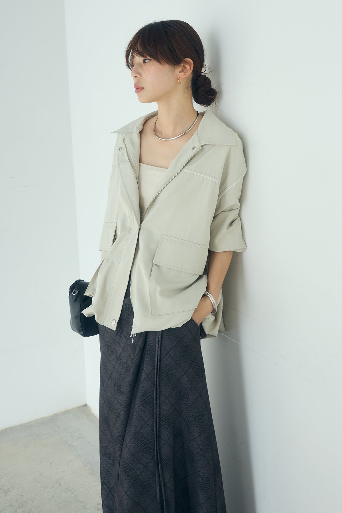 合繊ツイルバルーンジャケット ほどよくハリのある合繊ツイルが立体的なバルーンシルエットを引き立てる一着。 ゆとりのあるフォルムと大きめポケットが程よいアクセントになり、シンプルな中にも奥行きのある印象に仕上がっています。軽やかな着心地で羽織りやすく、トップスの上からさっと重ねるだけでコーディネートに動きが生まれるのもポイント。きれいめにもラフにも取り入れやすい、汎用性の高いジャケットです。