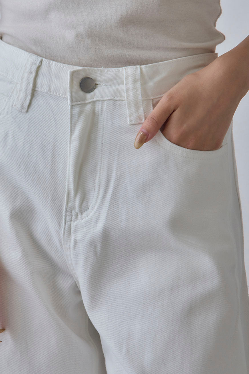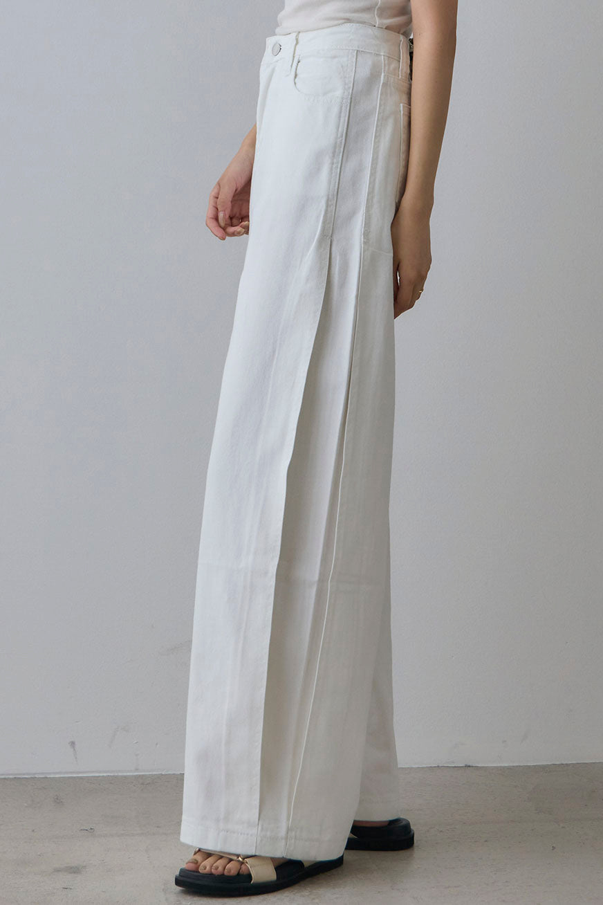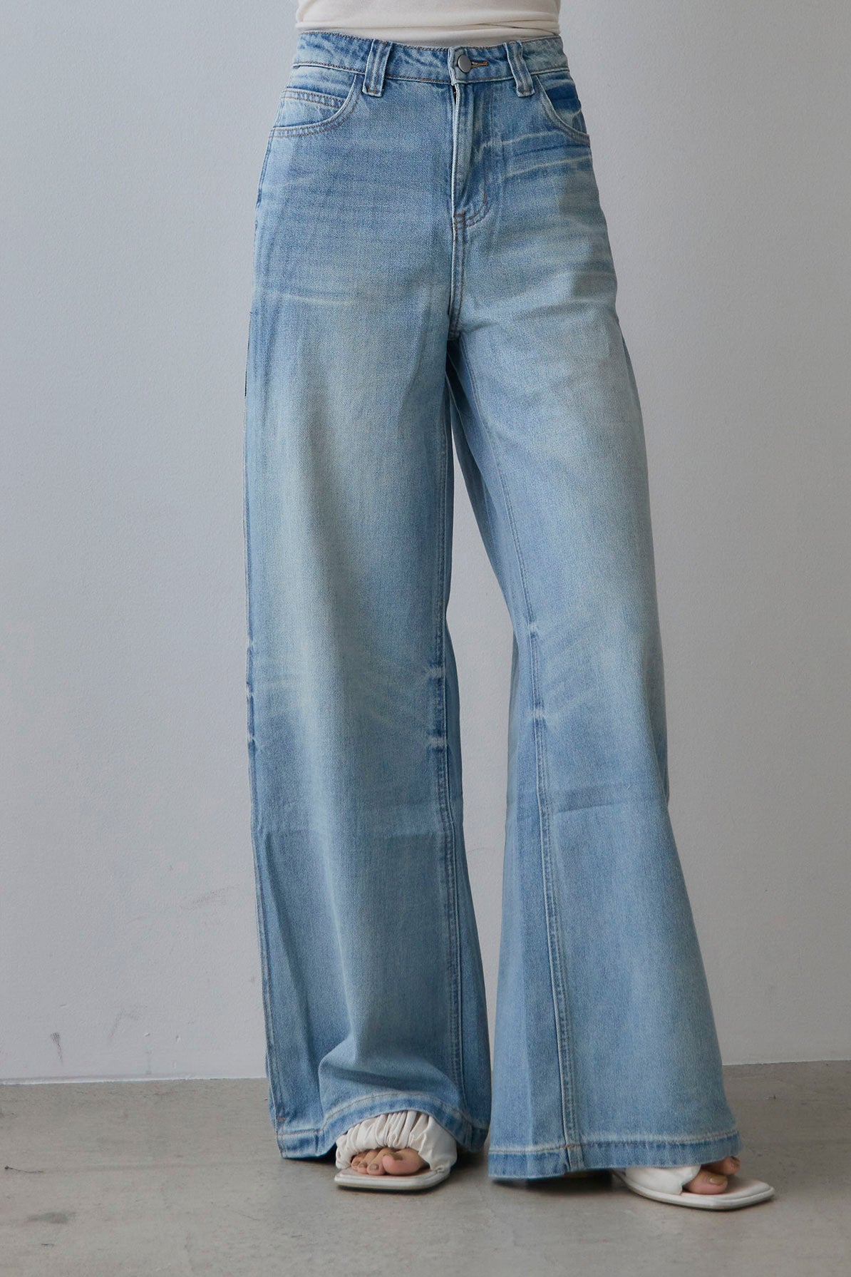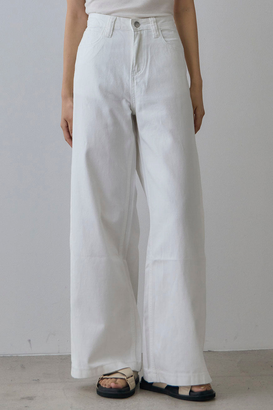 ストレートシルエットのデニムパンツ。程よくハイウエストなデザインが脚長効果を演出し、すっきりとした印象に。しっかりとしたデニム生地で、シーズンレスに活躍します。カジュアルにもきれいめにも合わせやすく、1本あると重宝するアイテムです。
