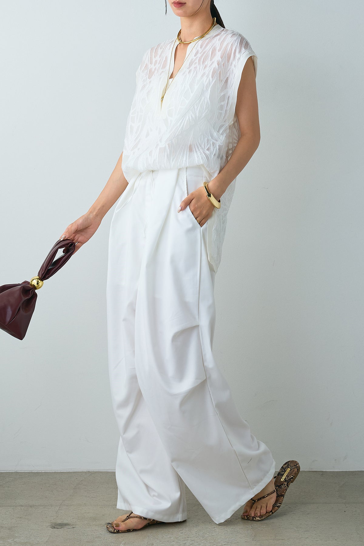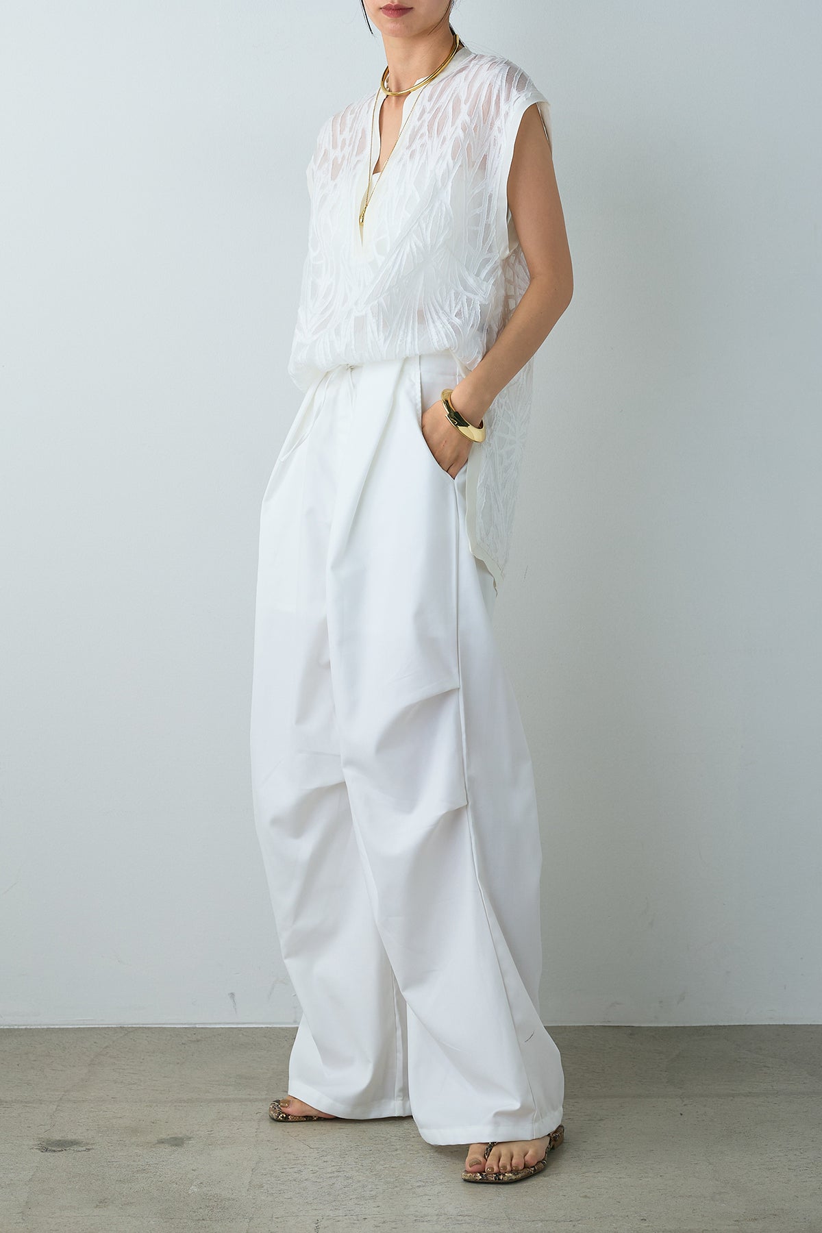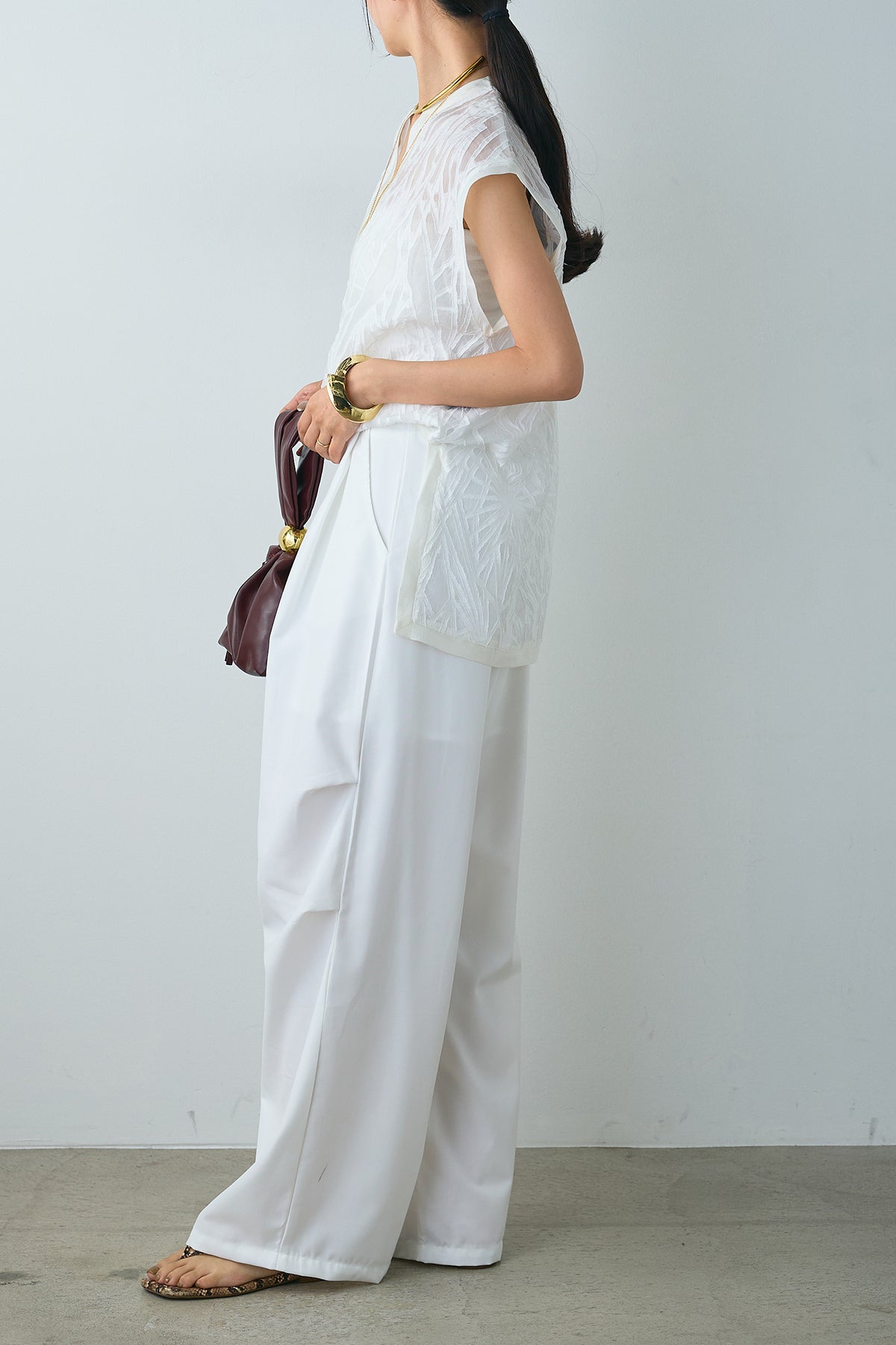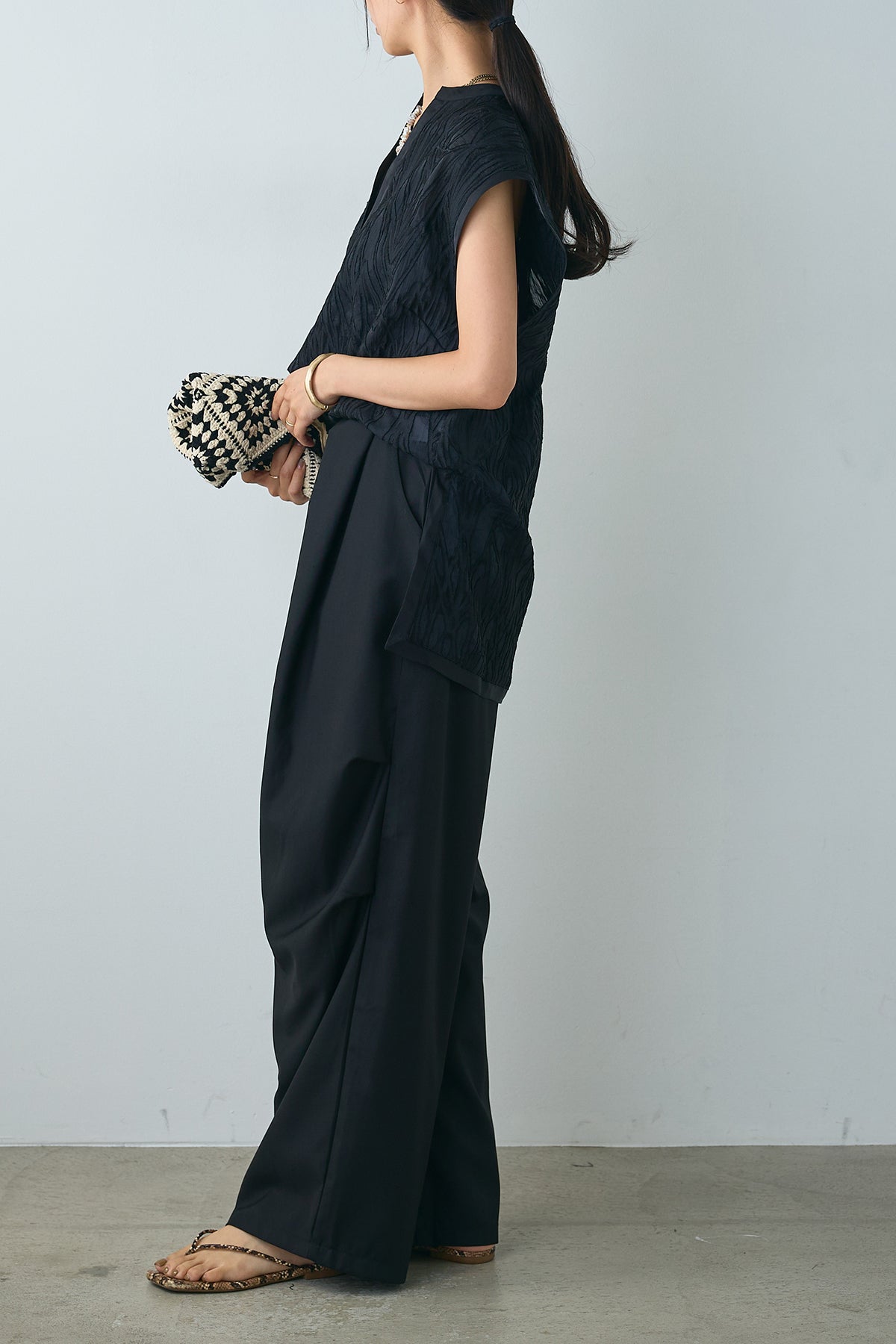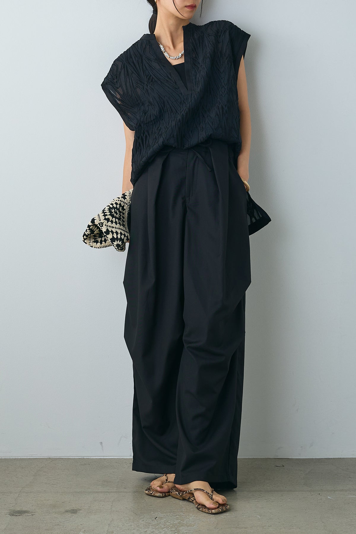 計算されたタック使いで立体感と上品さを演出するデザインパンツ。程よいゆとりのあるシルエットが美しいラインを作り、快適な着心地を実現。カジュアルからフォーマルまで幅広く対応し、シンプルなトップスとも相性抜群。大人の洗練されたスタイルを完成させる一着です。