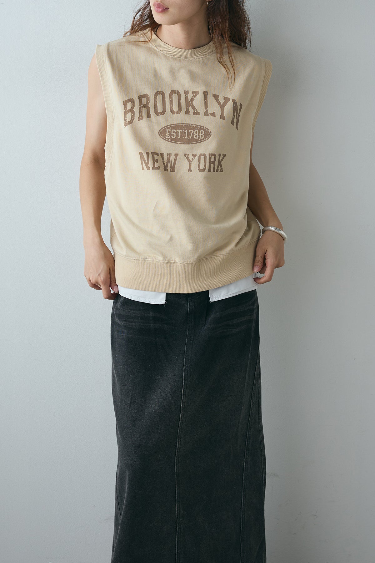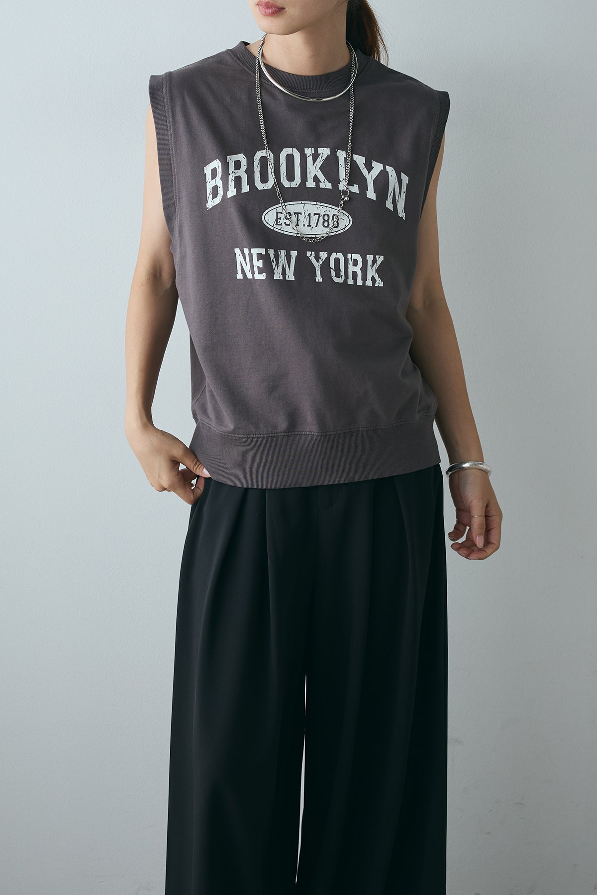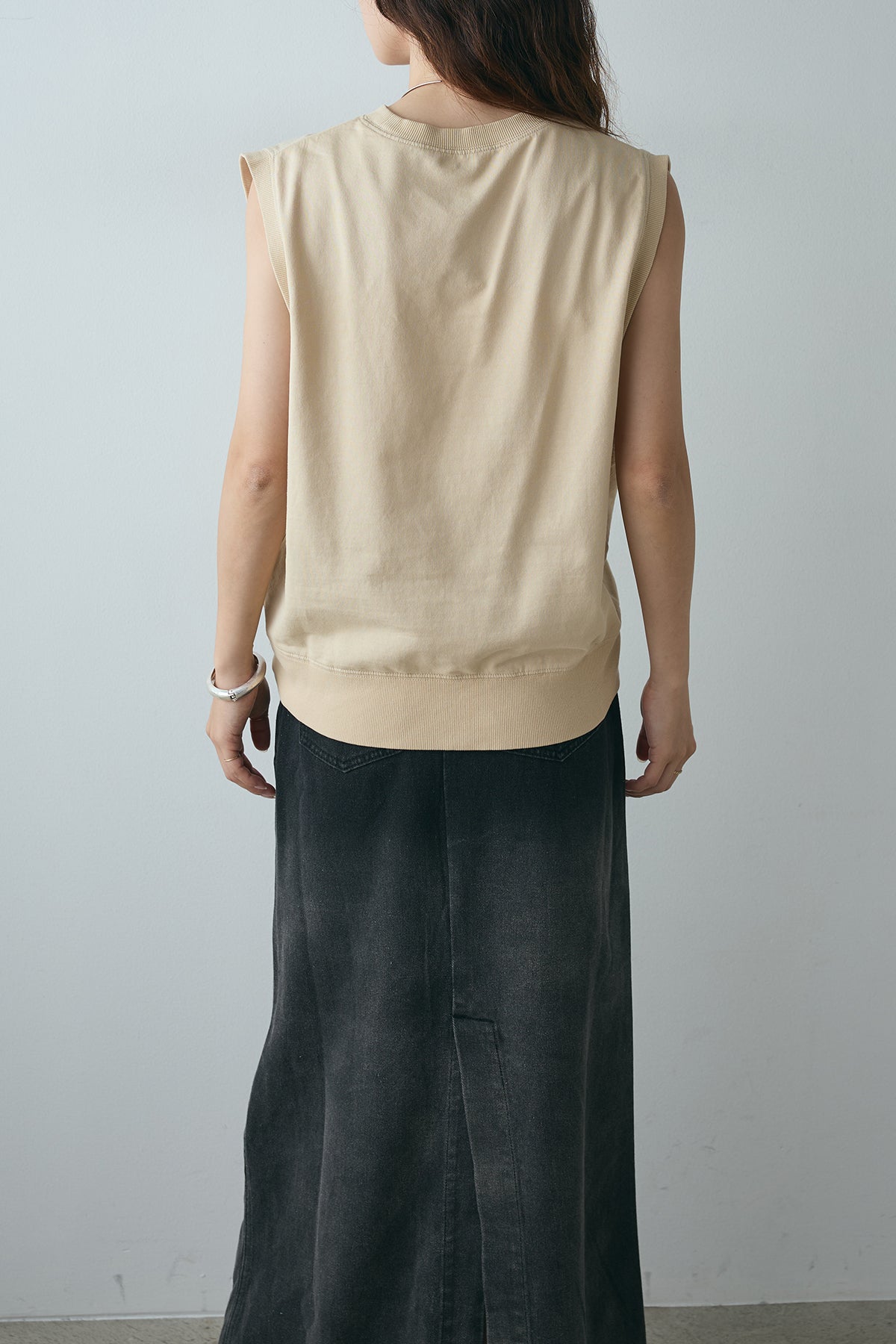 洗練されたピグメント加工が施され、ヴィンテージ感溢れるデザインが特徴のノースリーブトップスです。大きなロゴプリントがアクセントとなり、シンプルながらも存在感のあるアイテムです。ゆったりとしたシルエットで、リラックスした着心地が魅力。カジュアルなスタイルにぴったりで、デニムやスカートと合わせてシンプルながらスタイリッシュに決まります。