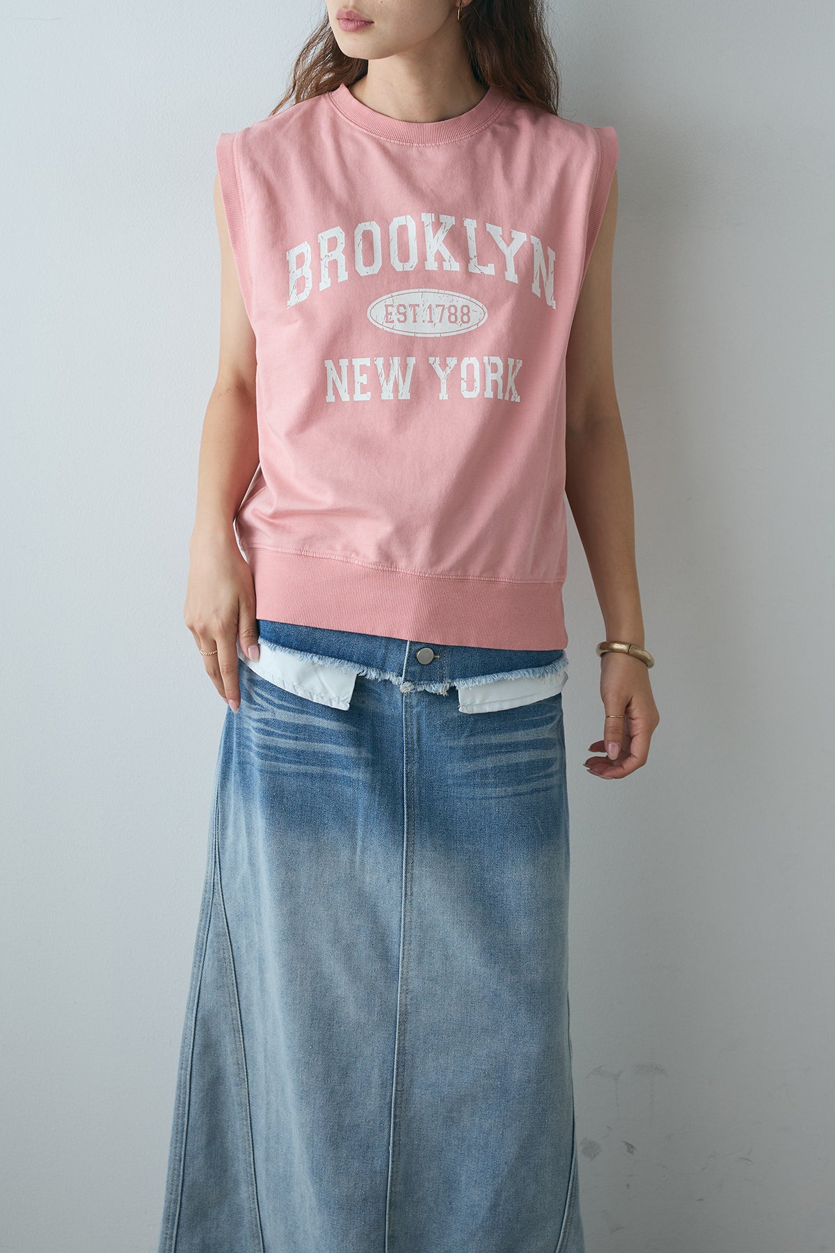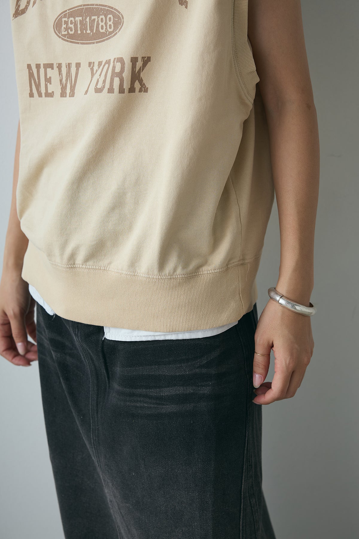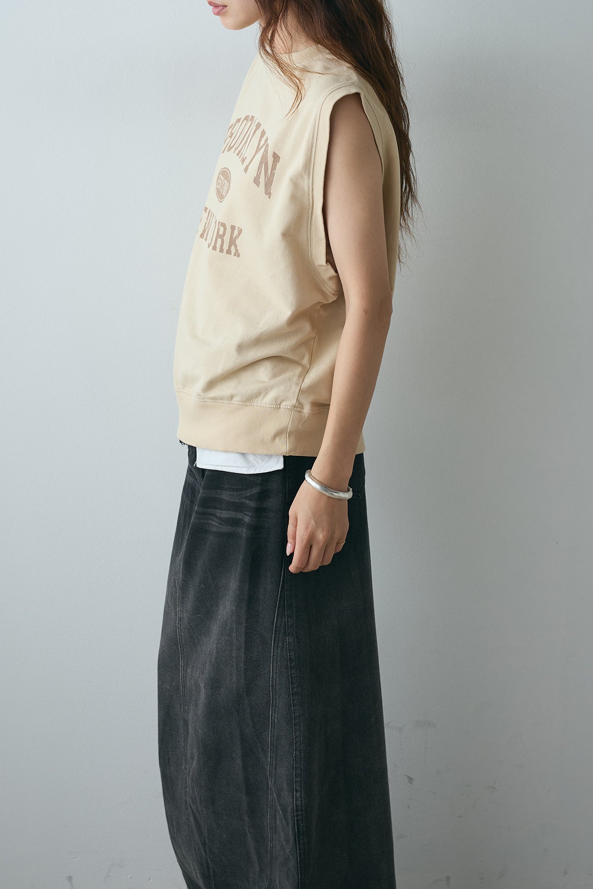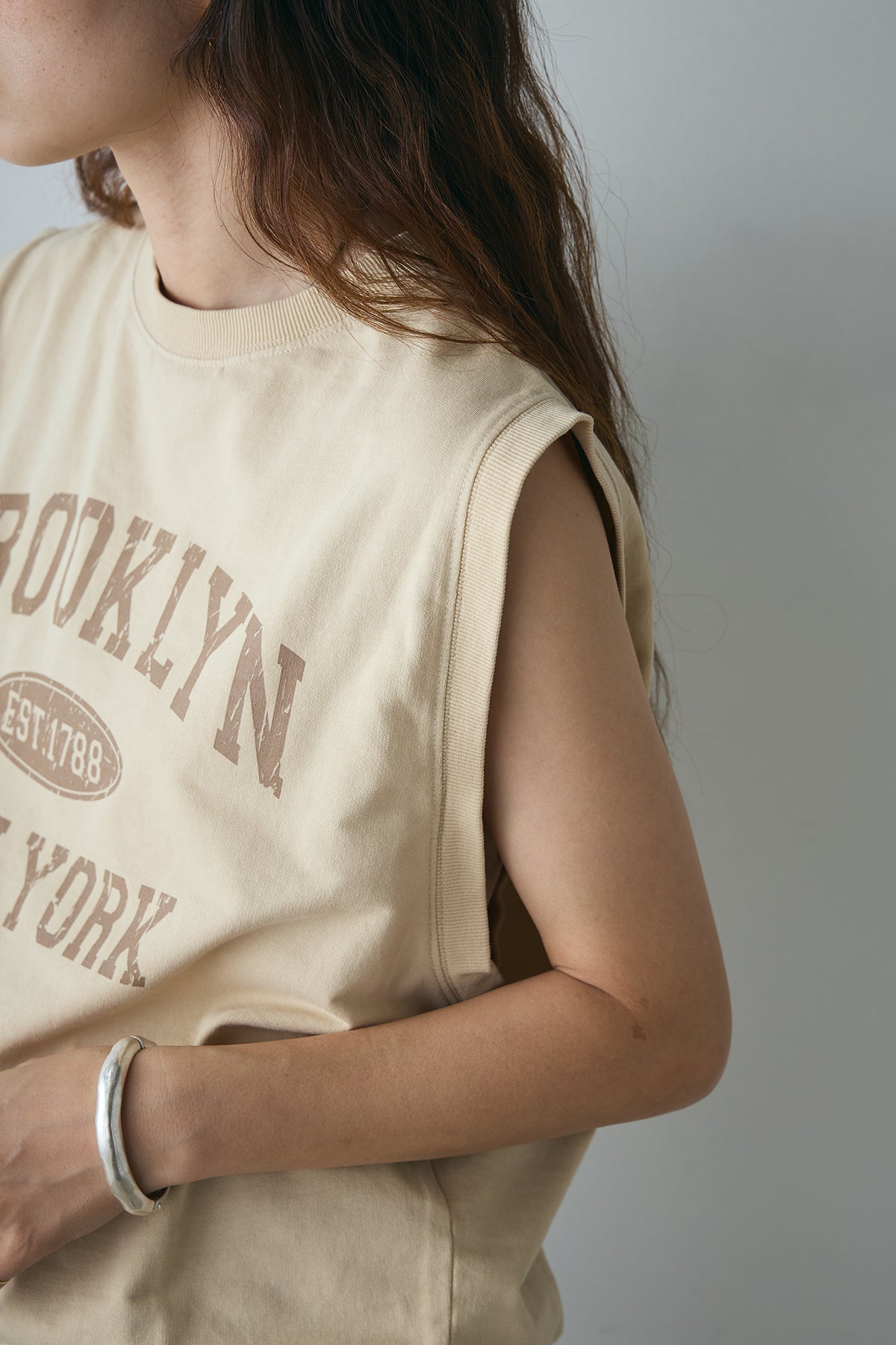 洗練されたピグメント加工が施され、ヴィンテージ感溢れるデザインが特徴のノースリーブトップスです。大きなロゴプリントがアクセントとなり、シンプルながらも存在感のあるアイテムです。ゆったりとしたシルエットで、リラックスした着心地が魅力。カジュアルなスタイルにぴったりで、デニムやスカートと合わせてシンプルながらスタイリッシュに決まります。