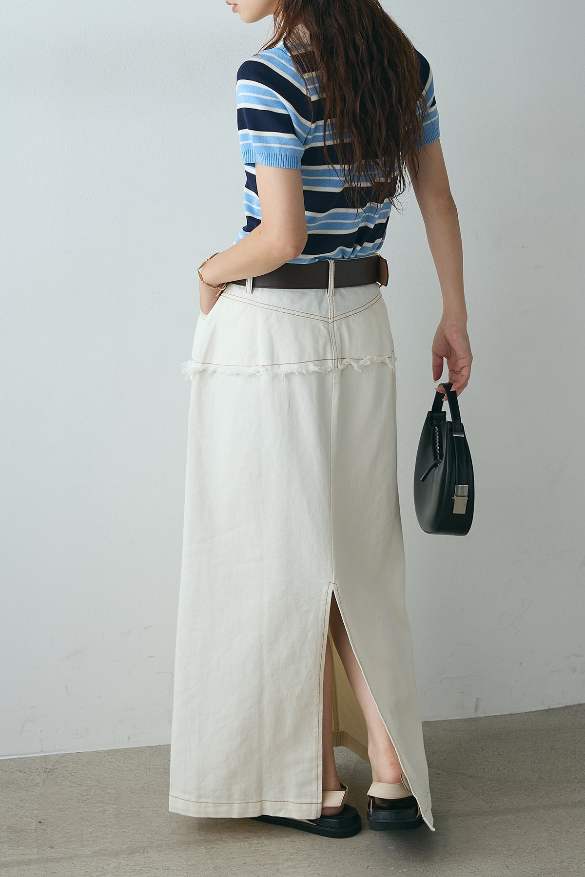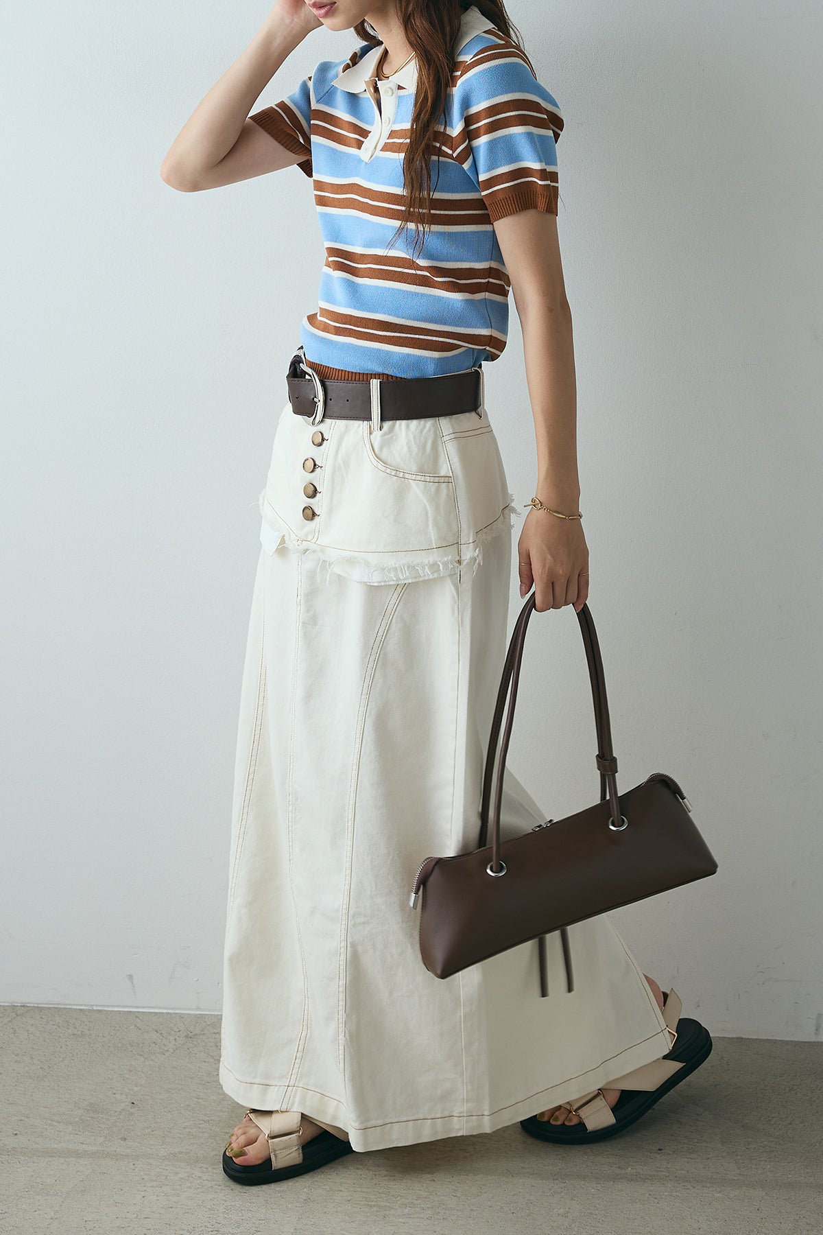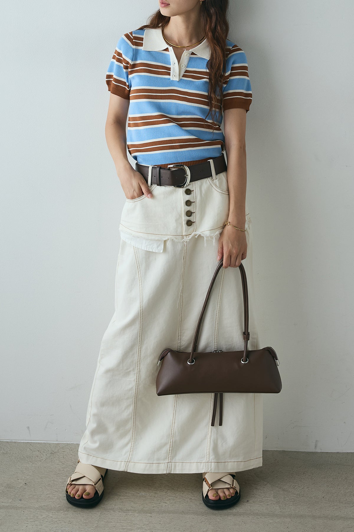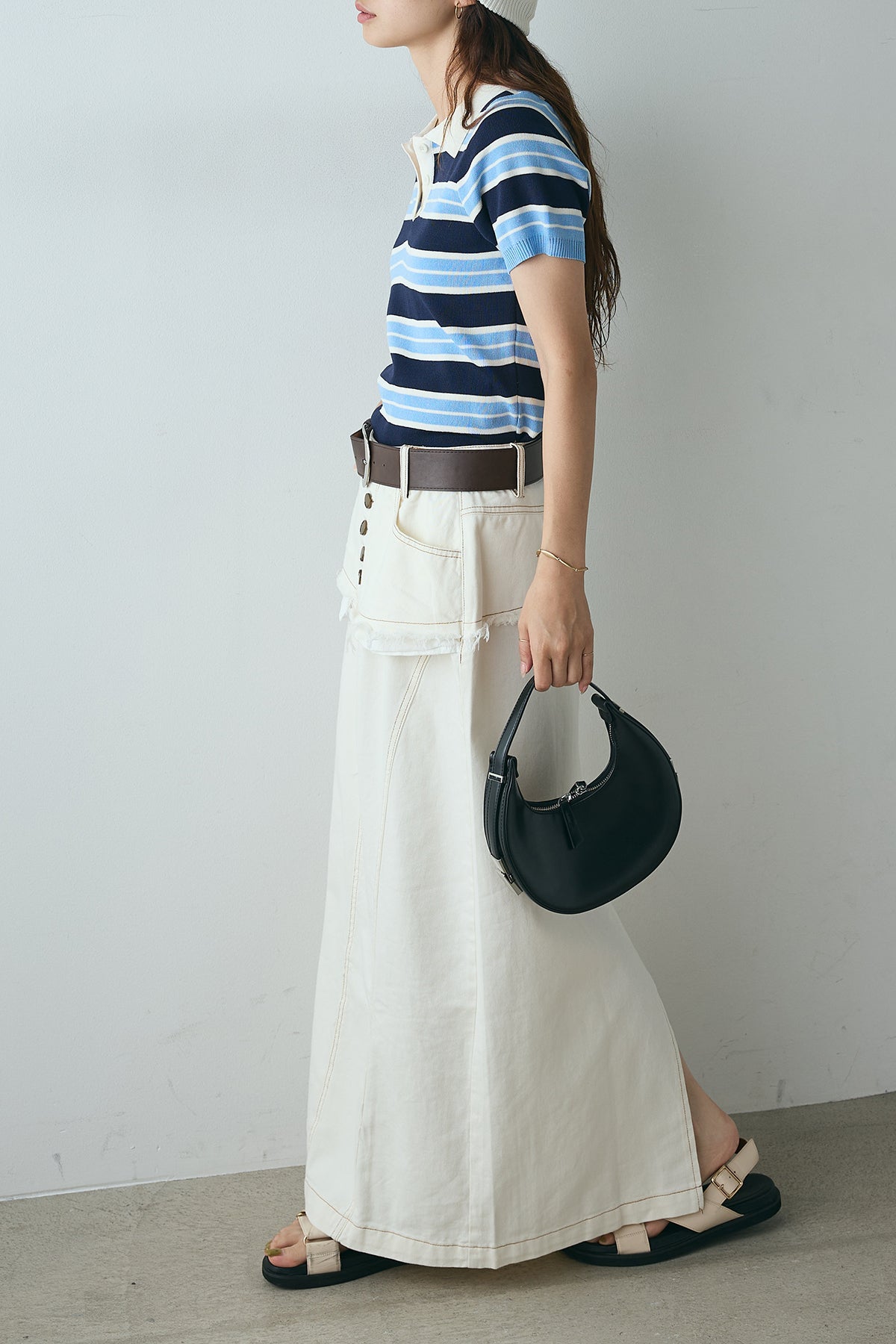 程よいハリと厚みのあるデニム生地を使用し、カジュアルながらも上品な印象に。