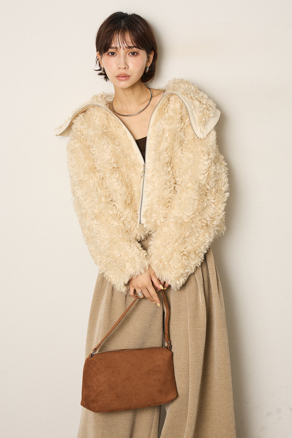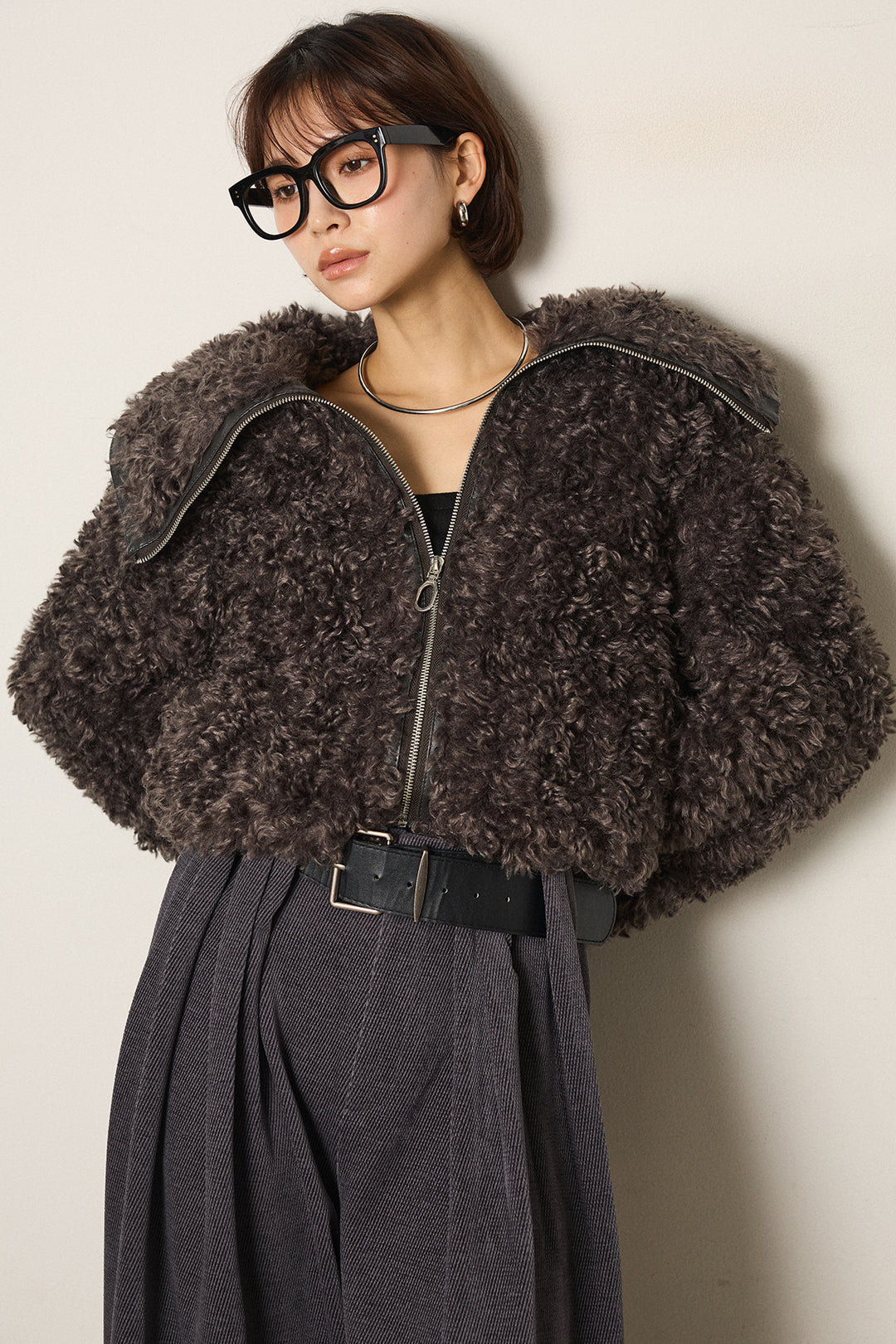 [SET]エコファーショート丈ブルゾン+加工デニムタックコクーンワイドパンツ(2set)
