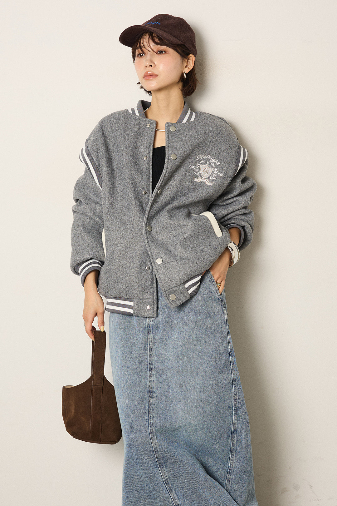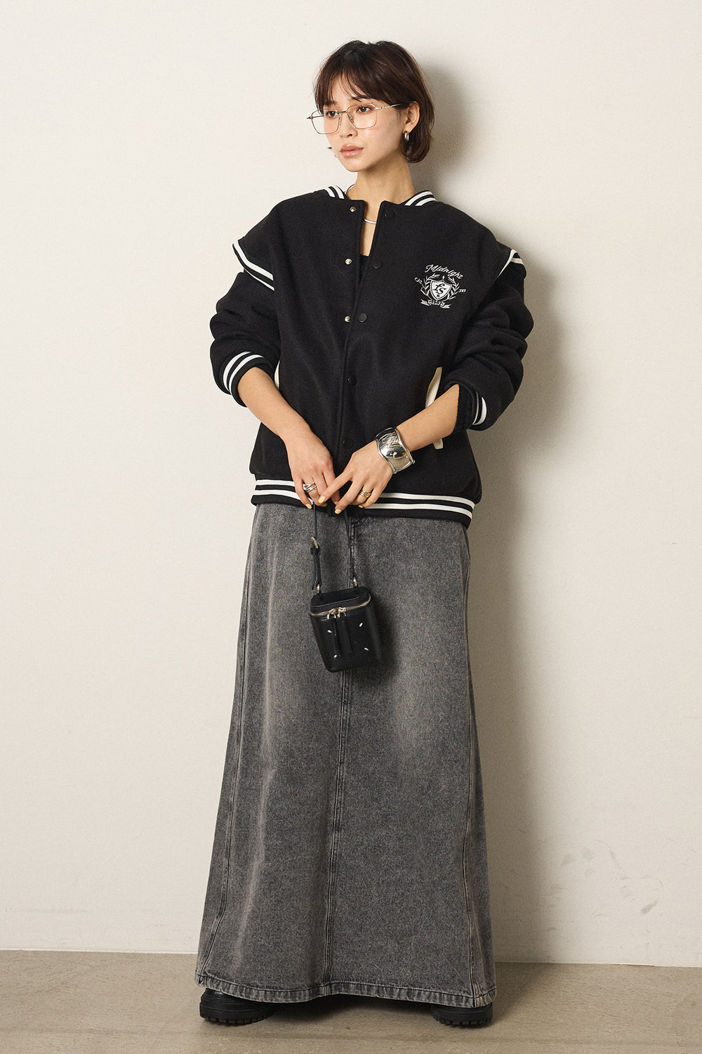 [SET]ワンポイントデザインブルゾン+デニムロングフレアスカート(2set)