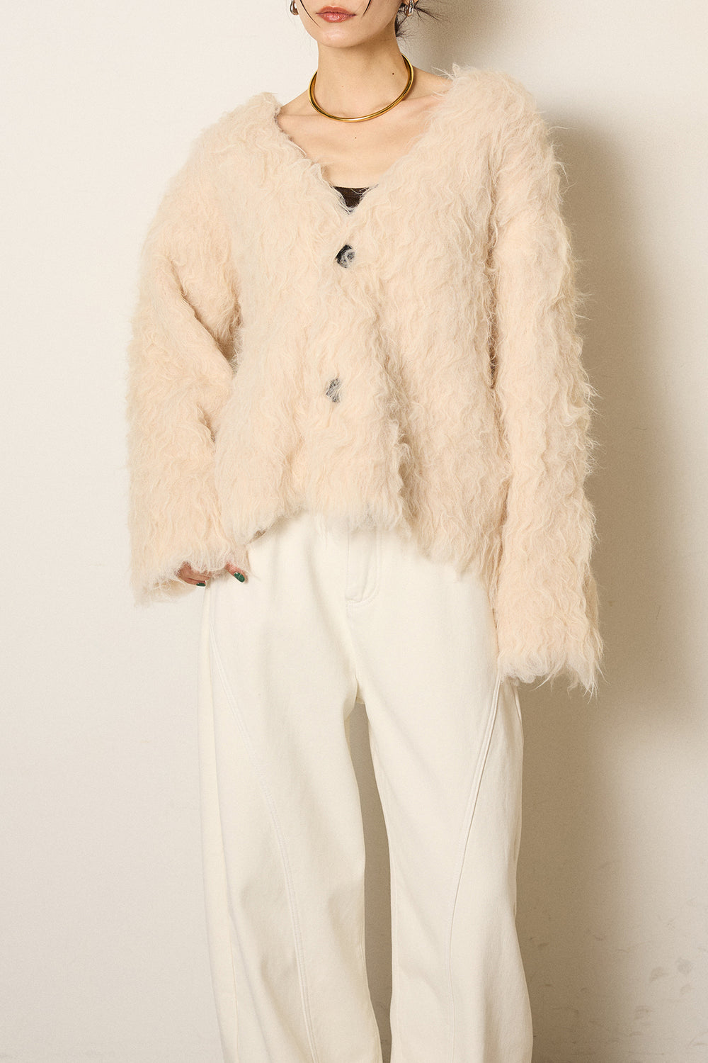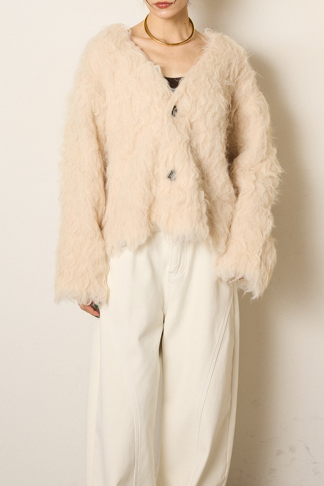 [SET]ルーズシャギーニットカーディガン+スウェードライク裾フリンジスカート(2set)
