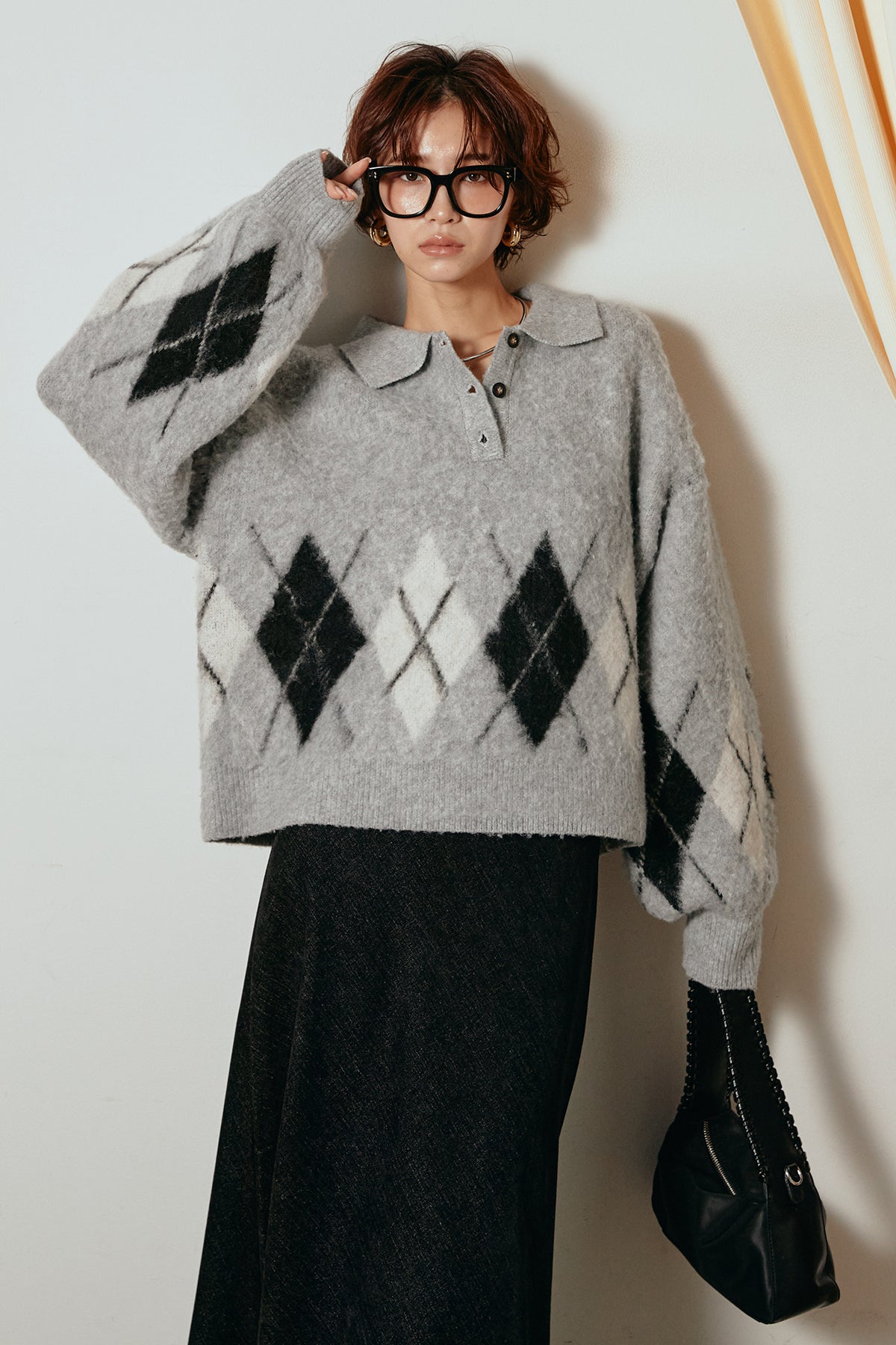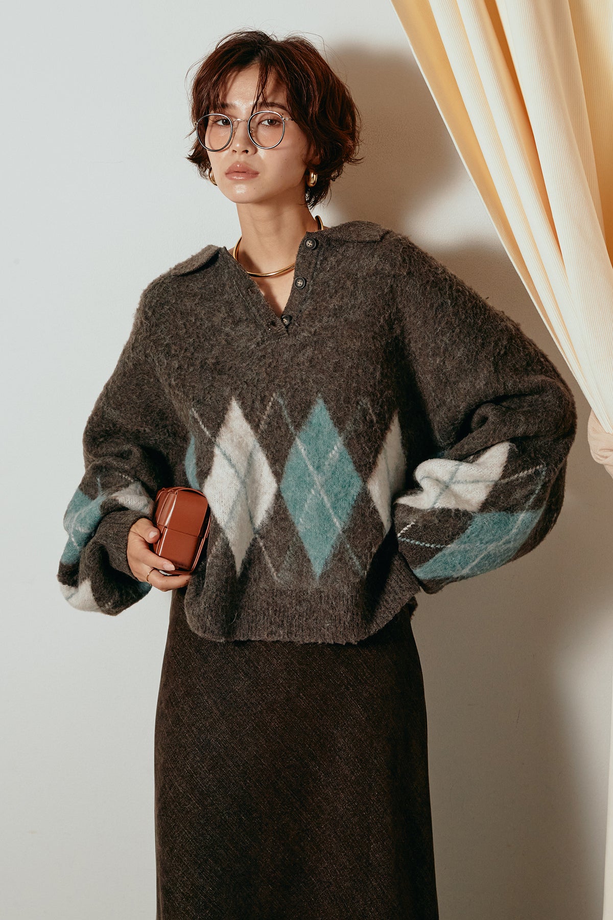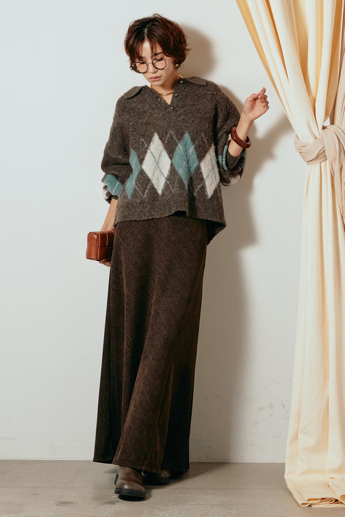 アーガイル柄ポロニットトップスの他のセットページはこちら