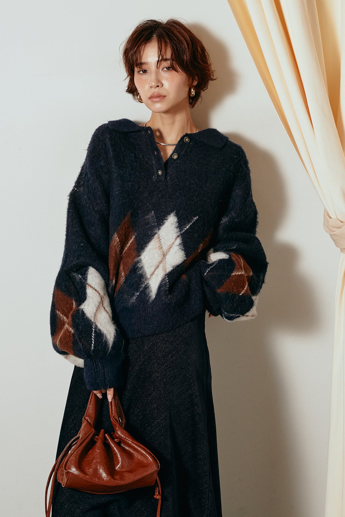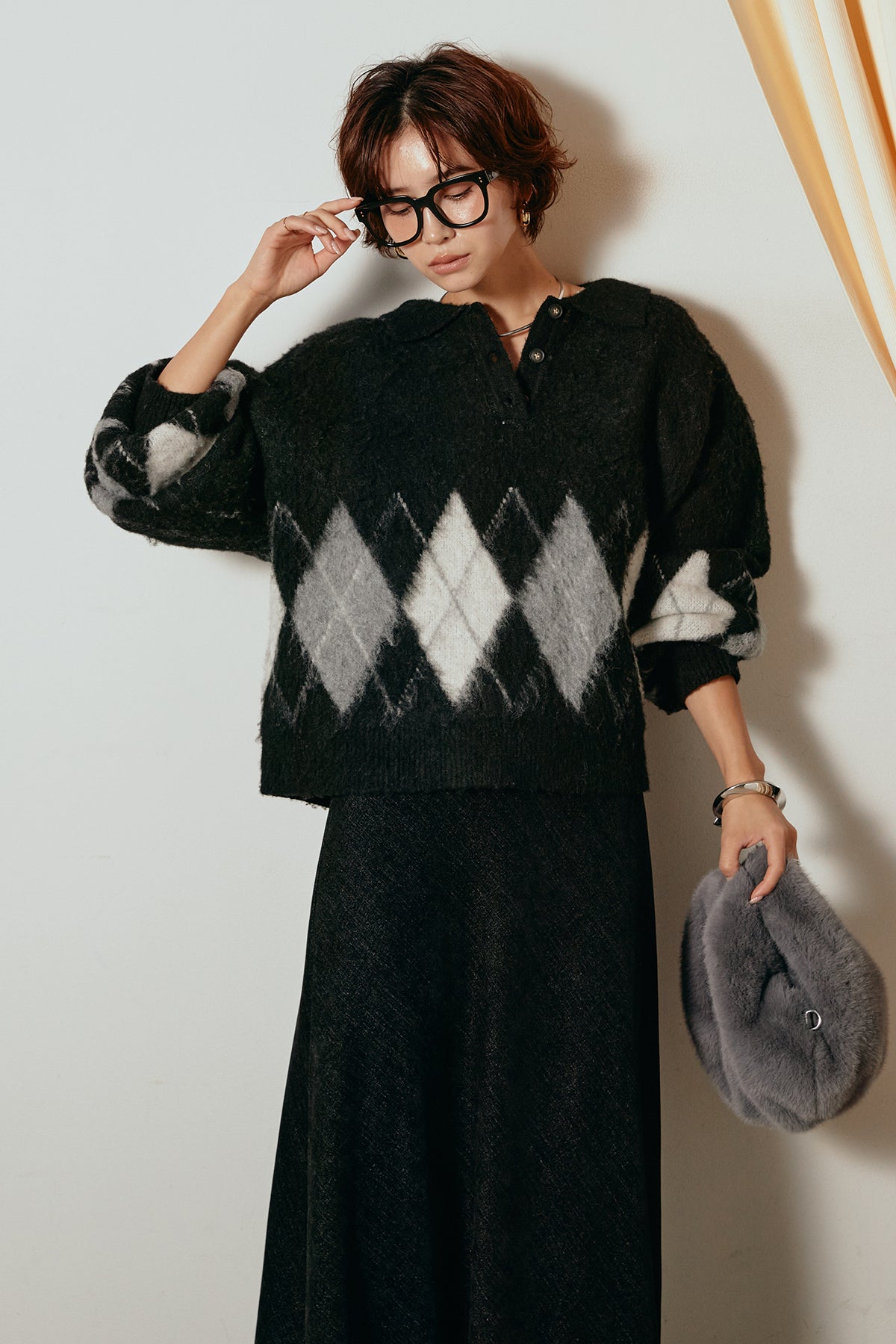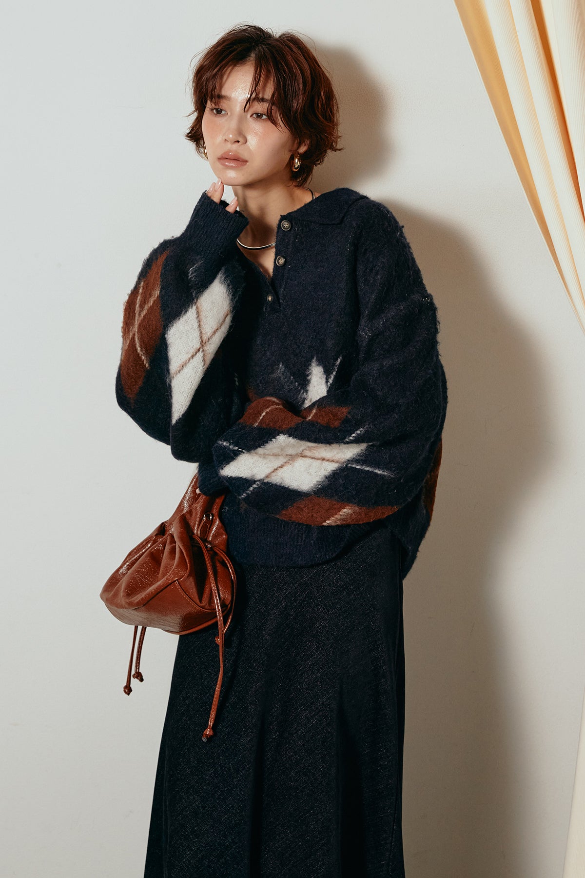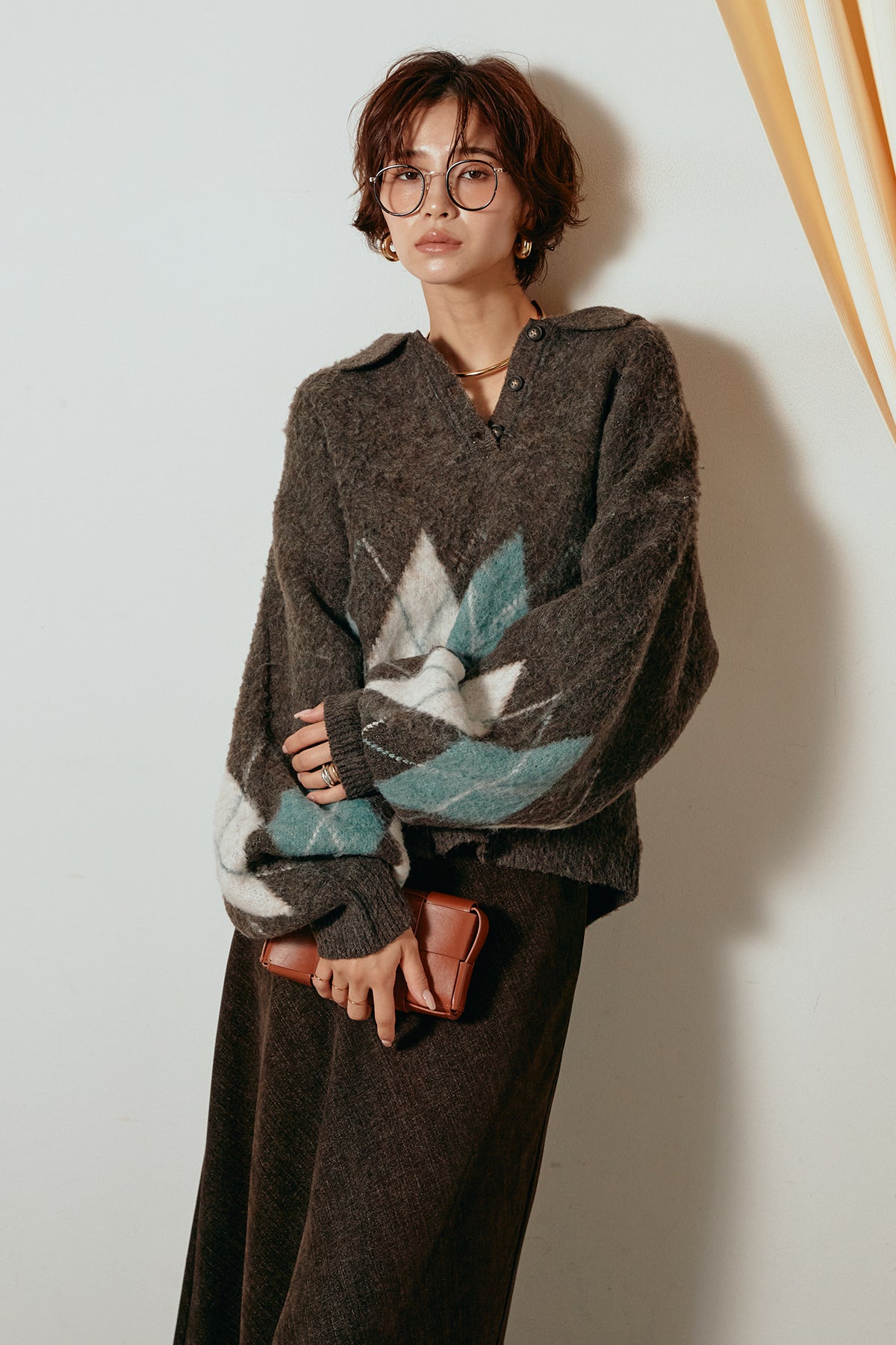 アーガイル柄ポロニットトップスの他のセットページはこちら
