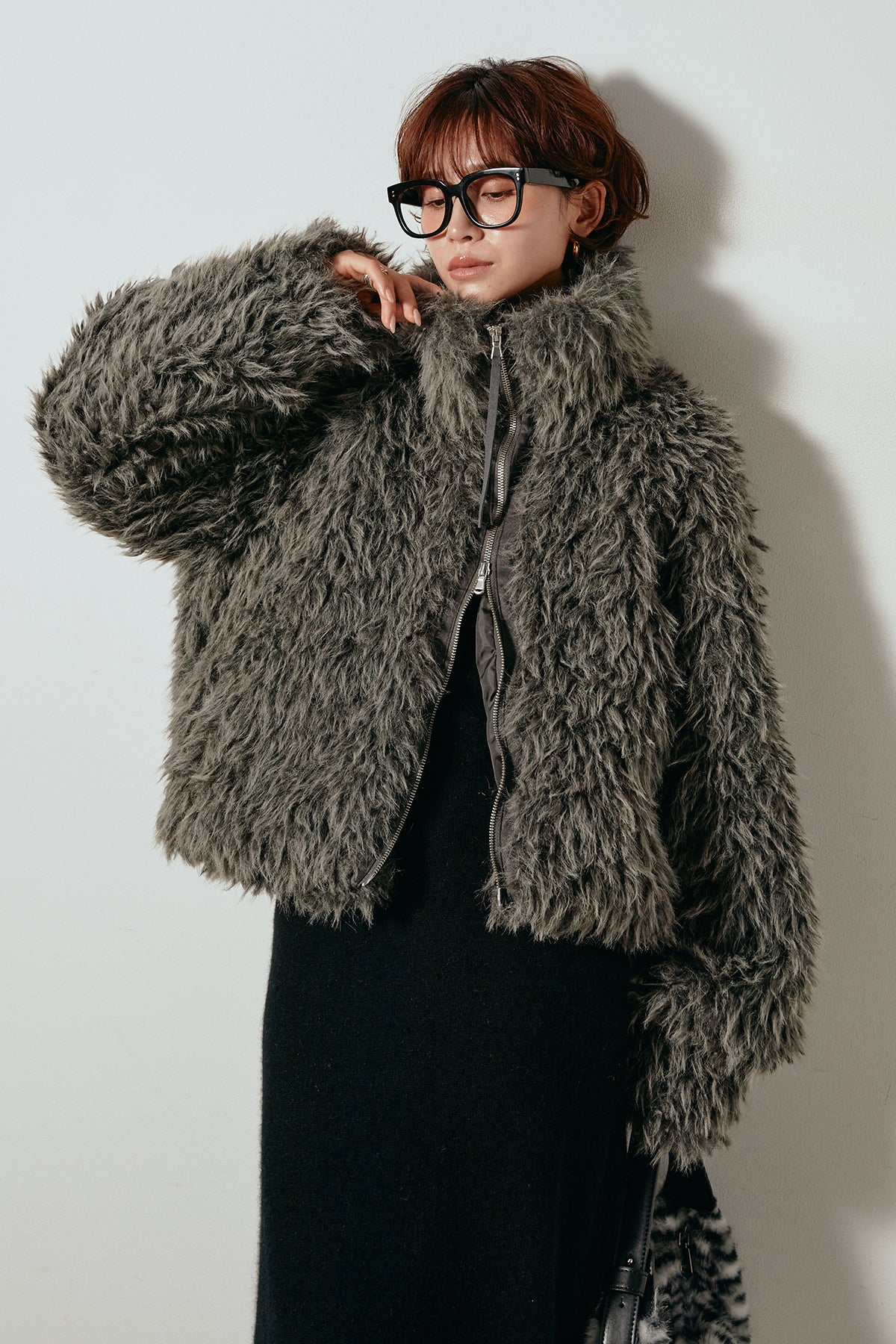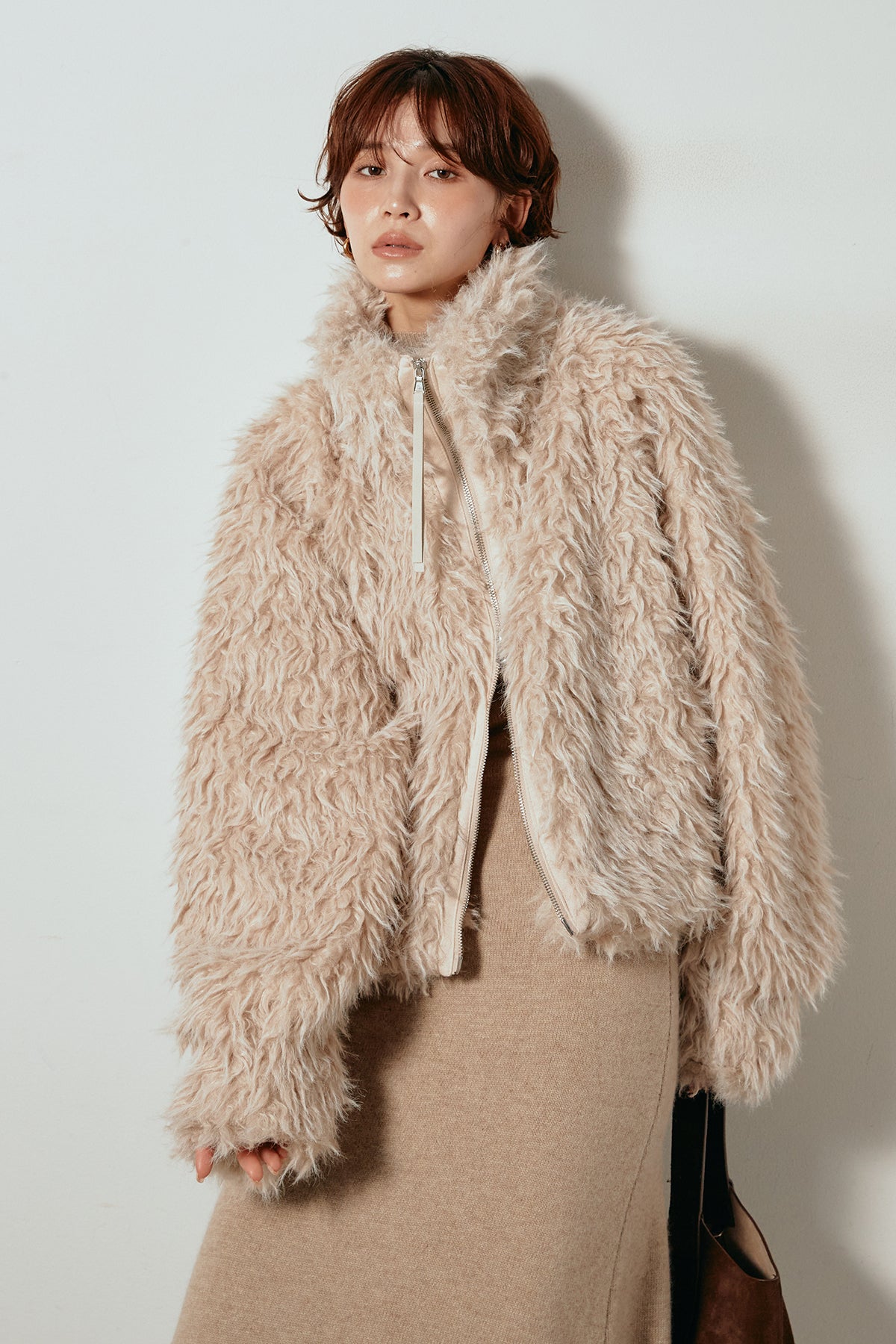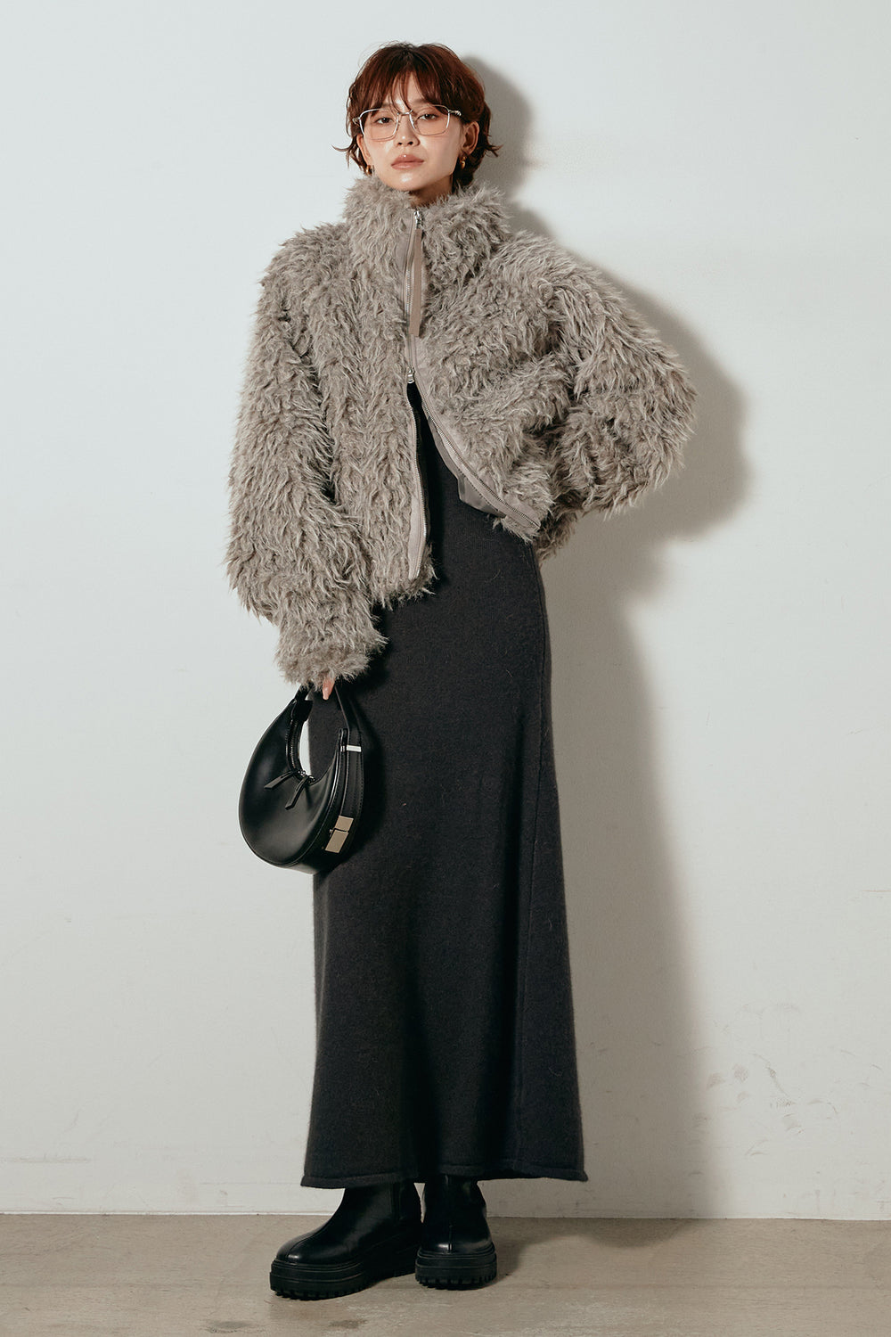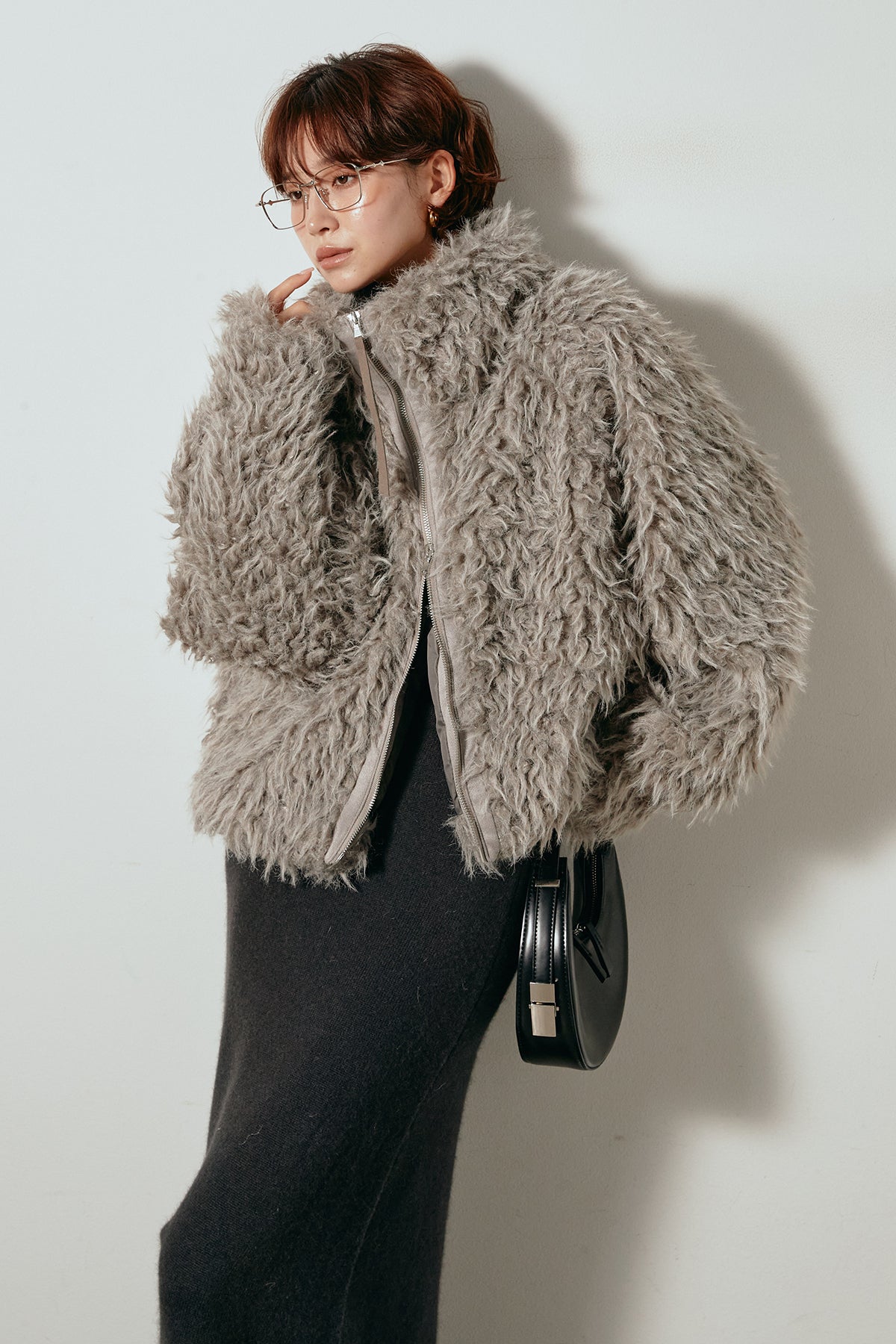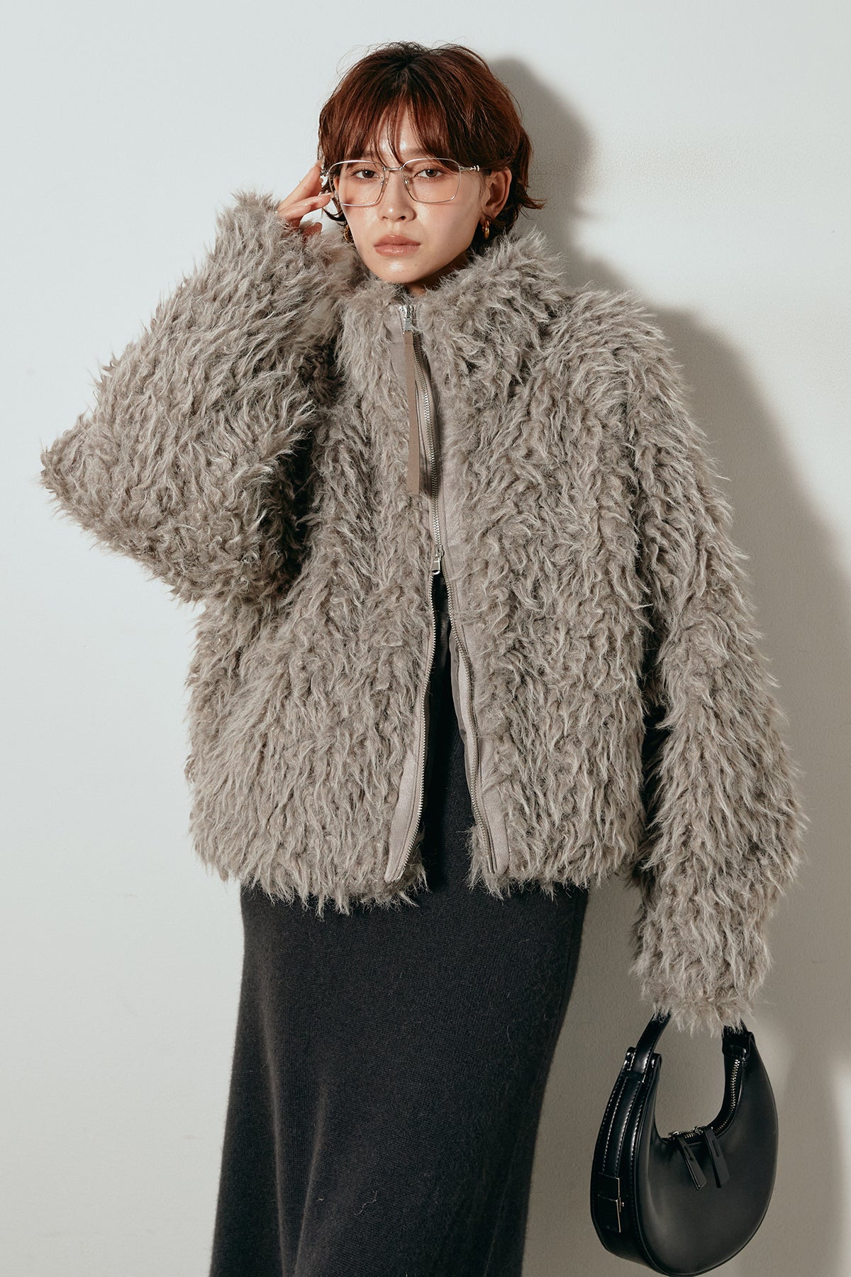 ふんわりとしたボリューム感が魅力のミックスシープファースタンドブルゾン。毛足の長いファーをミックスすることで、奥行きのある立体感を表現。スタンドカラー仕様で首元まで暖かく、冬のスタイリングを華やかに引き立てます。ショート丈デザインはバランスが取りやすく、スカートにもパンツにも相性抜群。羽織るだけで旬なムードを添える主役アウターです。