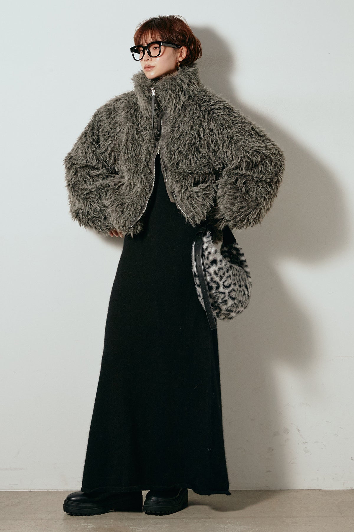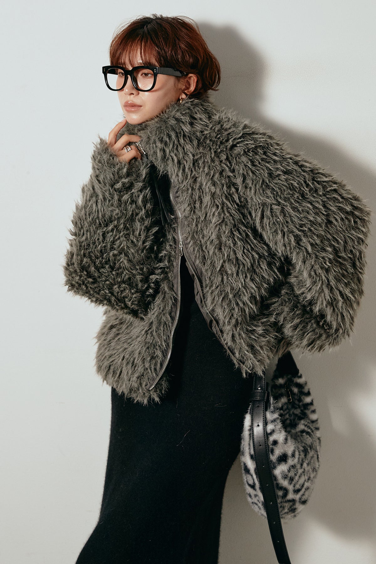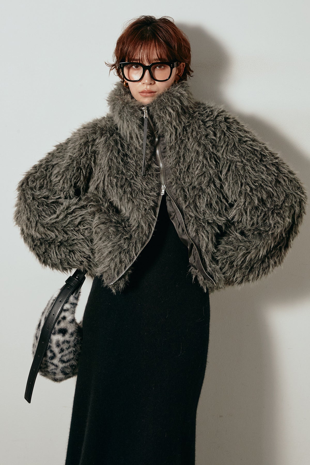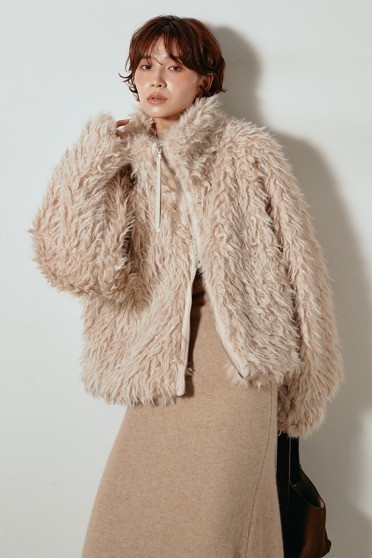 ふんわりとしたボリューム感が魅力のミックスシープファースタンドブルゾン。毛足の長いファーをミックスすることで、奥行きのある立体感を表現。スタンドカラー仕様で首元まで暖かく、冬のスタイリングを華やかに引き立てます。ショート丈デザインはバランスが取りやすく、スカートにもパンツにも相性抜群。羽織るだけで旬なムードを添える主役アウターです。
